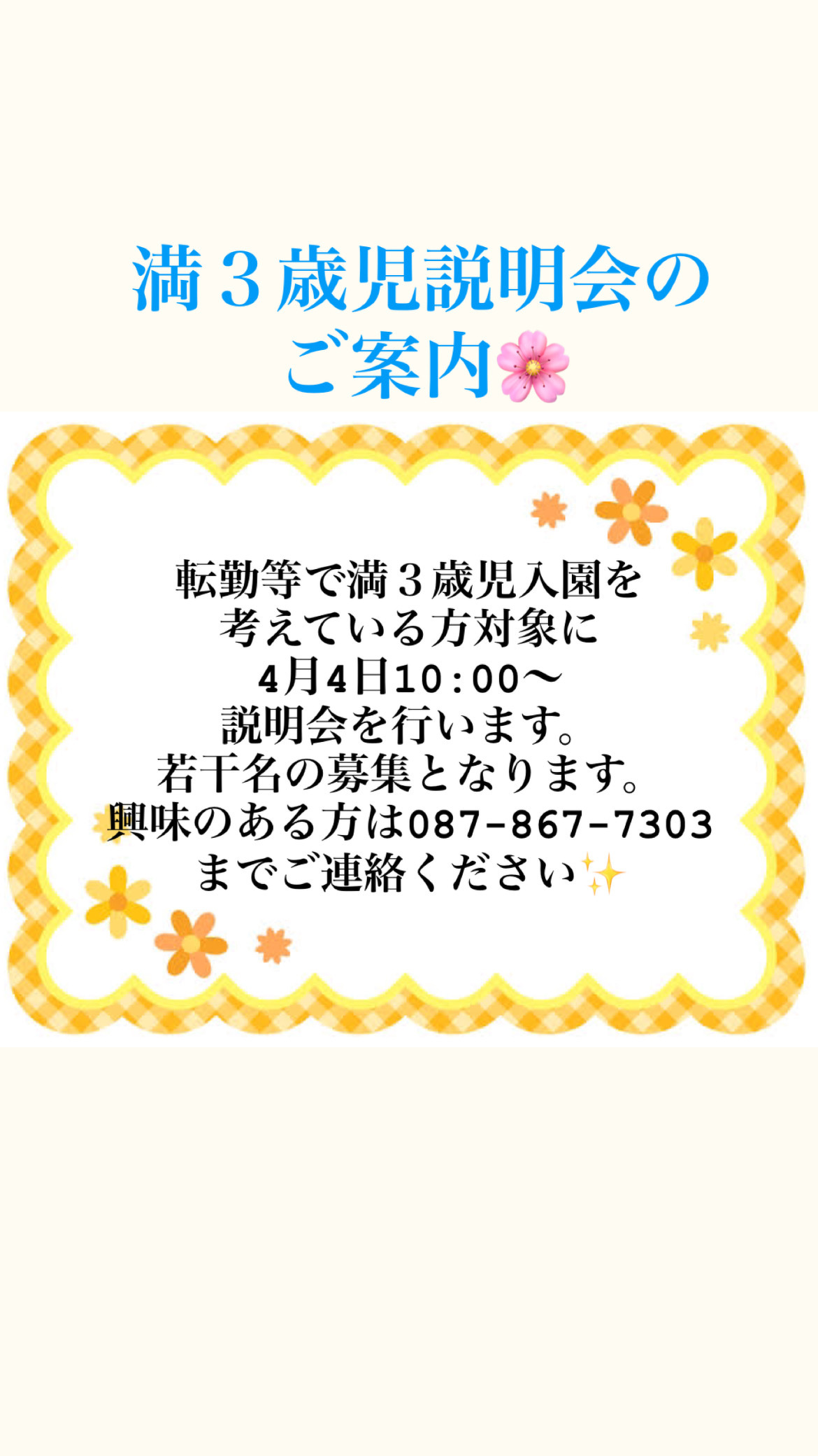 転勤等で満3歳児入園を考えられている方へ説明会のご案内