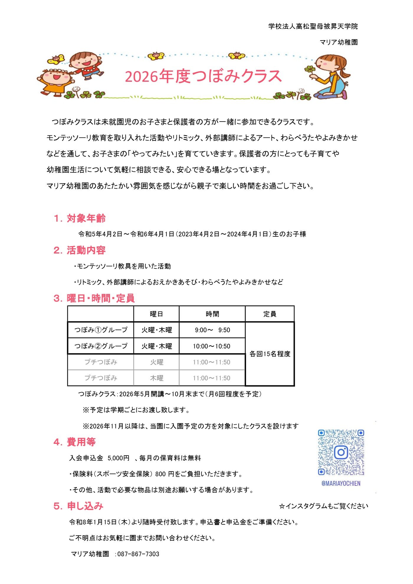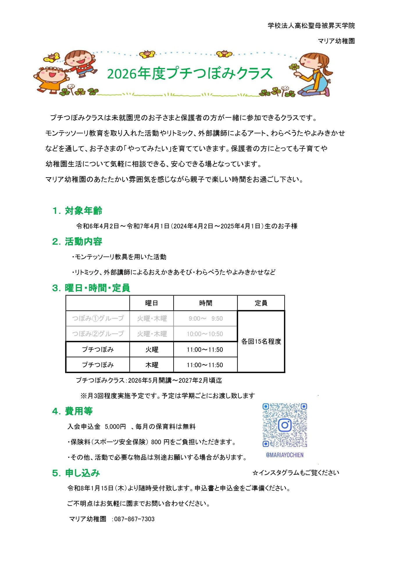 お気軽にマリア幼稚園(087-867-7303)までお問い合わせください。