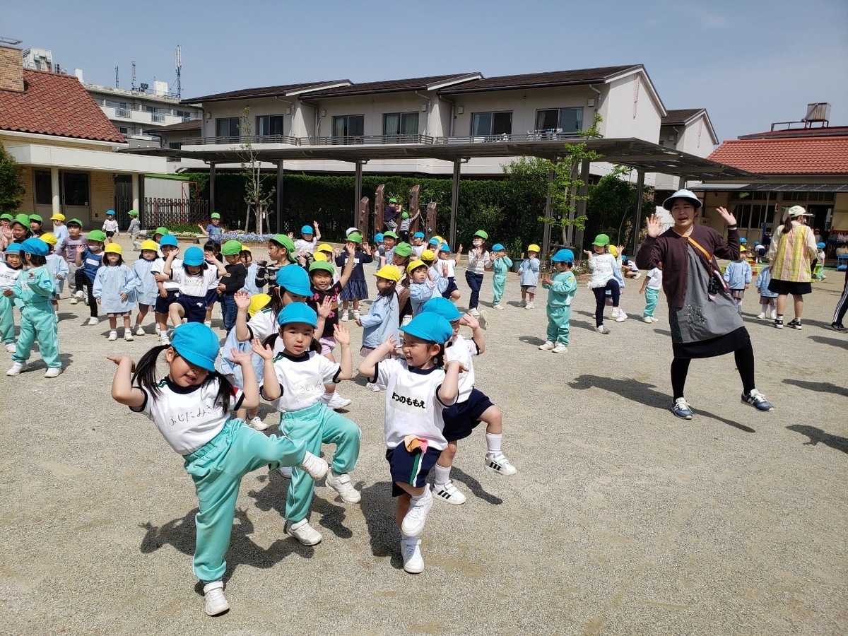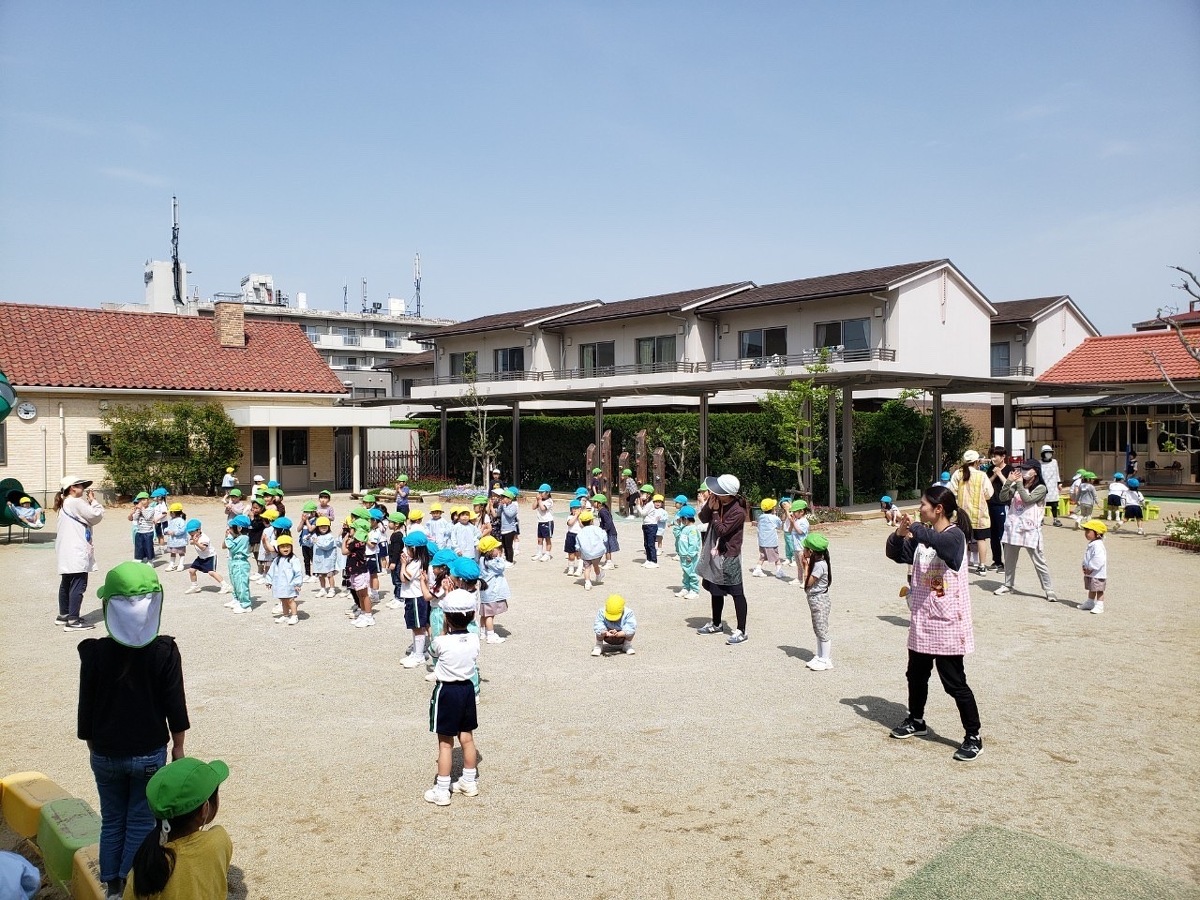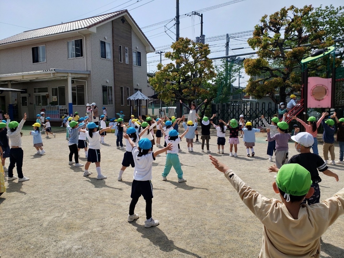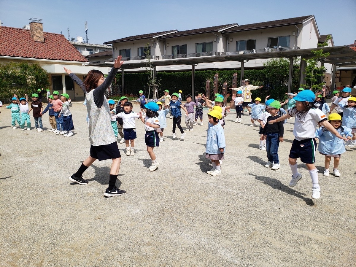 外遊びの時間にみんなで体操をしました。 2023年04月19日(水) 外遊びの時間にみんなで体操をしました。たくさん身体を動かして元気いっぱいの子どもたち。みんなでアンパンマンやカマキリになりきって体操を楽しみました。また幼稚園でたくさん遊びましょうね!