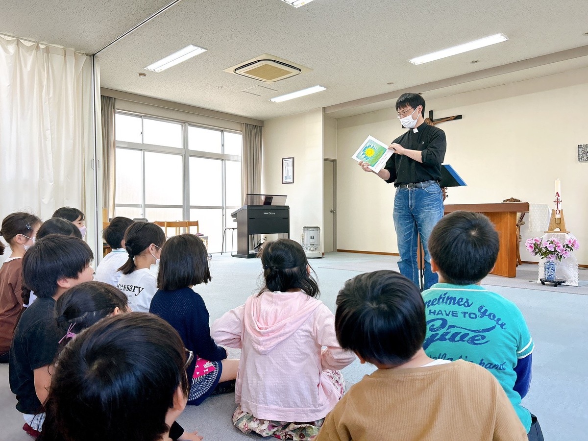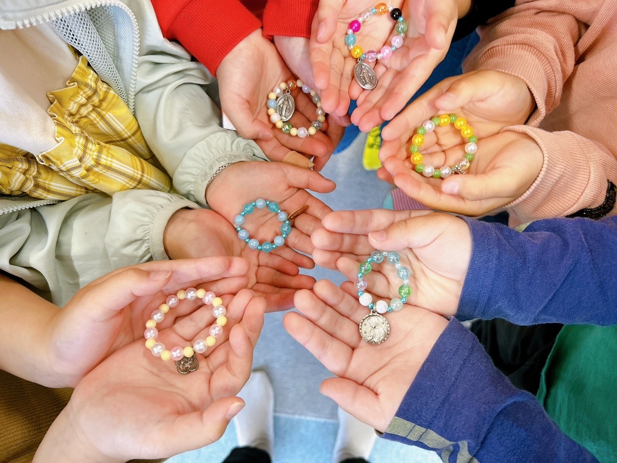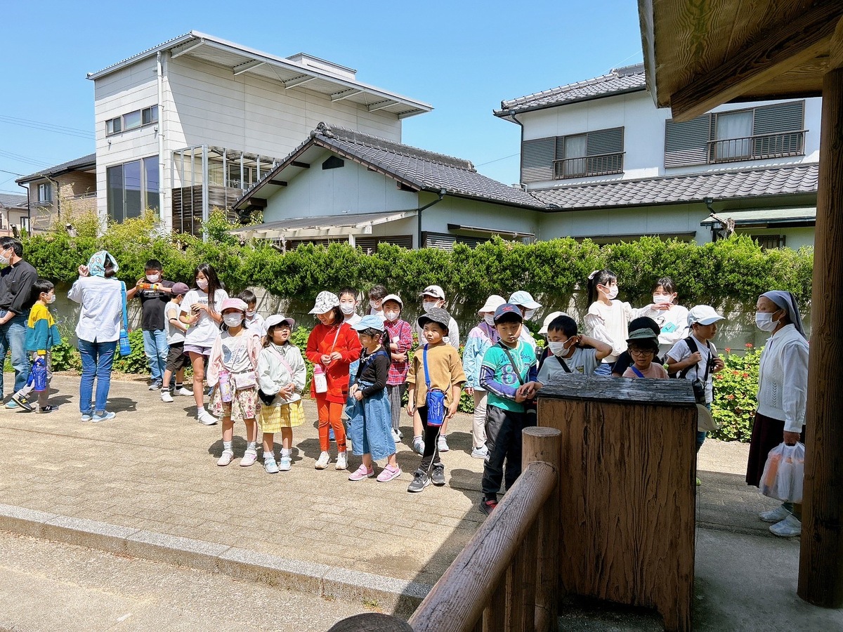 今年度のマリアの子ども会が始まりました。 2023年04月24日(月) 今年度のマリアの子ども会が始まりました。今年も新一年生がたくさん入ってくれ、子ども会のお兄さん、お姉さんが新一年生のために心を込めて作ってくださったロザリオをいただきました。 神父様のお話を聞いたり、みんなで幼稚園の近くまでお散歩に行きました。 今年度も楽しく過ごしましょうね!