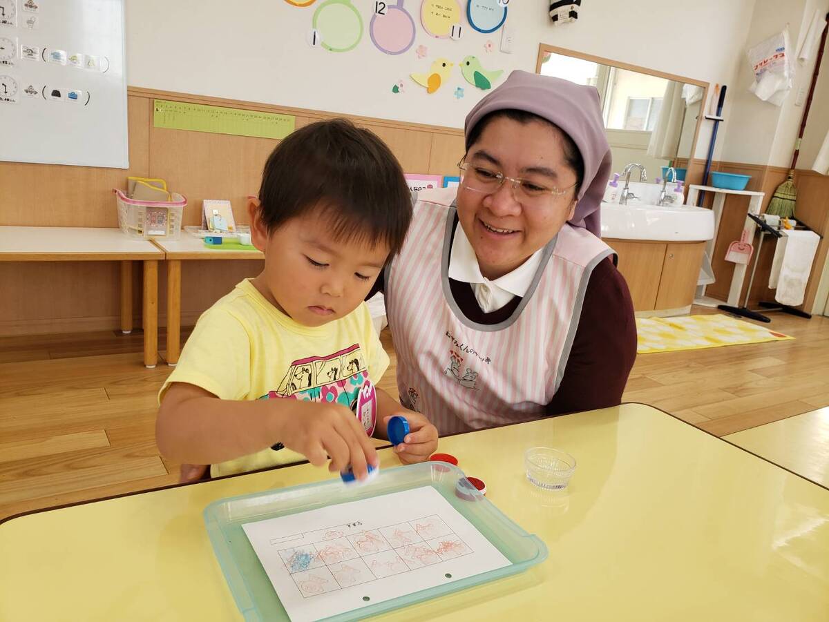 ちゅうりっぷ組のお友だち 2023年05月19日(金) 5月に入園したばかりの、ちゅうりっぷ組の子どもたちです。部屋でお仕事をしたり、園庭で虫探しをしたりと、毎日楽しく過ごしています。これからマリア幼稚園でたくさん一緒に遊びましょうね!