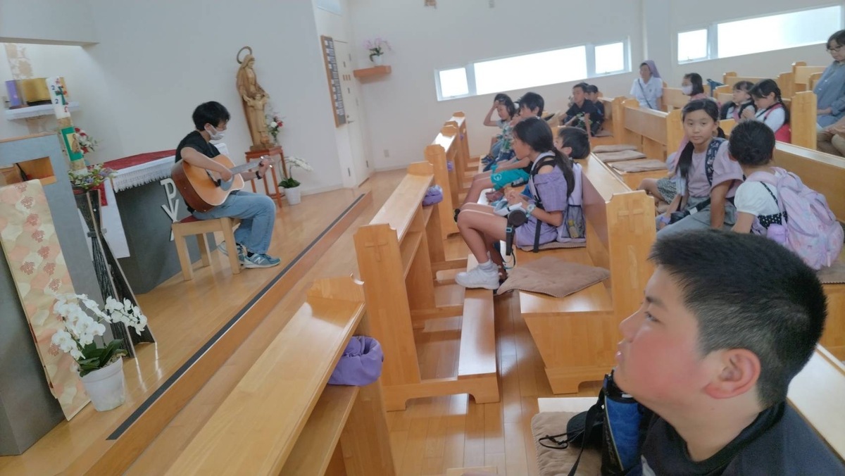 マリアの子ども会で教会訪問、丸亀城に出掛けました。 2023年05月29日(月) マリアの子ども会で丸亀教会を訪問しました。ことでんとJRに乗って丸亀城に到着。丸亀城に行って、みんなで鯉や亀を見つけたり、お城を見たりして楽しみました。一生懸命坂を登った後のお弁当は、とっても美味しかったですね!その後、歩いて丸亀教会に到着。教会では神父様のお話を聞きました。初めて行った教会では、自分がお願いしたいことが一つだけ叶うんだよという神父様の言葉を聞き、みんなでお祈りしたいことを一つ考えてみようとしっかり考え、お祈りしました。楽しい1日を過ごすことができました。