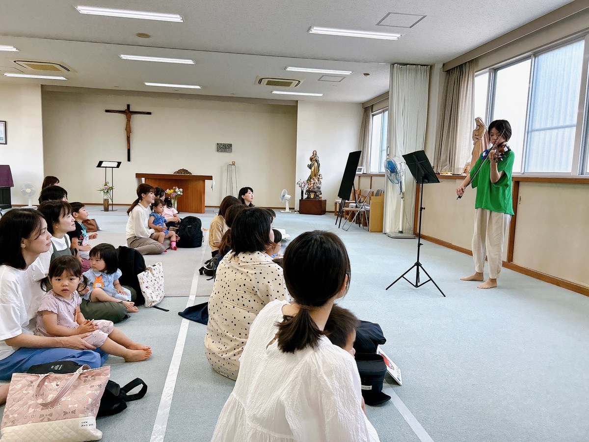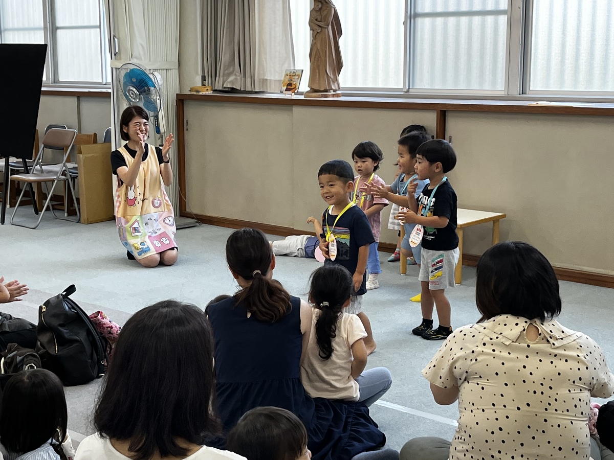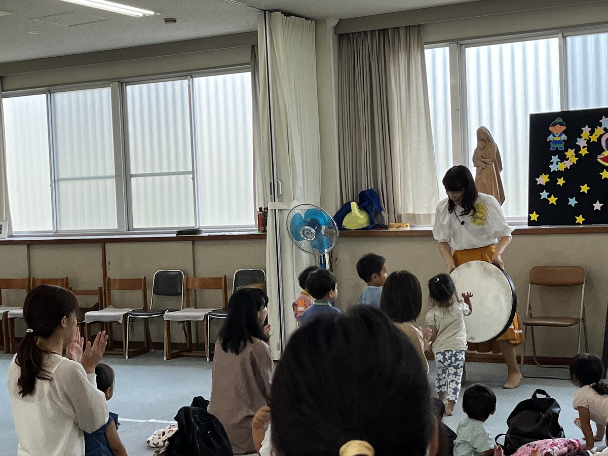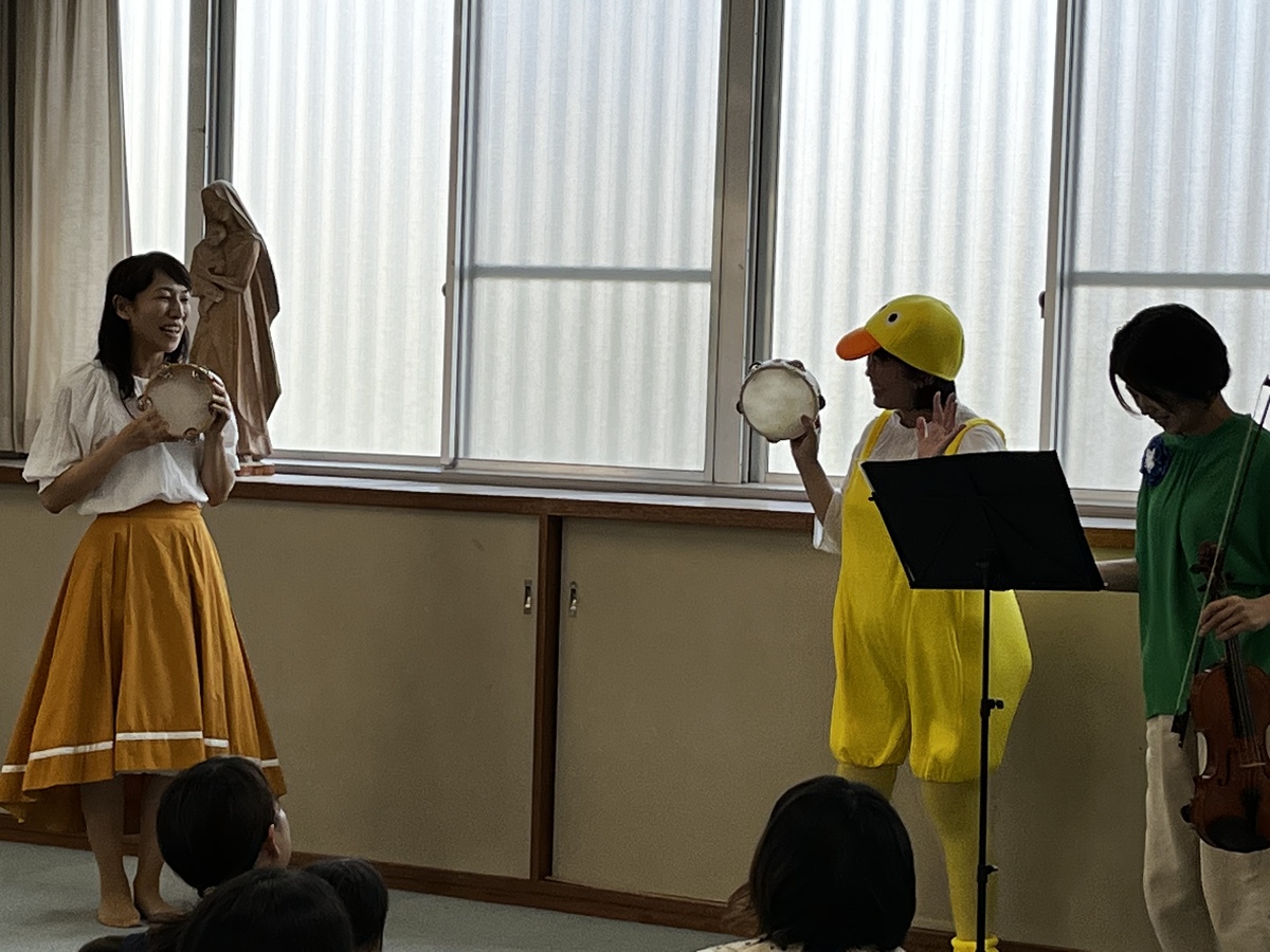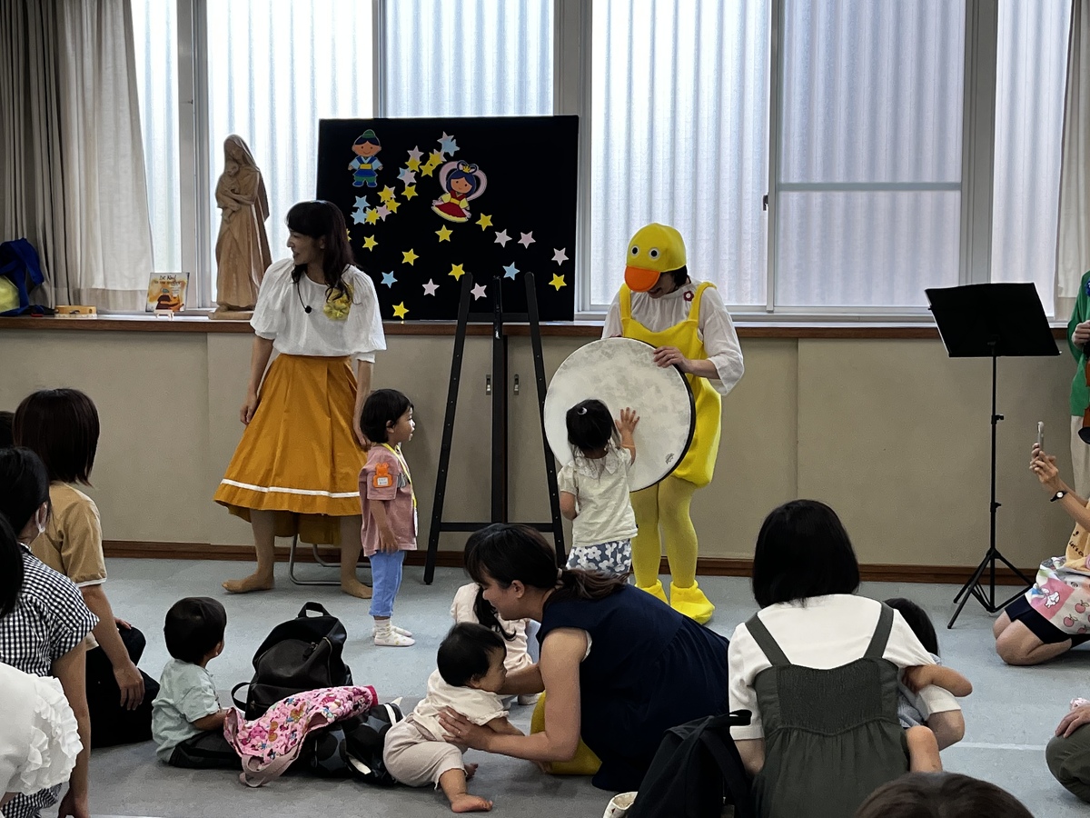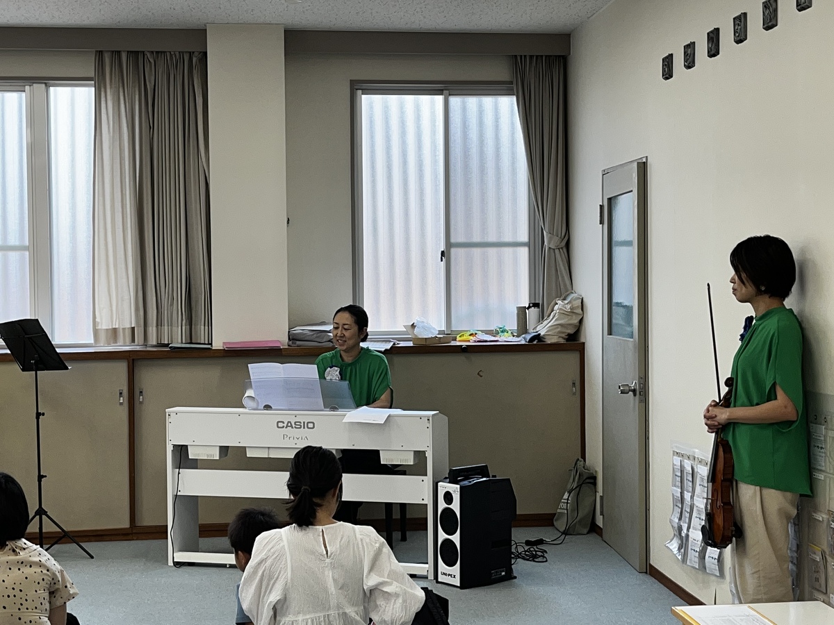 その後は、みゅーじっくすぺーす•コモドさんがお楽しみに駆けつけてくれました。素敵なバイオリンやピアノの音に合わせて、みんなで歌を歌ったりマラカスで一緒に音楽を楽しみました。7月7日は七夕。みんなで星を一つずつ貼って素敵な星空ができました。織姫様と彦星様も出てきて楽しかったね!みゅーじっくすぺーす•コモドさん、本日はありがとうございました。つぼみクラス、プチつぼみクラスの皆さんまた2学期に会えるのを楽しみにしています!9月からちゅうりっぷ組になるお友だち、幼稚園で待っていますよ!