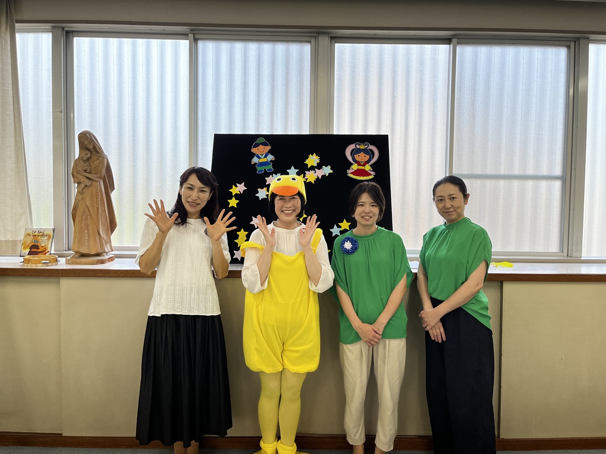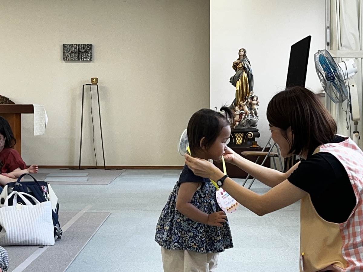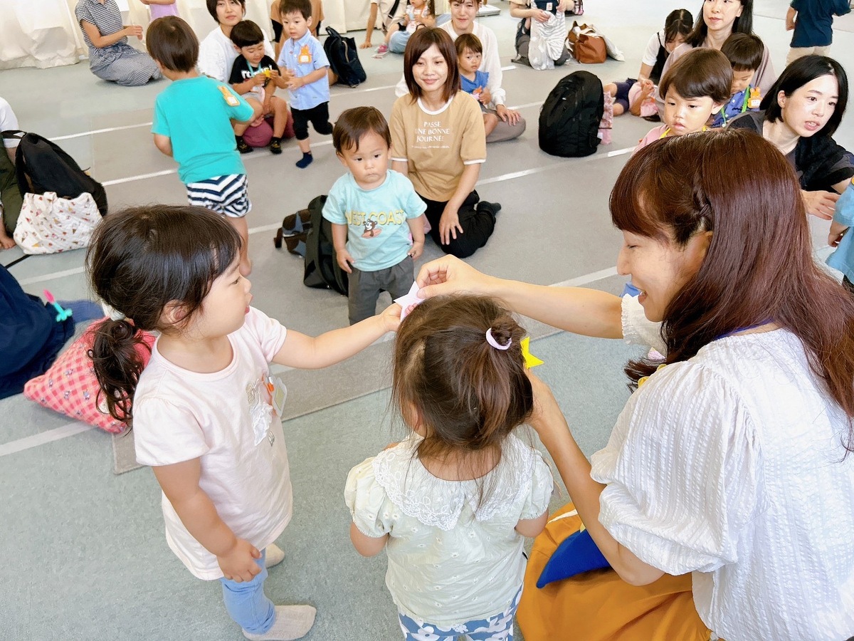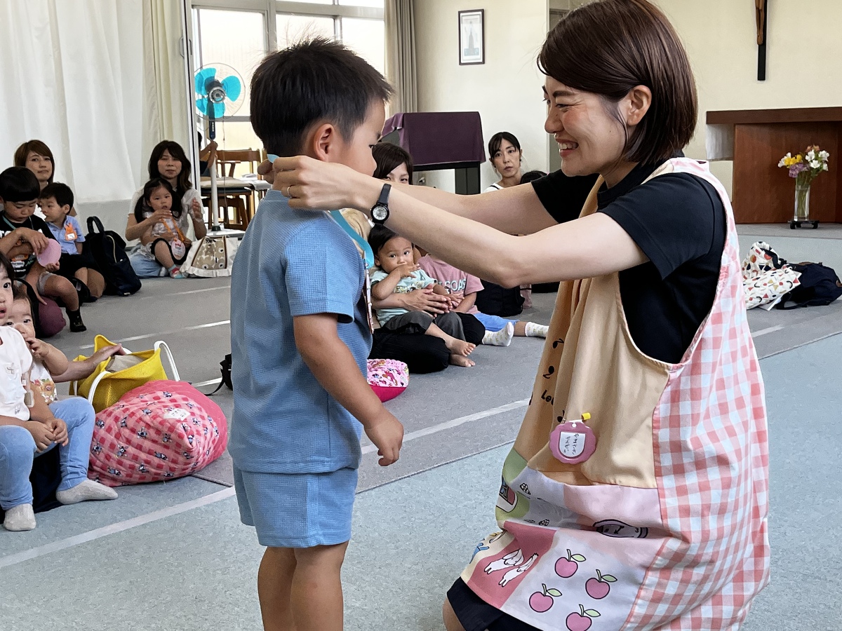 今日は1学期最後のお楽しみ会。まず初めに4.5.6.7月生まれのお誕生日のお友だちのお祝いをしました!素敵なメダルをもらって嬉しかったね!