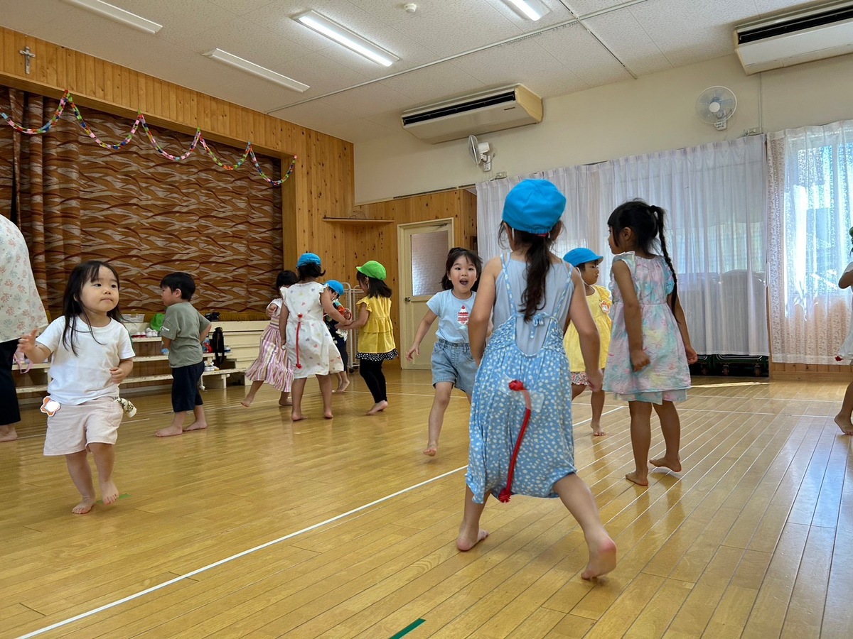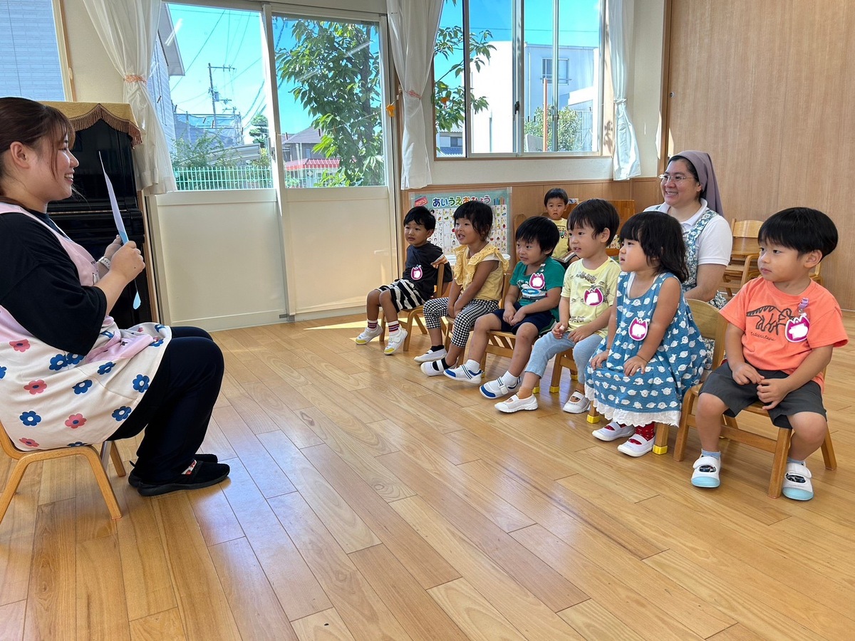 夏期保育1日目がありました。 2023年08月29日(火) 夏期保育1日目。久しぶりにお友だちや先生に会えて嬉しそうな子どもたちの姿が見られました。 「夏休みお出かけしたよ〜!」「プールに行ったよ!」「お祭りに行ったらマリア幼稚園のお友だちに会えたんだ〜」と夏休みの思い出話に花が咲きました。 2学期、また一つ大きくなったみんなと一緒に過ごせるのを楽しみにしています!