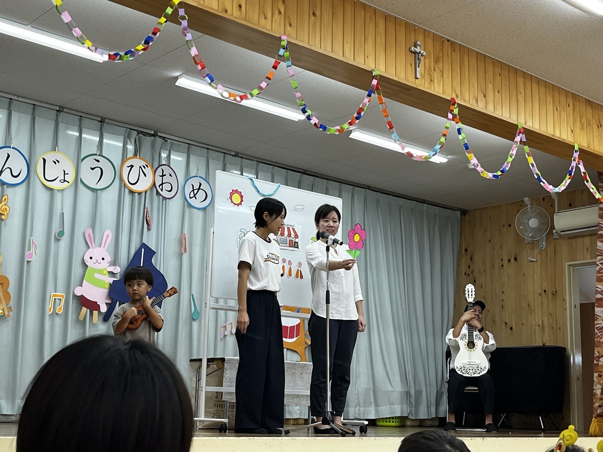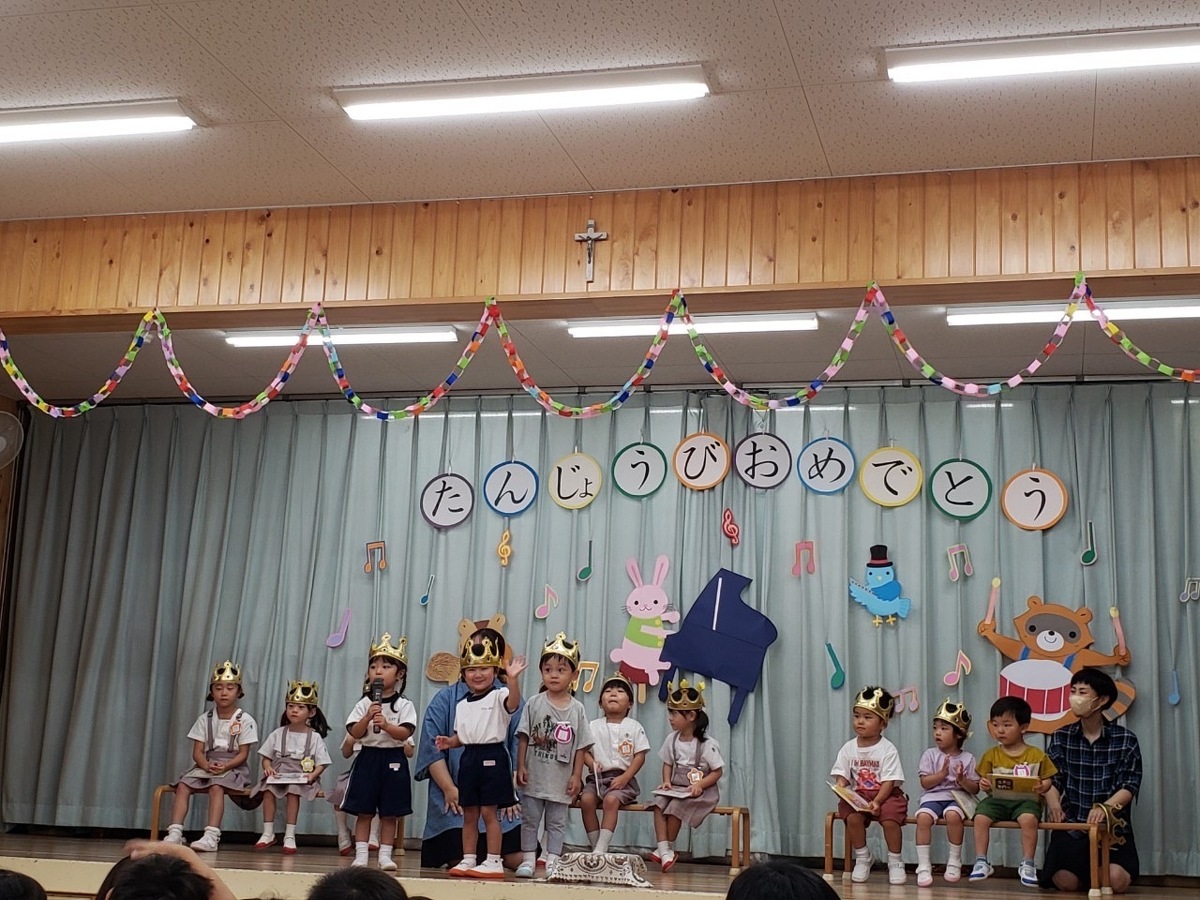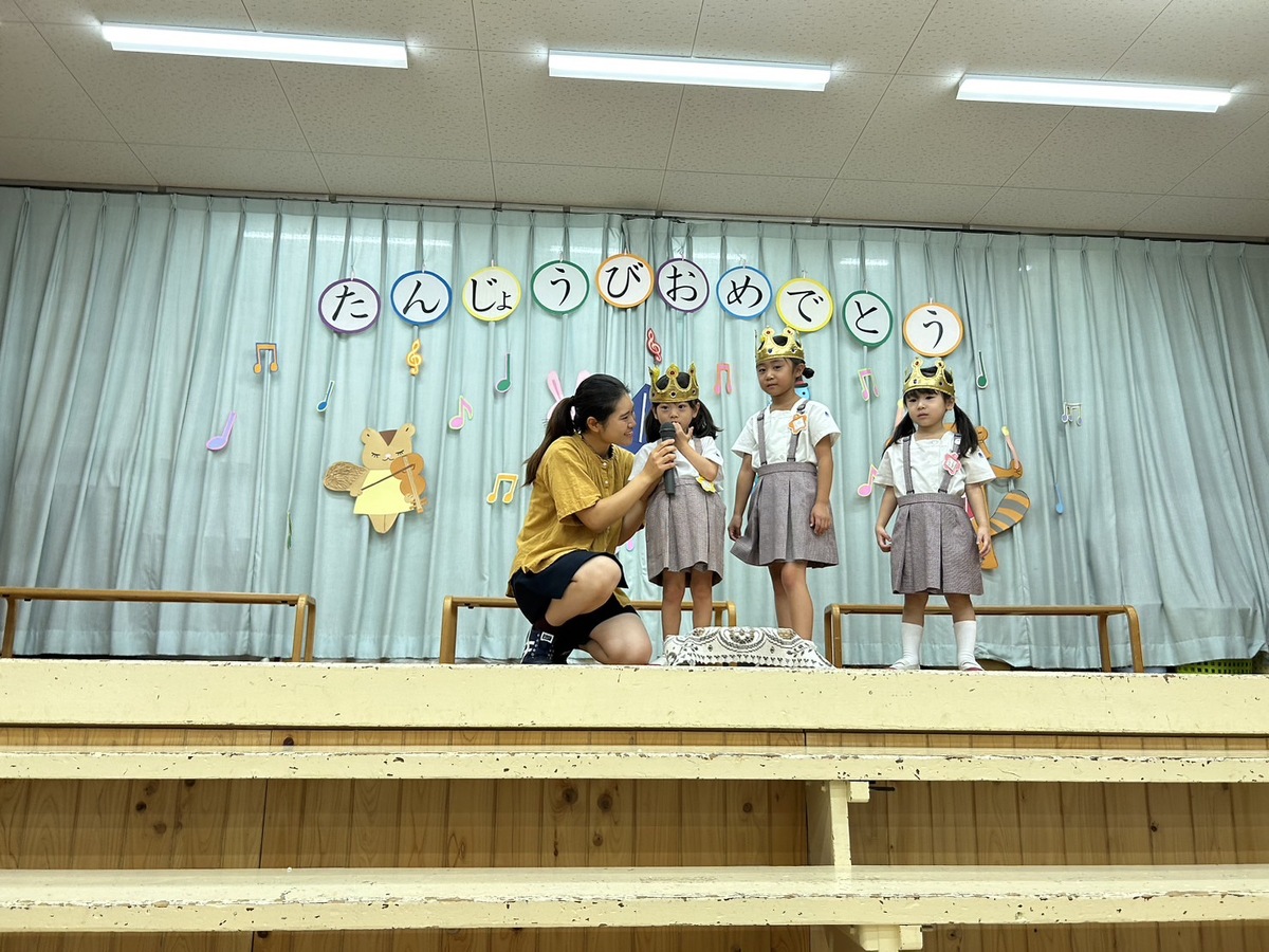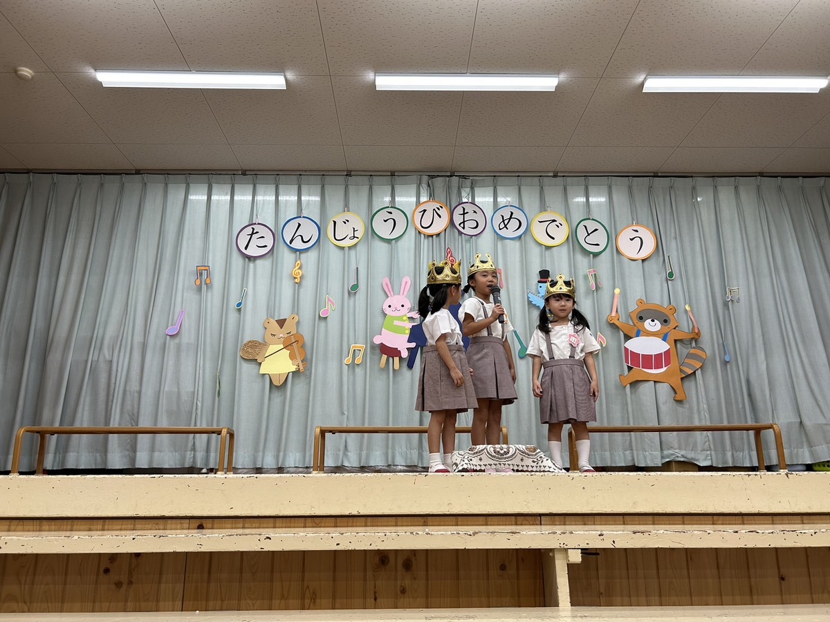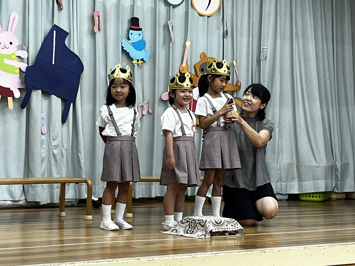 また、今月はちゅうりっぷ組(満3歳児)のクラスのお友だちがたくさんステージに出ましたが、初めてのステージでも笑顔いっぱいで楽しく発表することができました。お兄さん、お姉さんたちもステージの上で緊張しながらもみんな頑張っていました。
