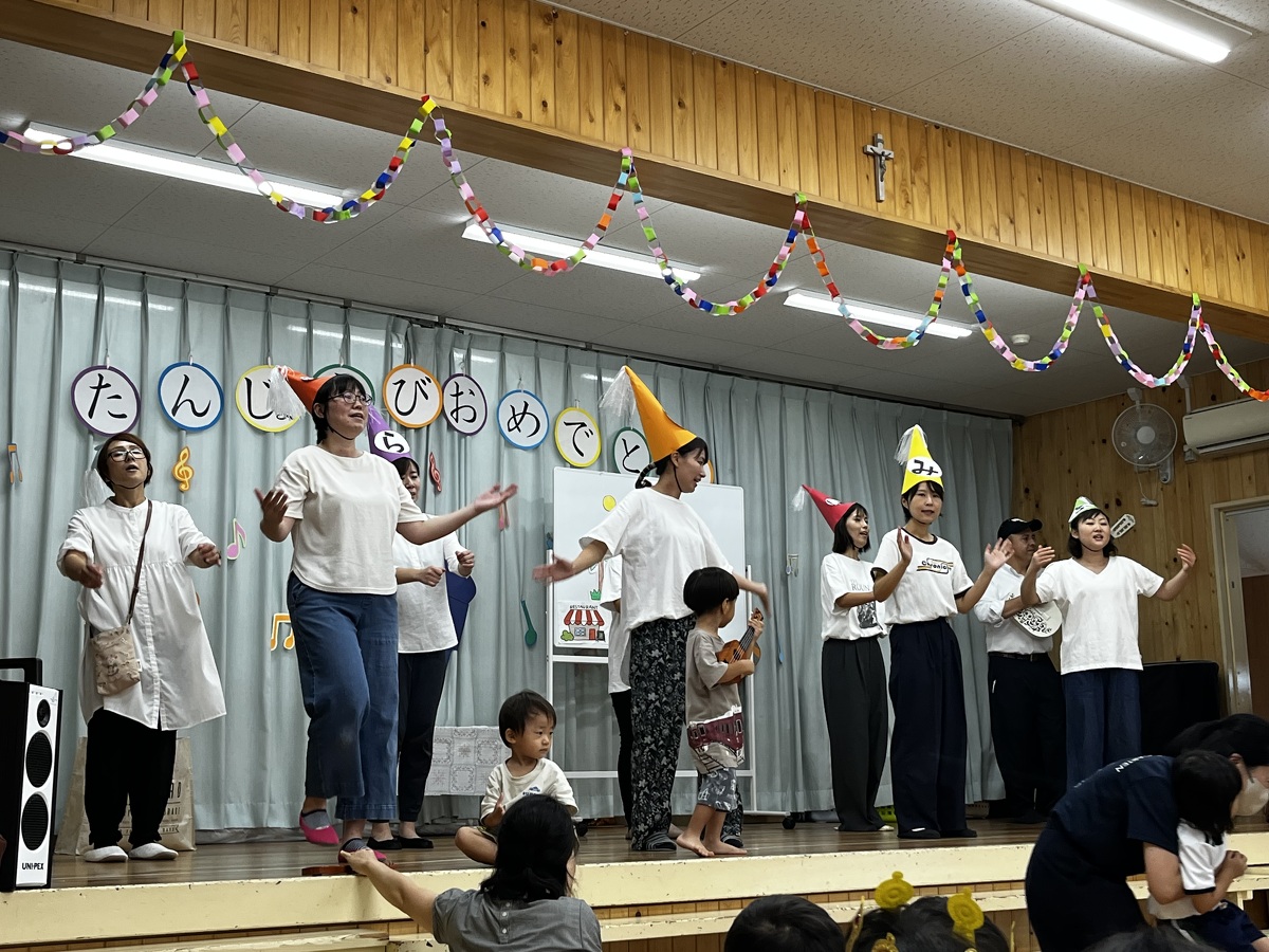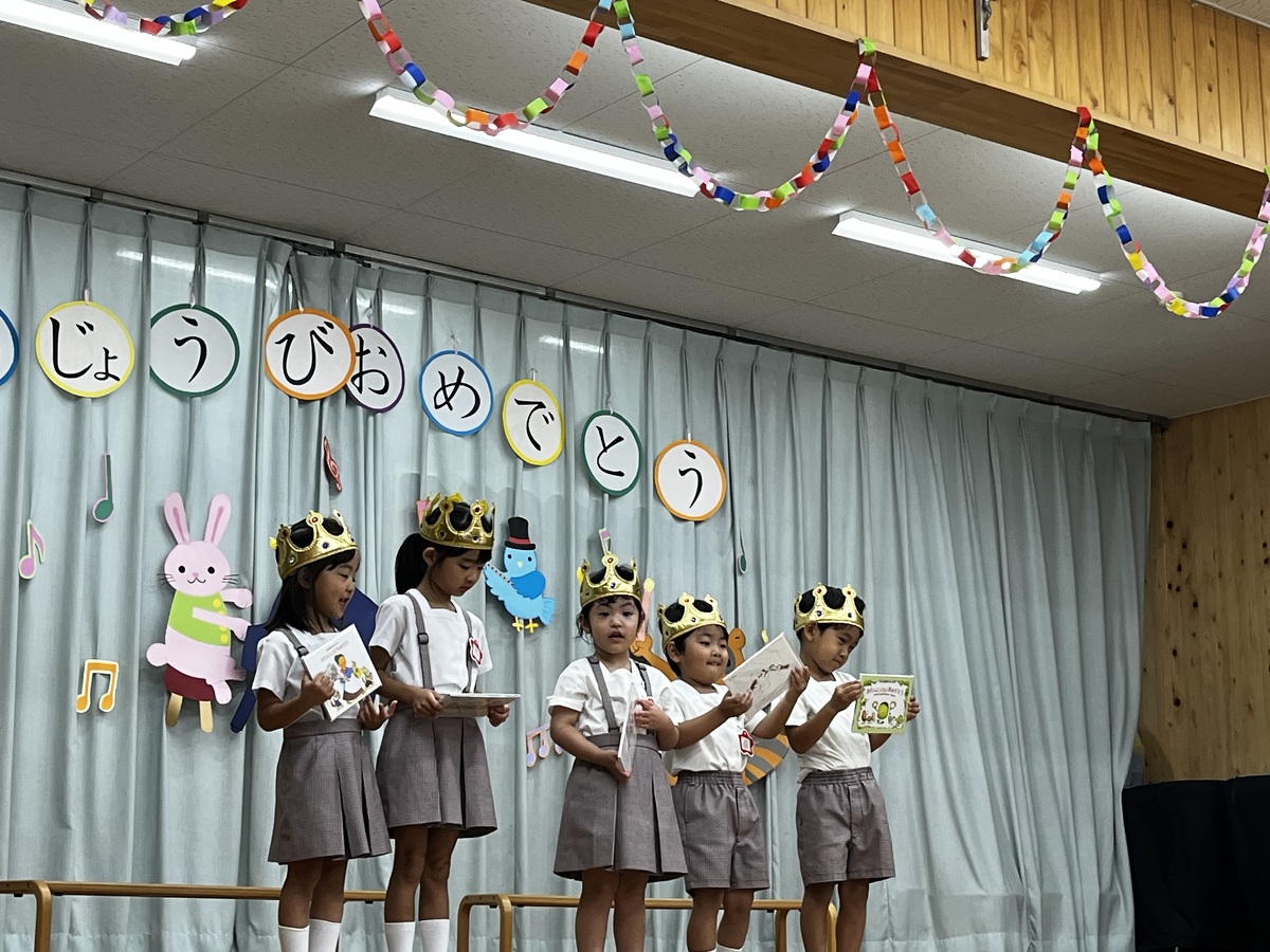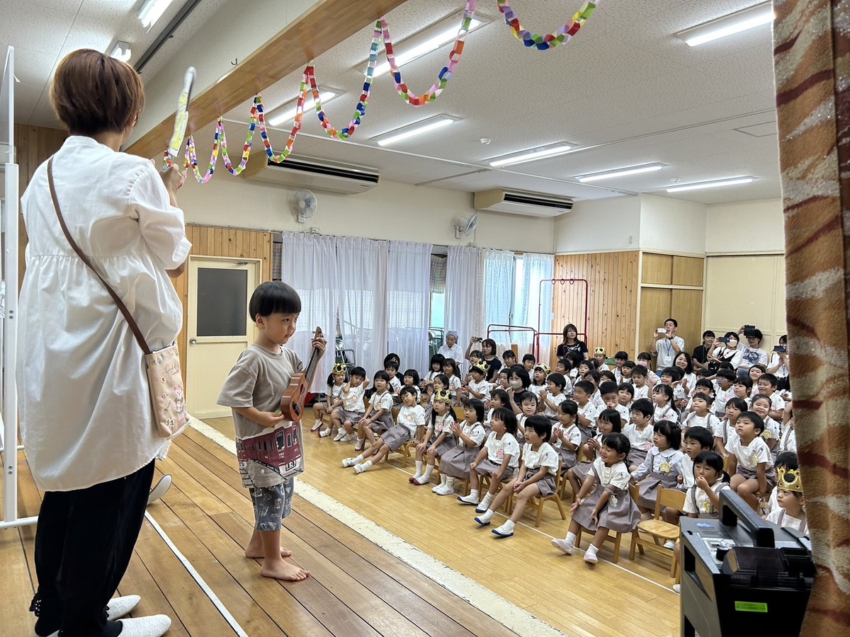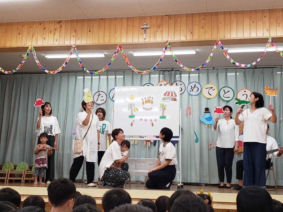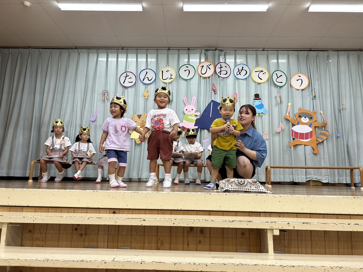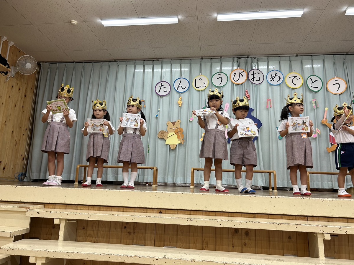 また、今月はちゅうりっぷ組(満3歳児)のクラスのお友だちがたくさんステージに出ましたが、初めてのステージでも笑顔いっぱいで楽しく発表することができました。お兄さん、お姉さんたちもステージの上で緊張しながらもみんな頑張っていました。
