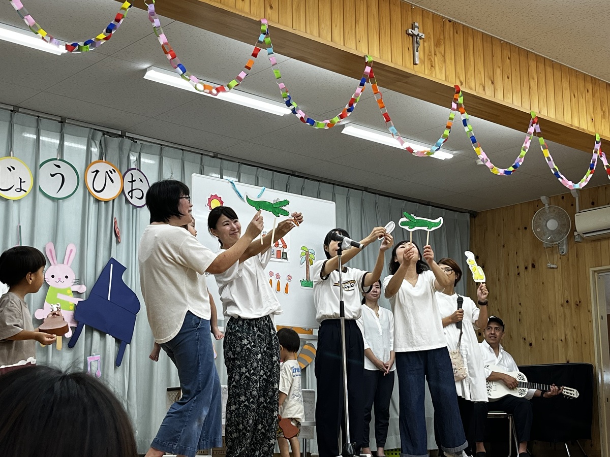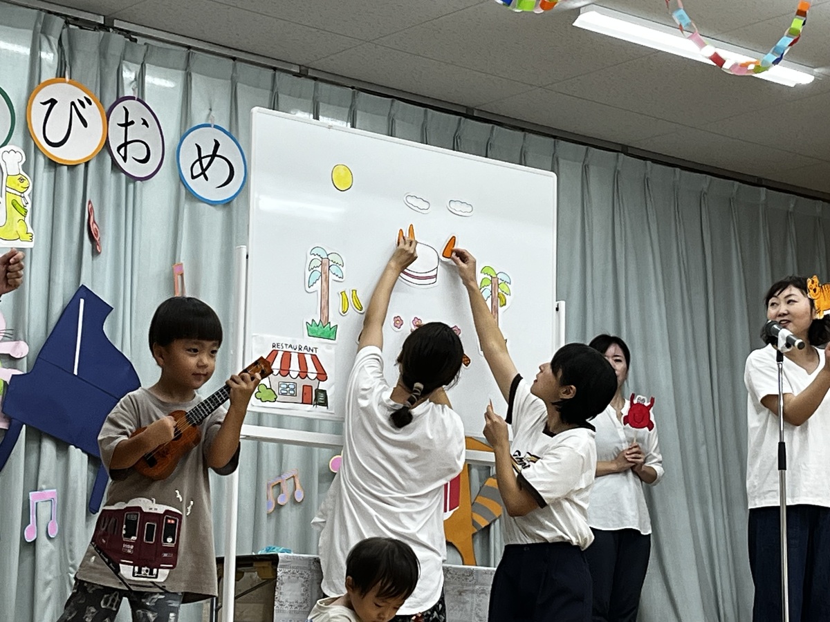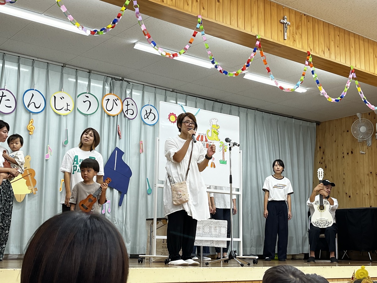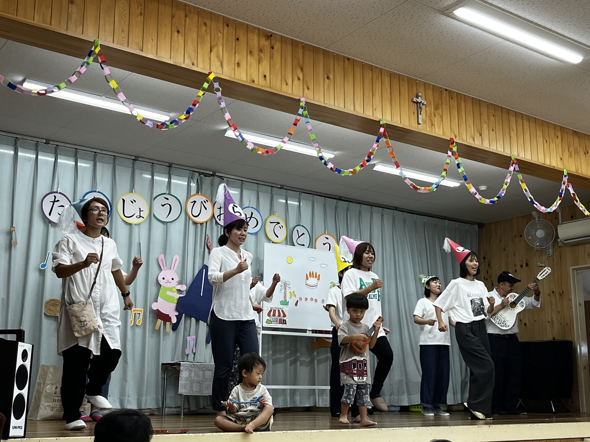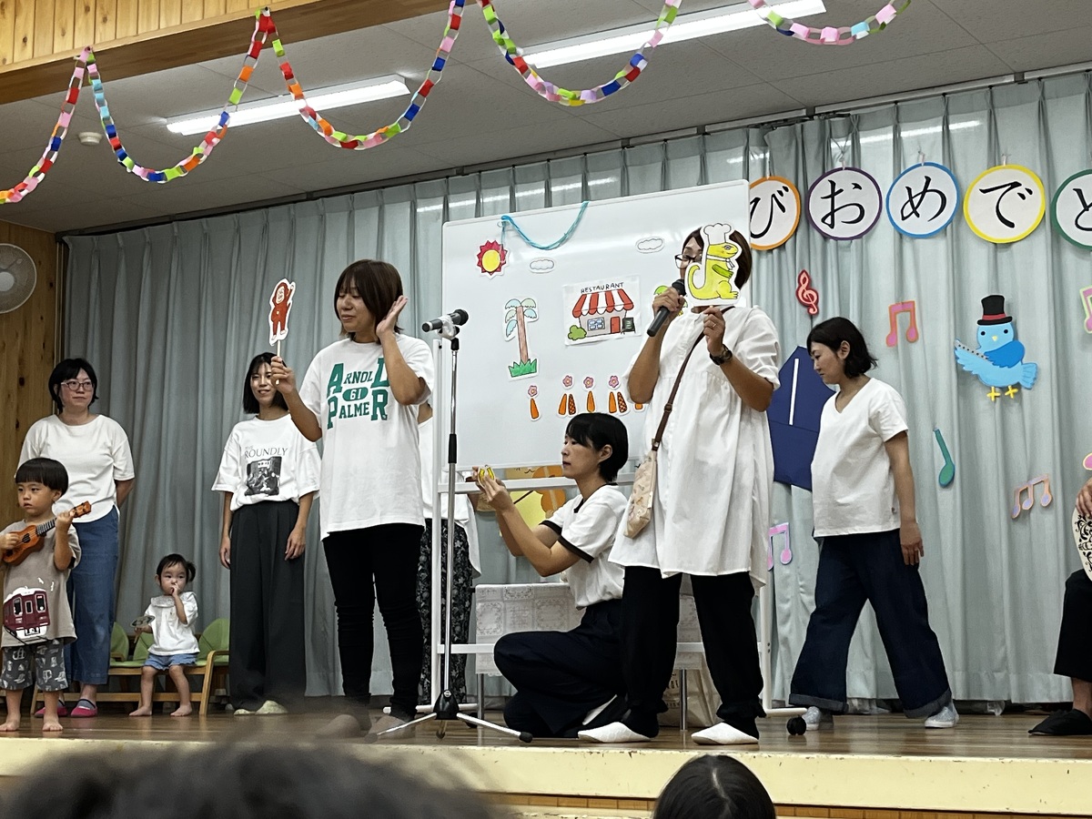 また、今月はちゅうりっぷ組(満3歳児)のクラスのお友だちがたくさんステージに出ましたが、初めてのステージでも笑顔いっぱいで楽しく発表することができました。お兄さん、お姉さんたちもステージの上で緊張しながらもみんな頑張っていました。
