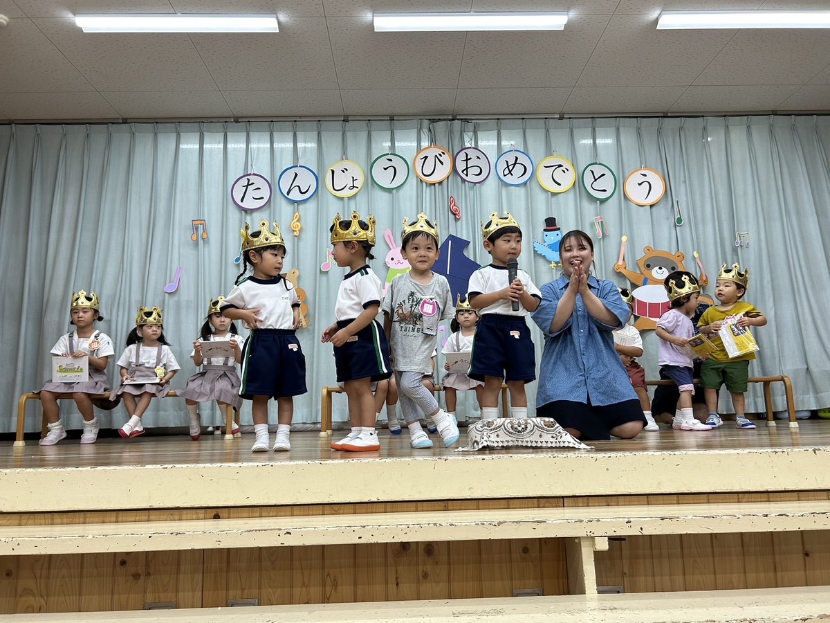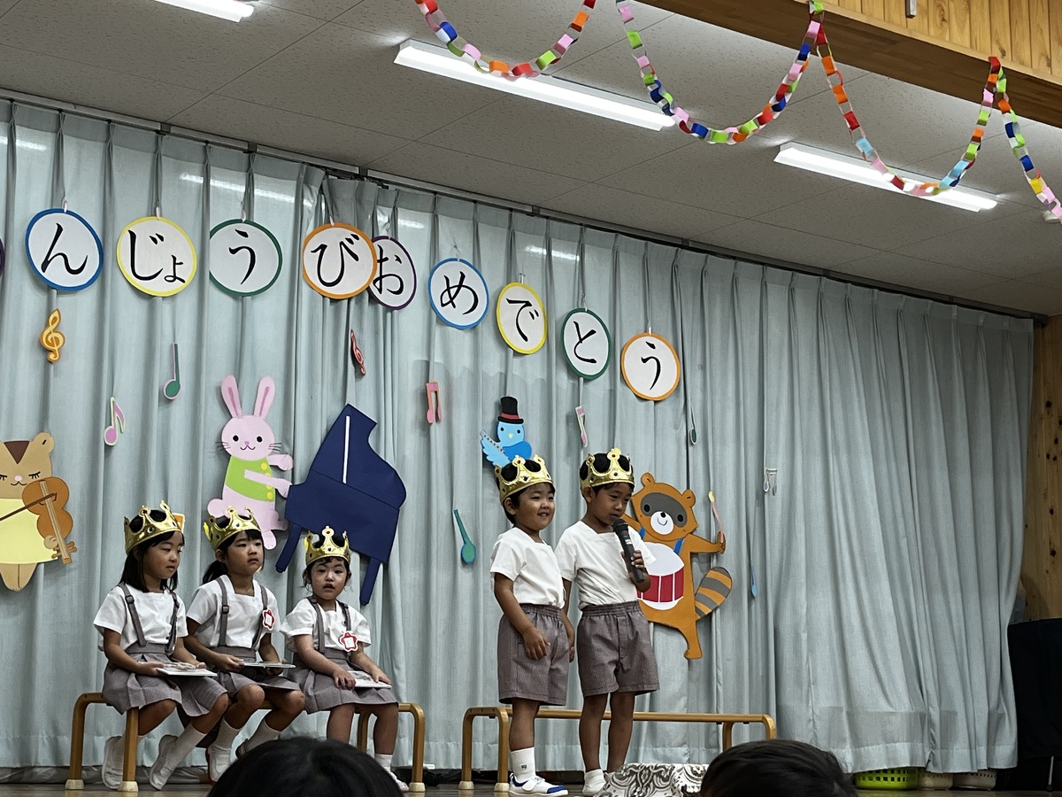 9月生まれの誕生日会でした。今月も誕生日会係のお母さんから素敵なうさぎとお月見団子の折り紙をいただきました。子どもたちみんな大喜びでした。