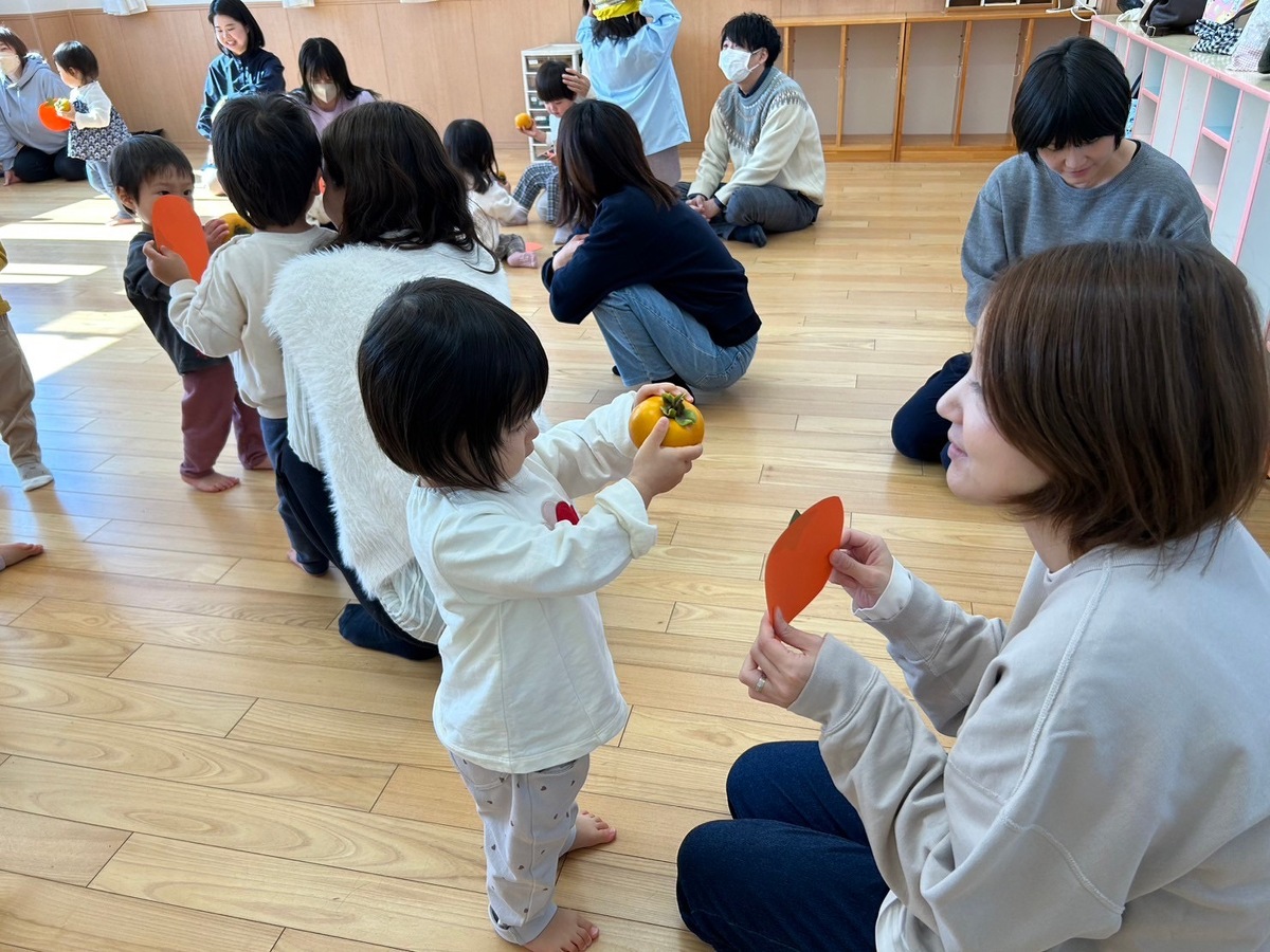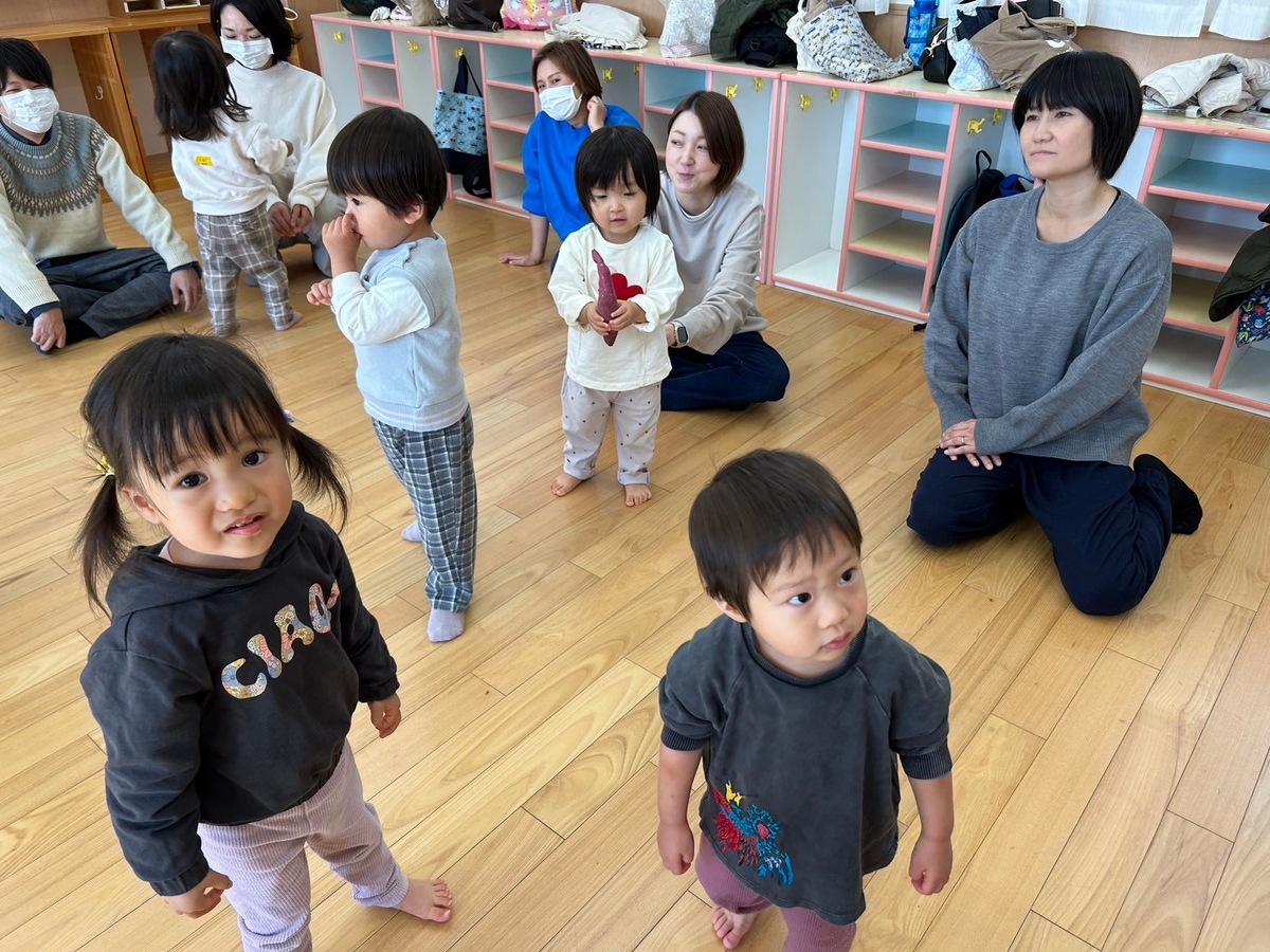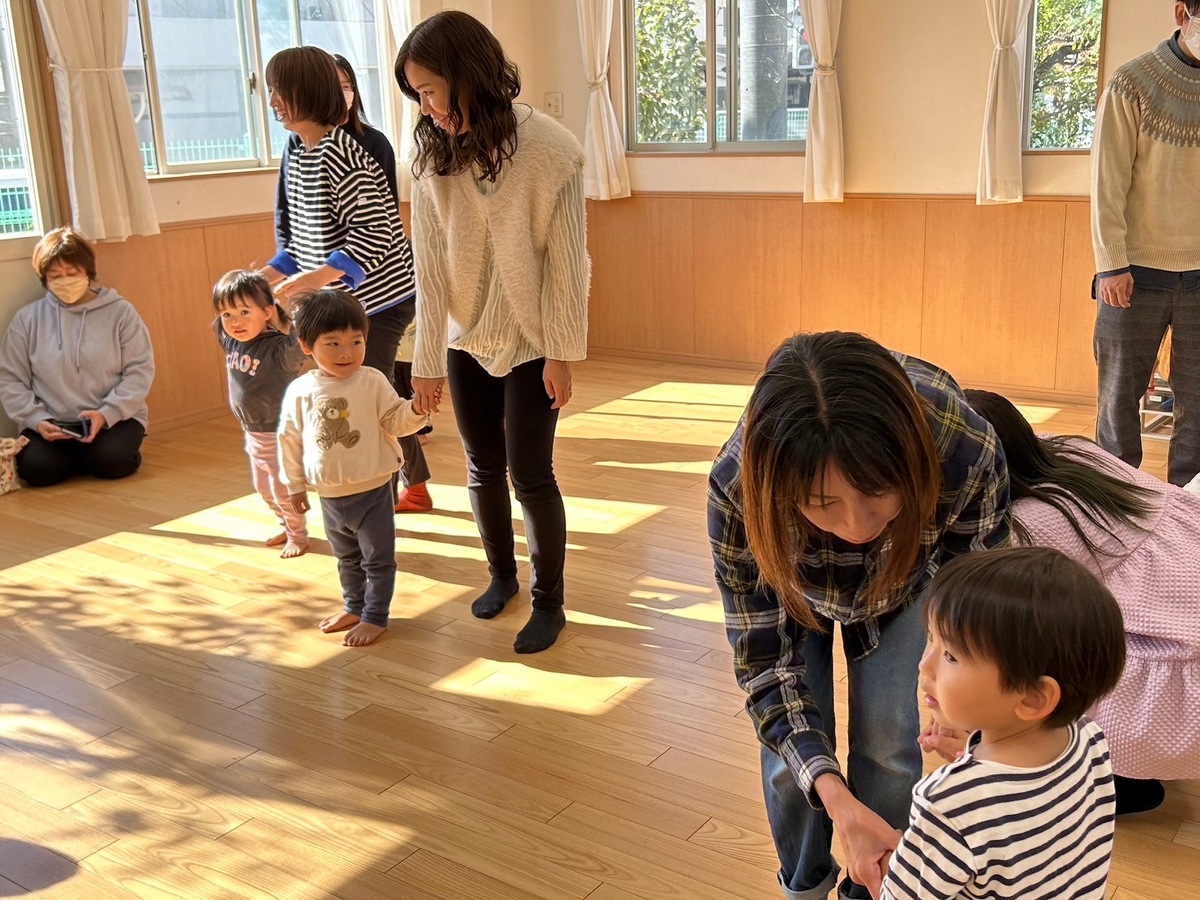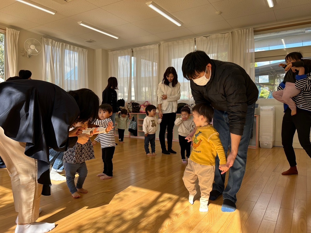 プチつぼみクラスでリトミック。園長先生とピアノの音楽に合わせて一緒に楽しみました。