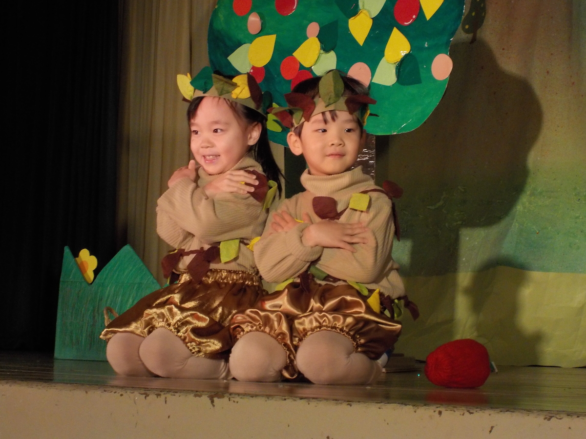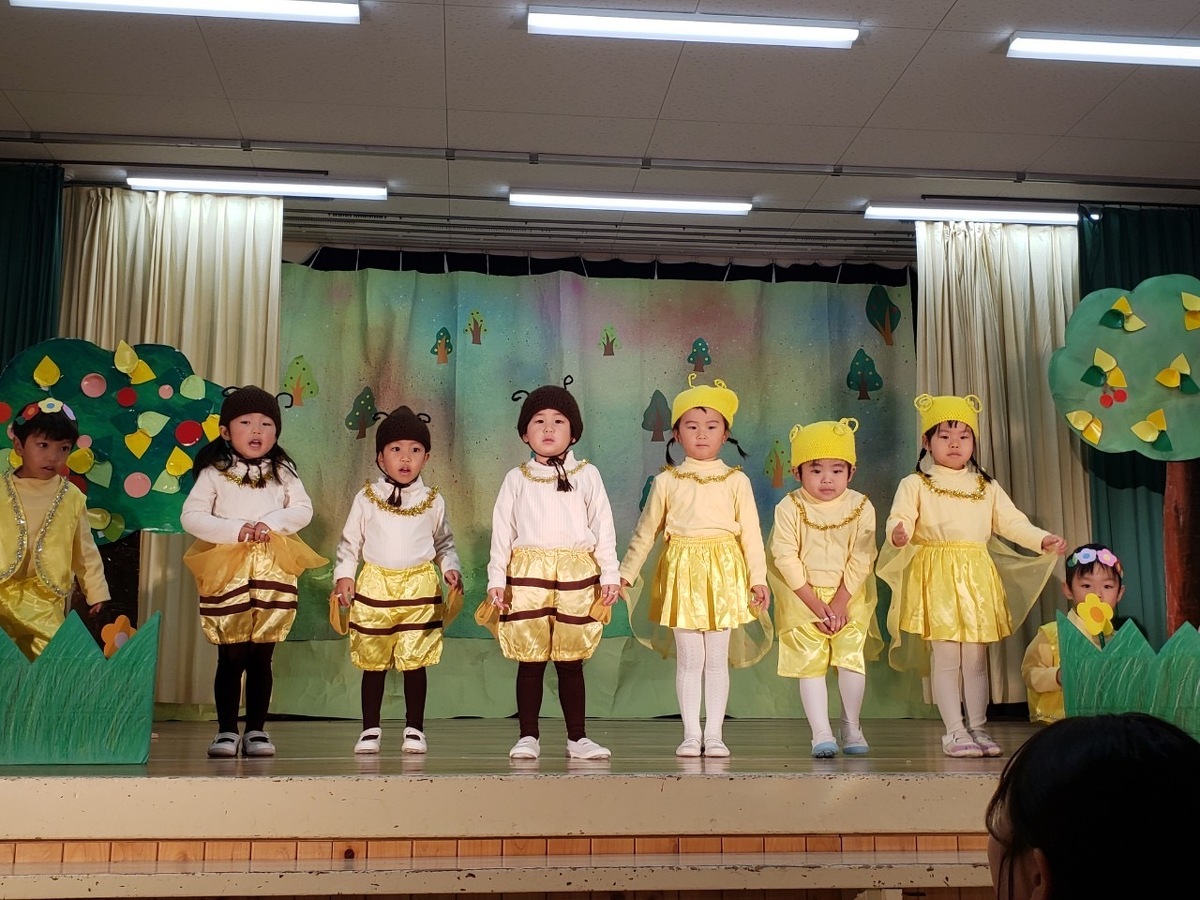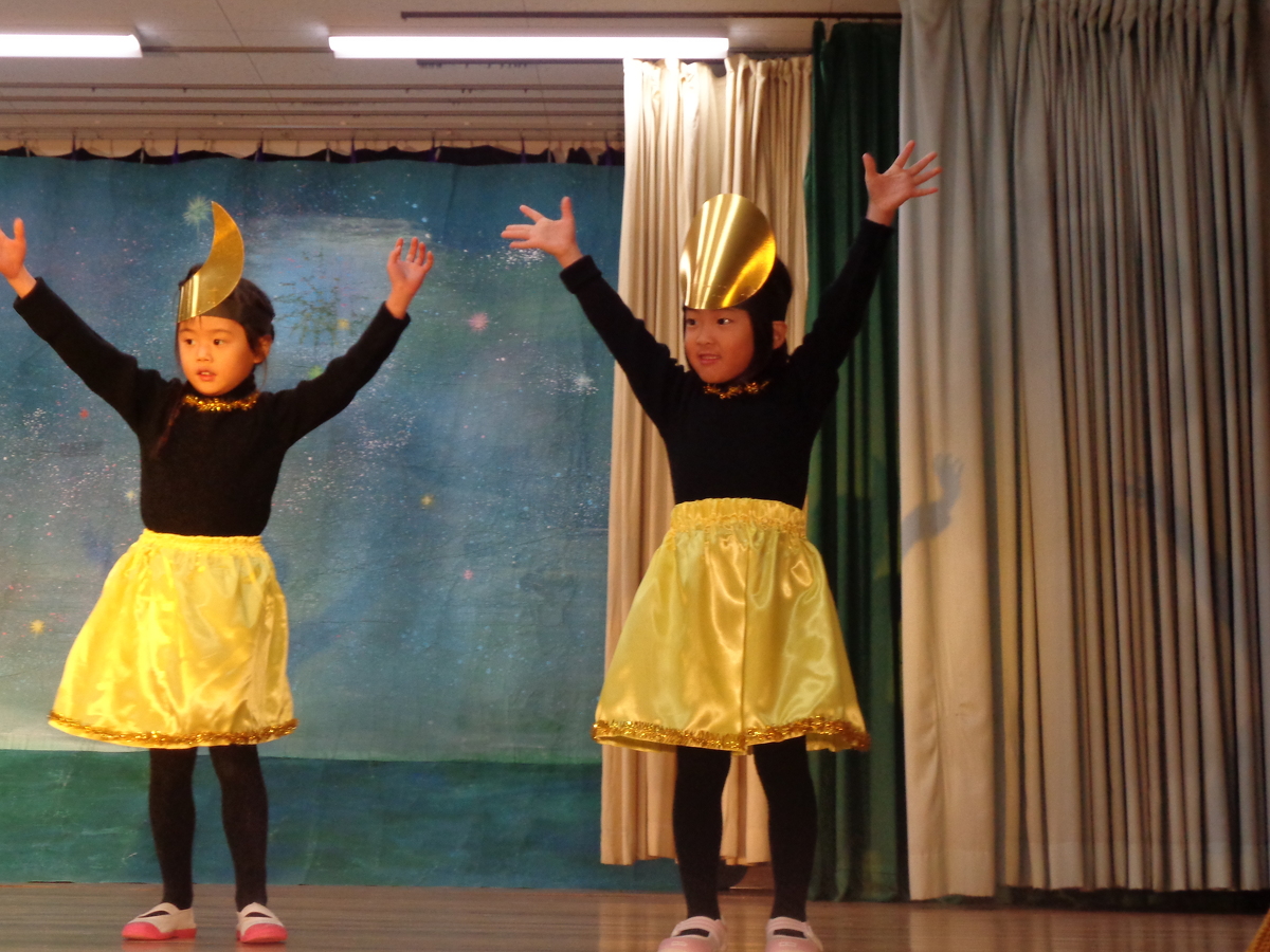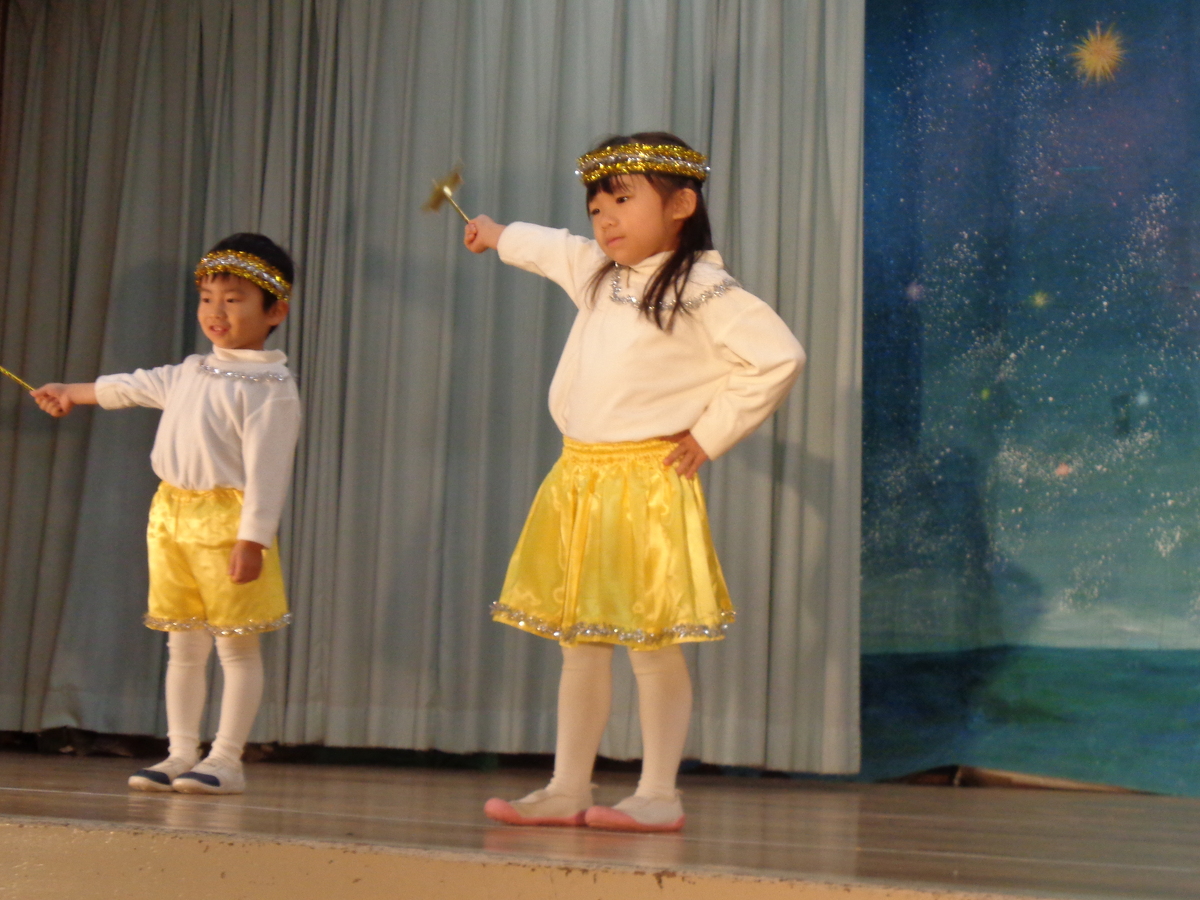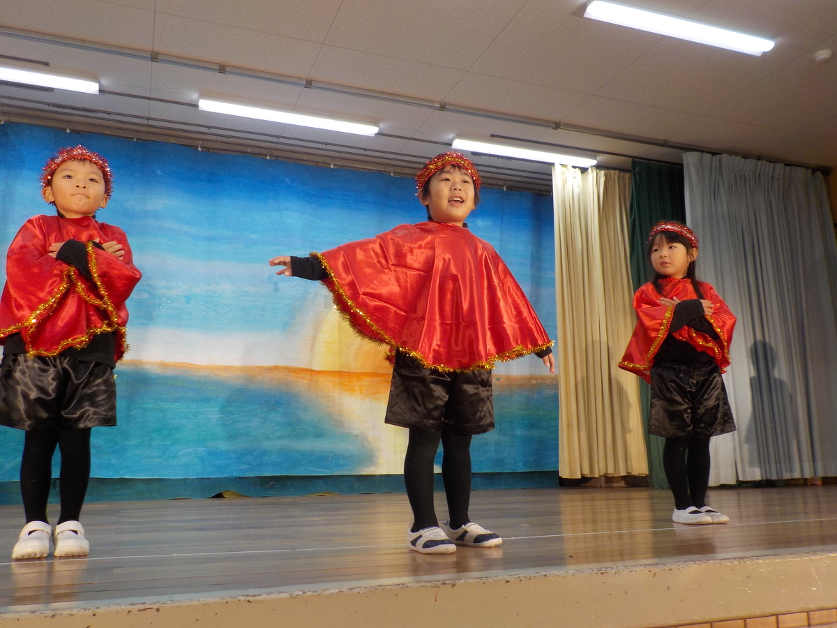 第一部は、年少児、年中児による天地創造です。音楽に合わせてダンスを踊ったり、セリフを言ったりして、世界の始まり、春夏秋冬を表現しました。そして、第二部はご降誕。年長児による聖劇を行いました。子どもたちそれぞれ役になりきって、堂々と表現することができました。