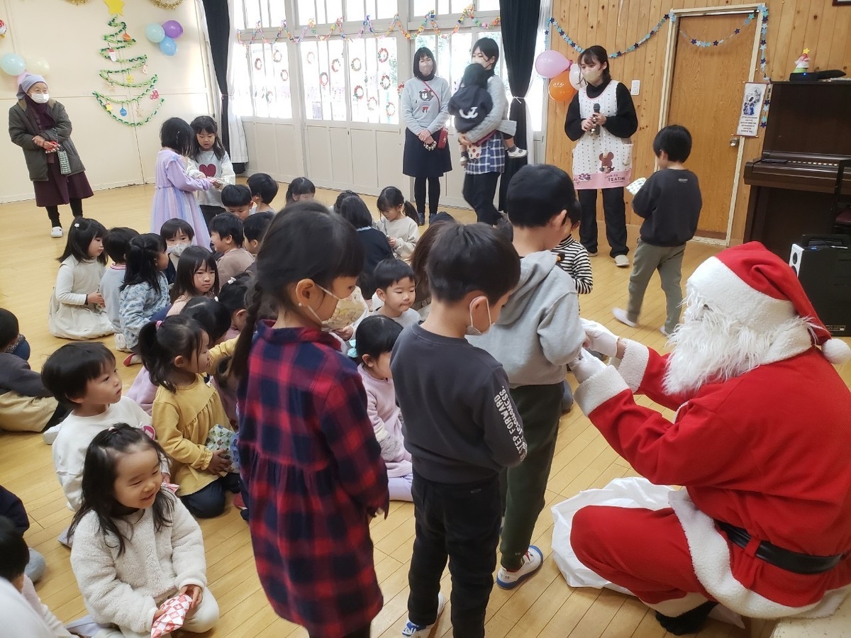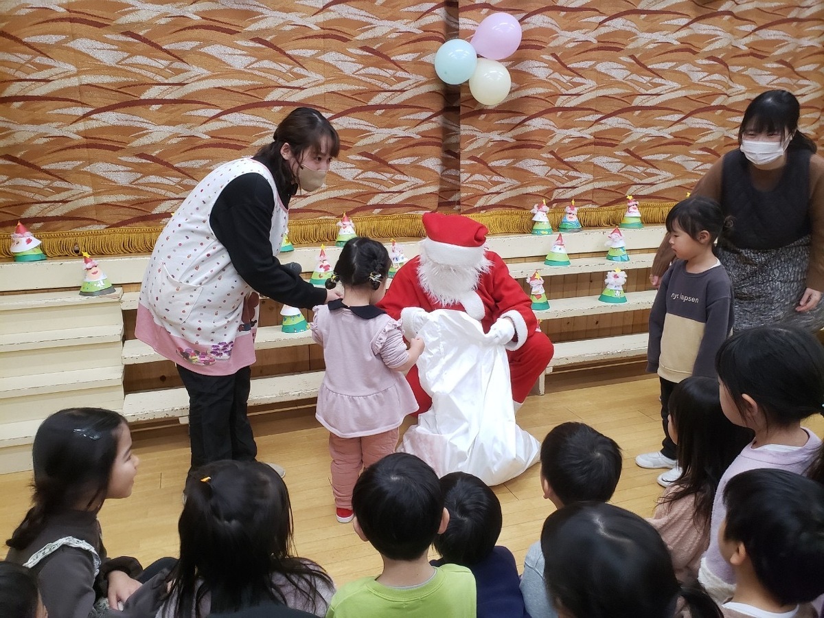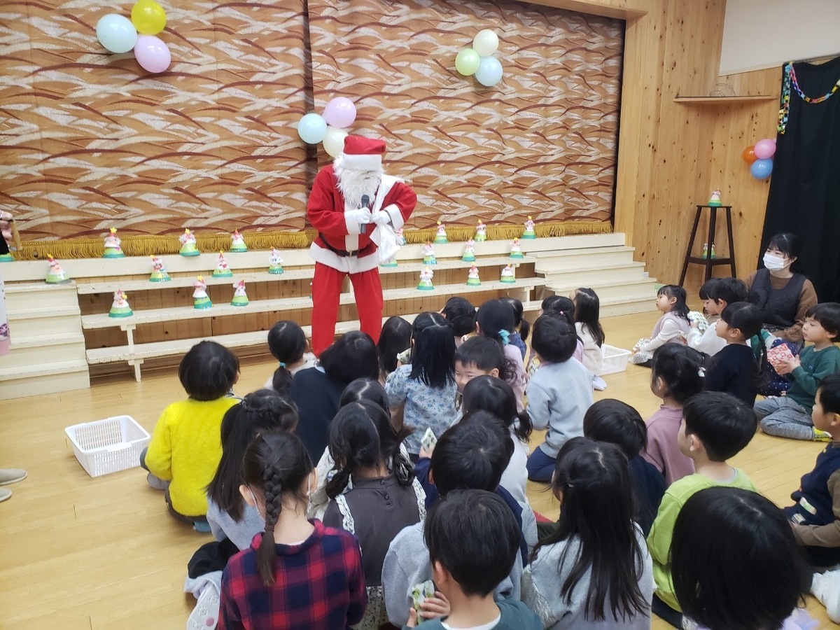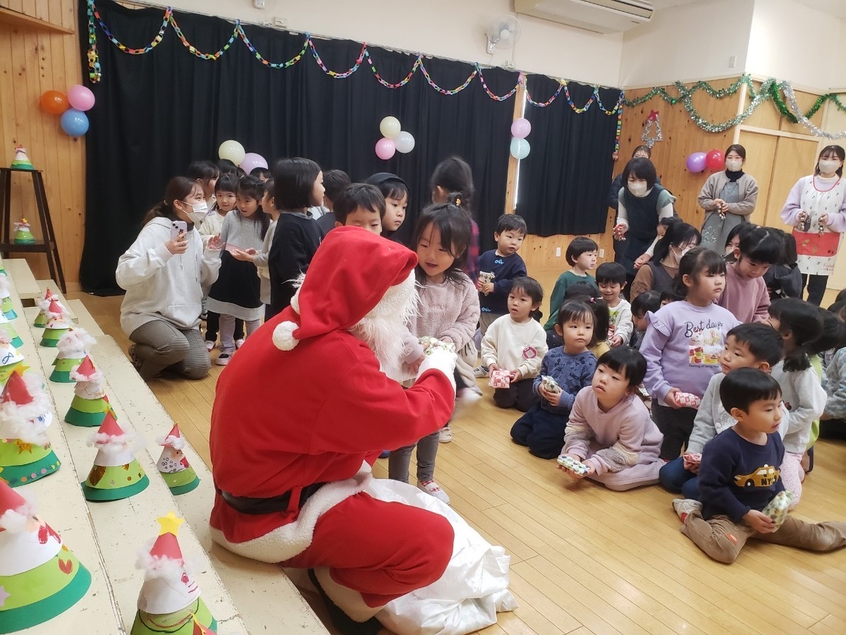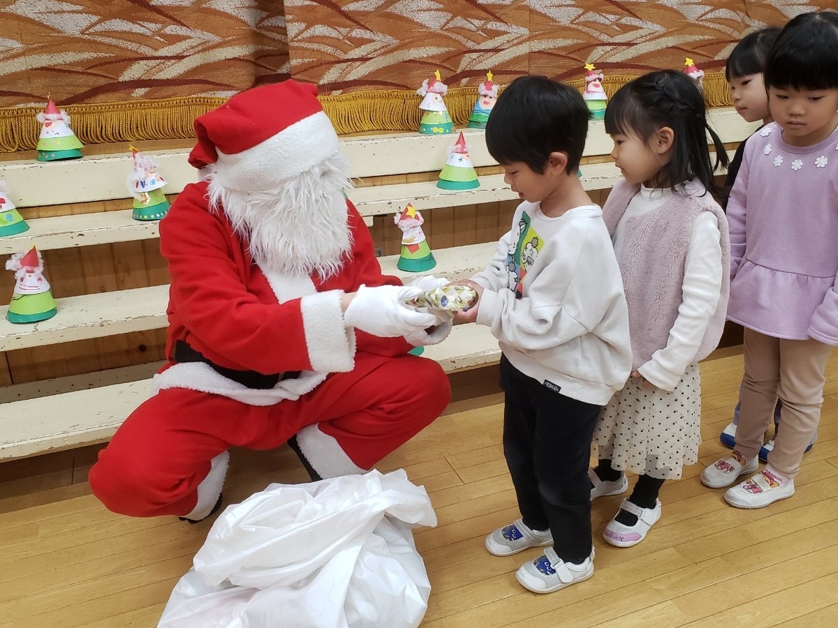 先日みんなで頑張ったクリスマス会お空から見てたよと言ってくれたサンタさんにプレゼントをいただきました。その後は、サンタさんに歌のプレゼント。色んな幼稚園に遊びに行っているけれどお礼に歌を歌ってもらったのは初めてと、とても喜んでくれました。