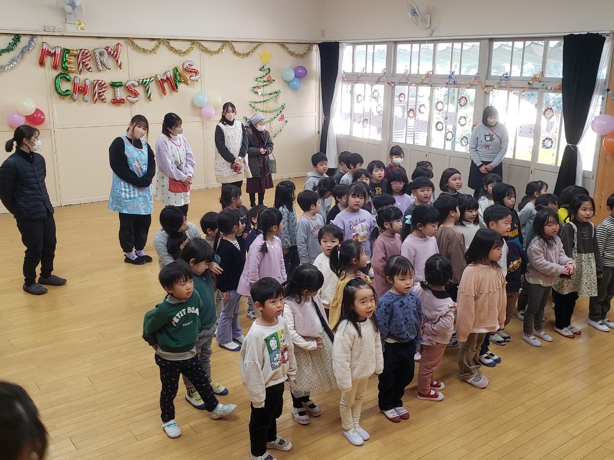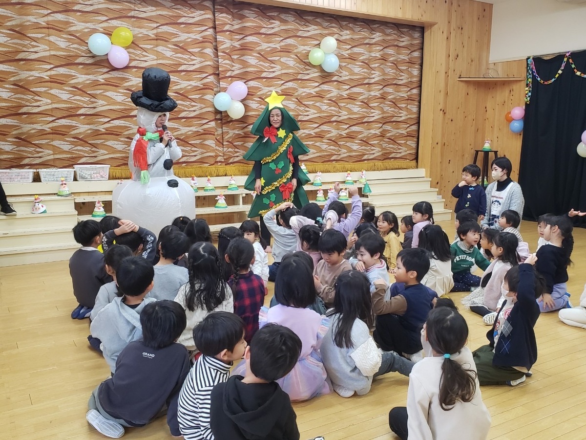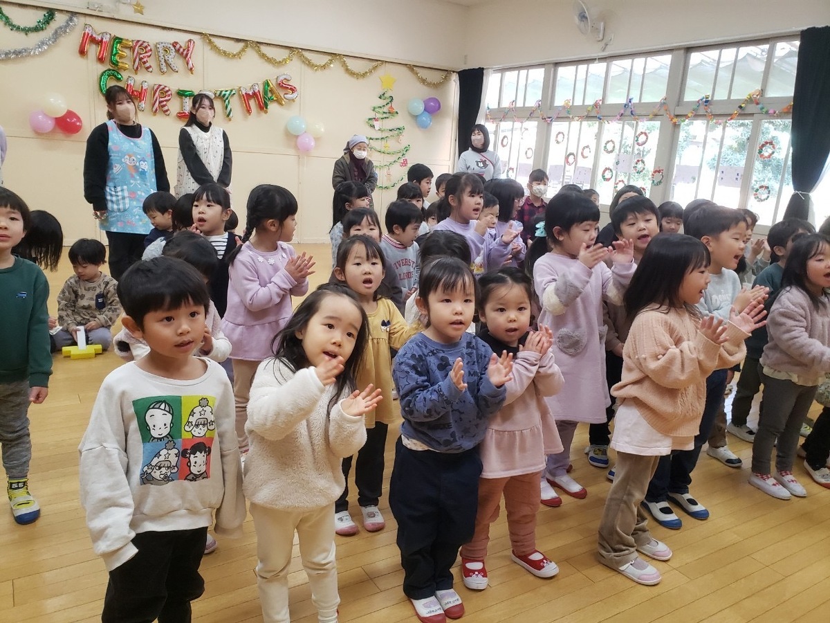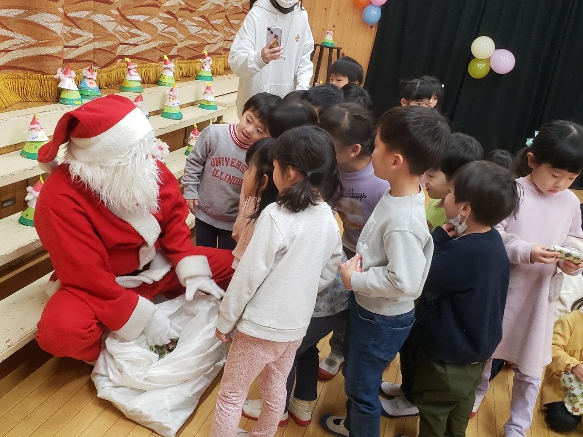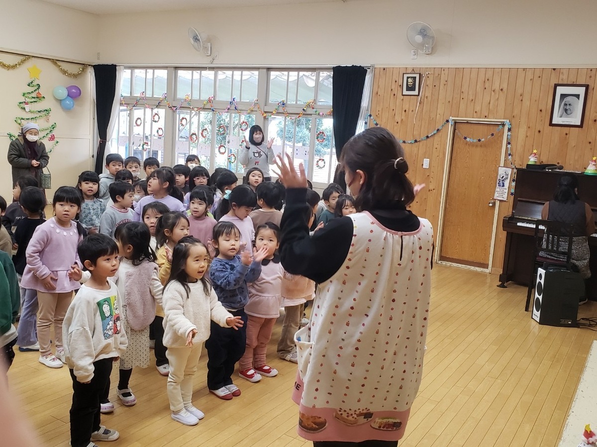 先日みんなで頑張ったクリスマス会お空から見てたよと言ってくれたサンタさんにプレゼントをいただきました。その後は、サンタさんに歌のプレゼント。色んな幼稚園に遊びに行っているけれどお礼に歌を歌ってもらったのは初めてと、とても喜んでくれました。