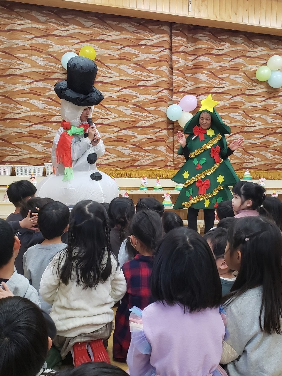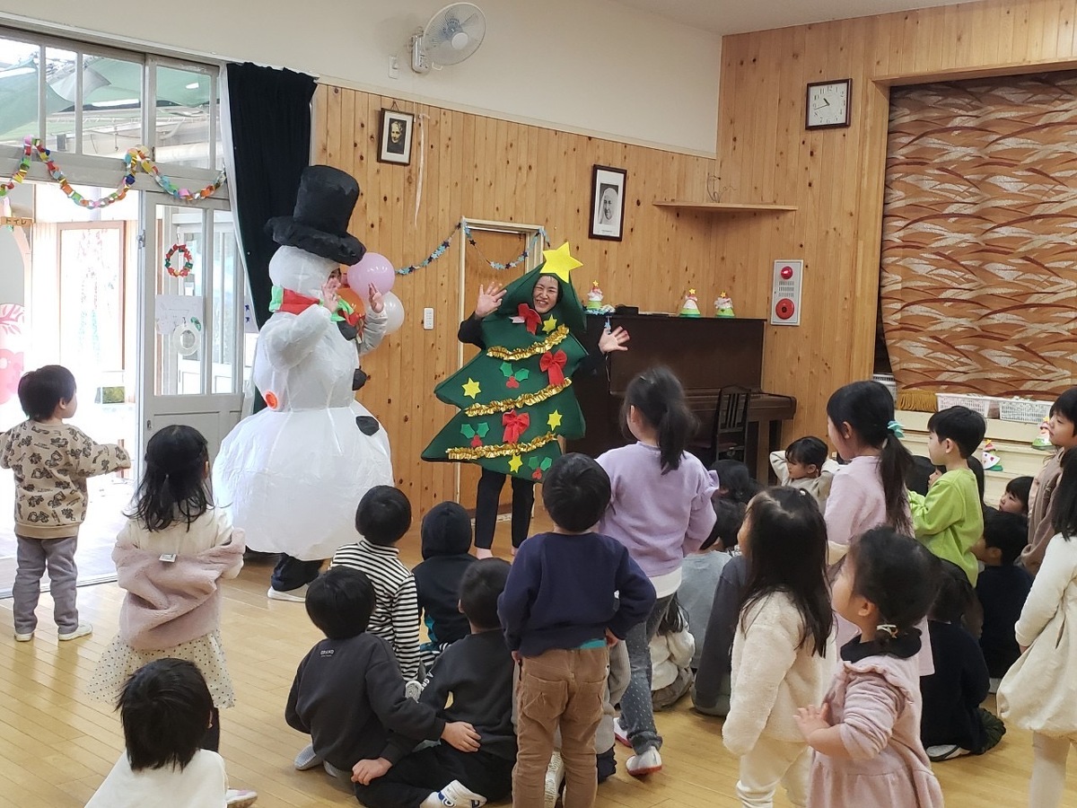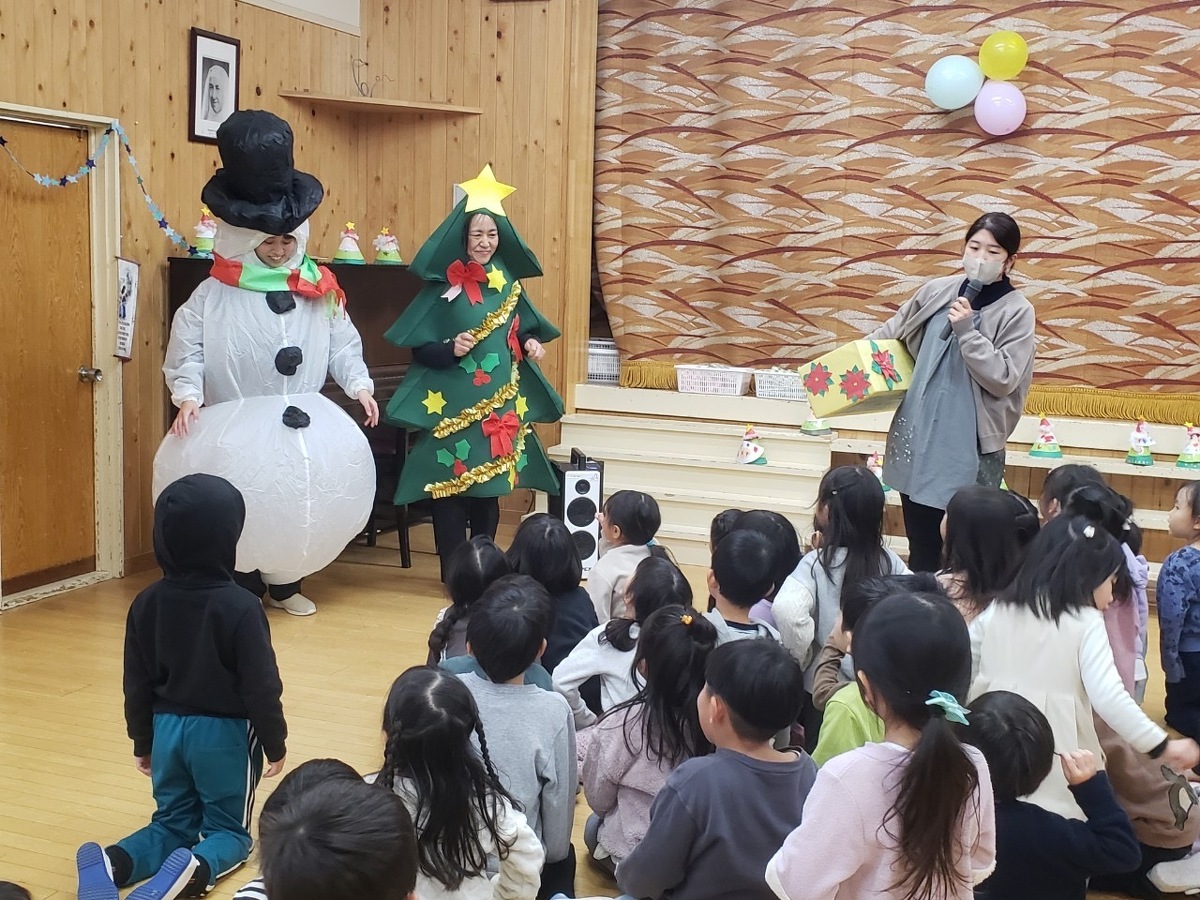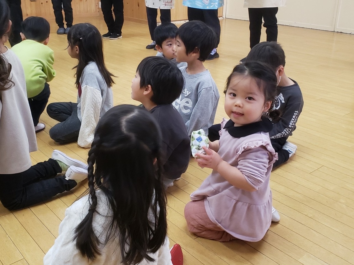 先日みんなで頑張ったクリスマス会お空から見てたよと言ってくれたサンタさんにプレゼントをいただきました。その後は、サンタさんに歌のプレゼント。色んな幼稚園に遊びに行っているけれどお礼に歌を歌ってもらったのは初めてと、とても喜んでくれました。