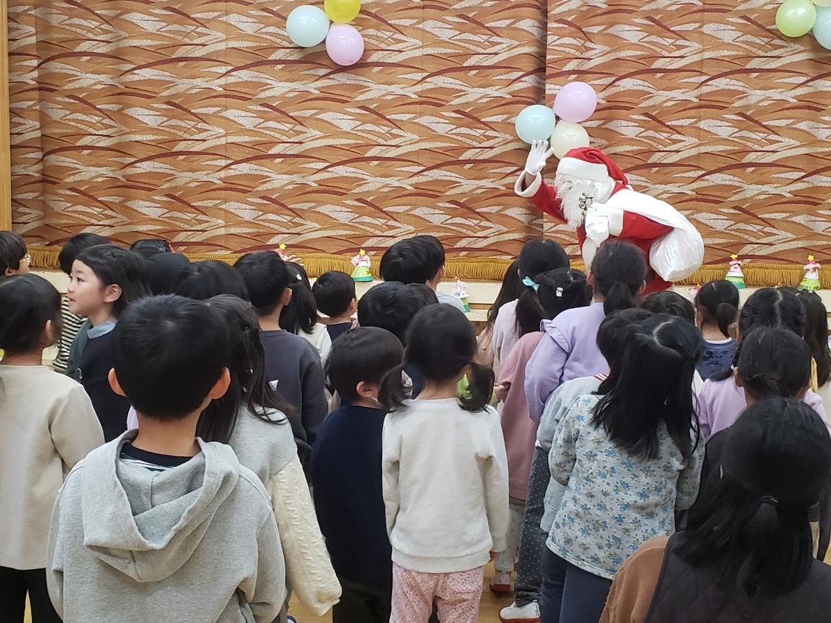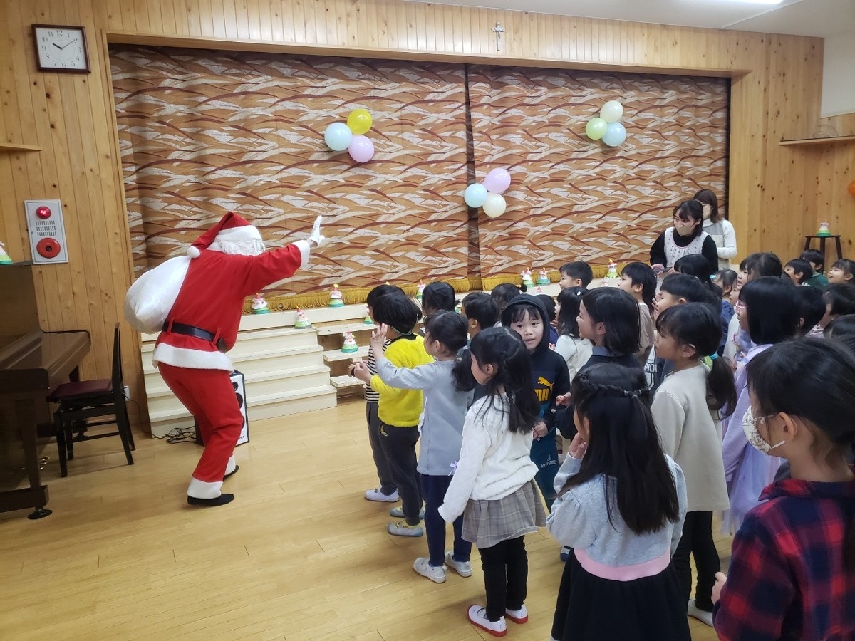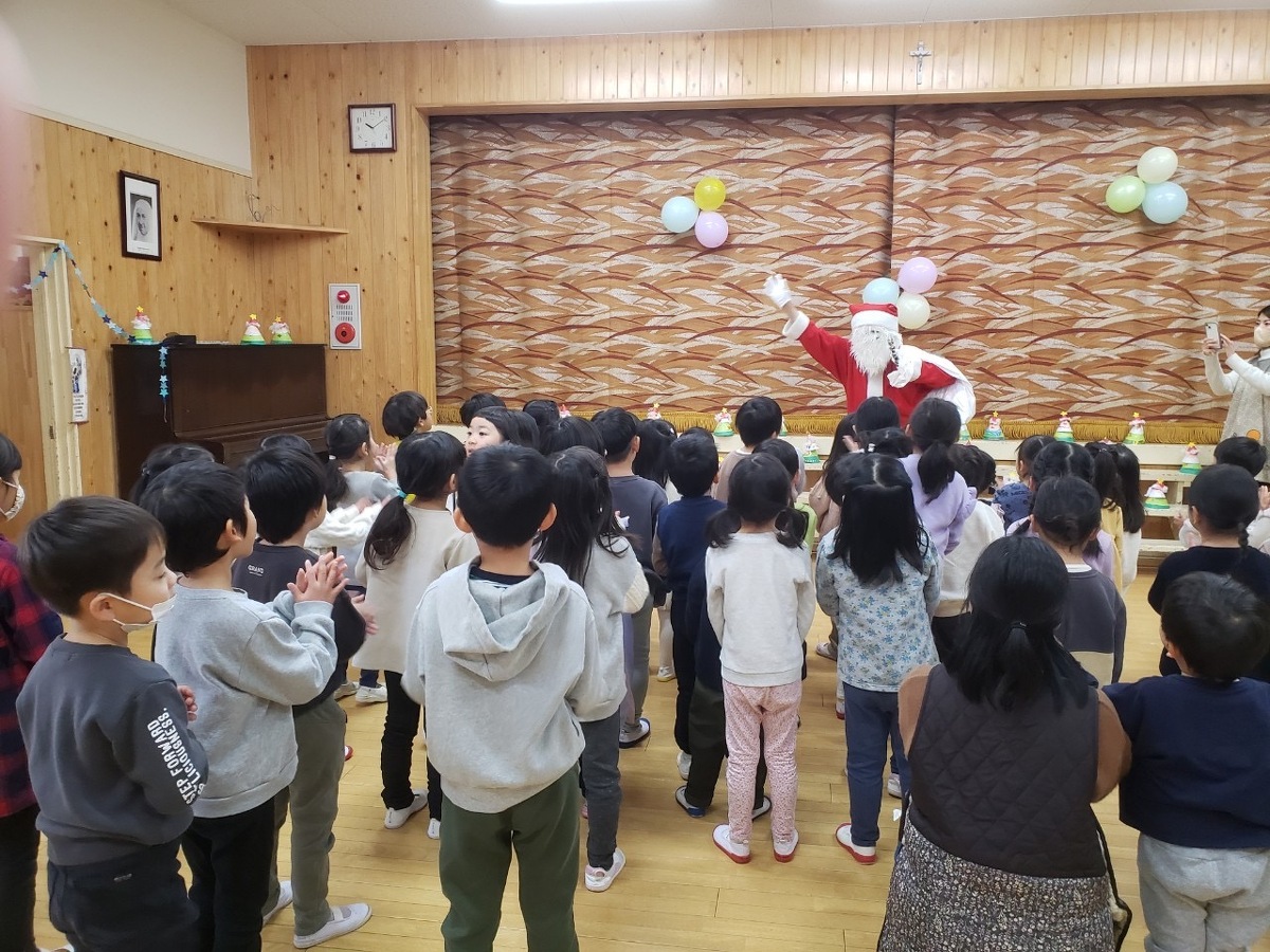今日は、マリア幼稚園にサンタクロース(チャリティーサンタ)がやってきました。預かり保育のみんなでクリスマスの飾りを作ったり飾り付けをして楽しみにしていたクリスマスパーティー!サンタさんの登場に子どもたちも大喜びでした。