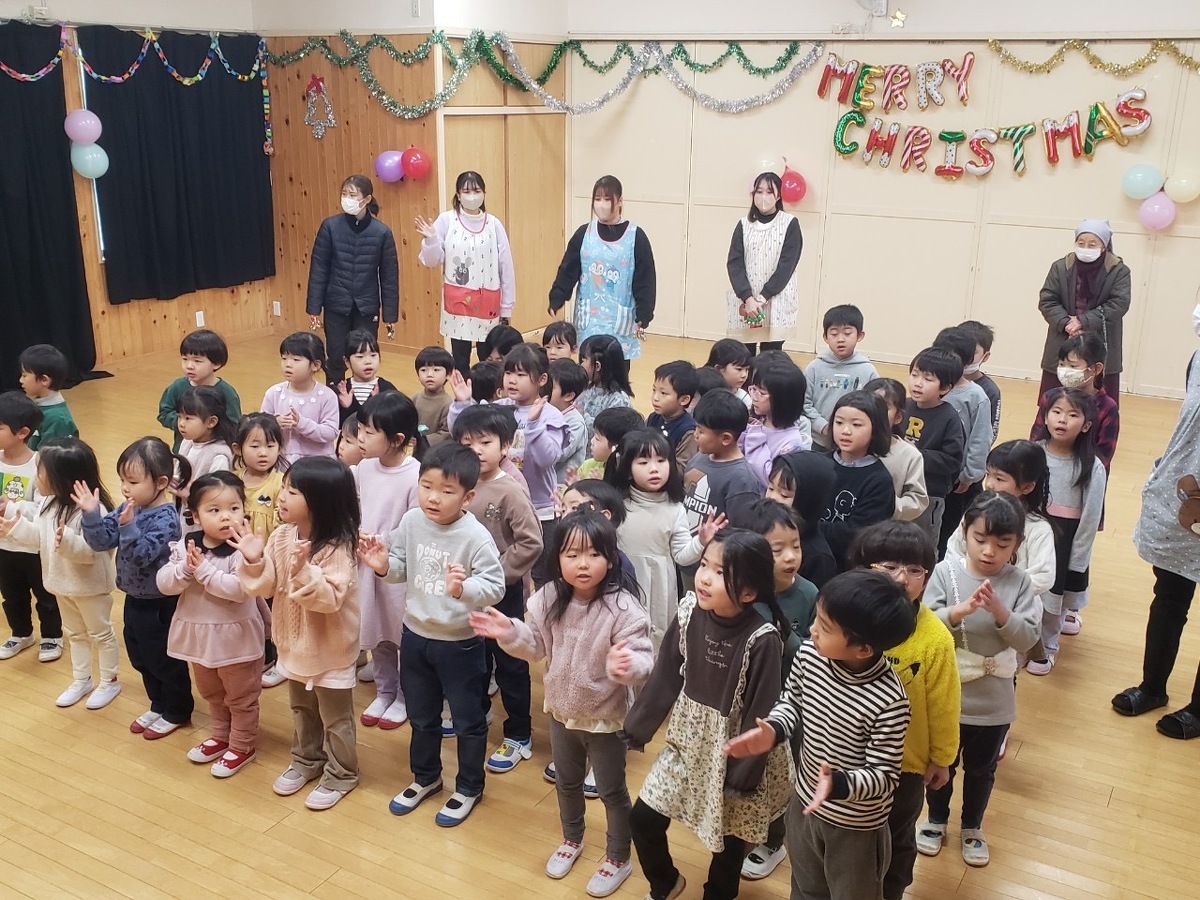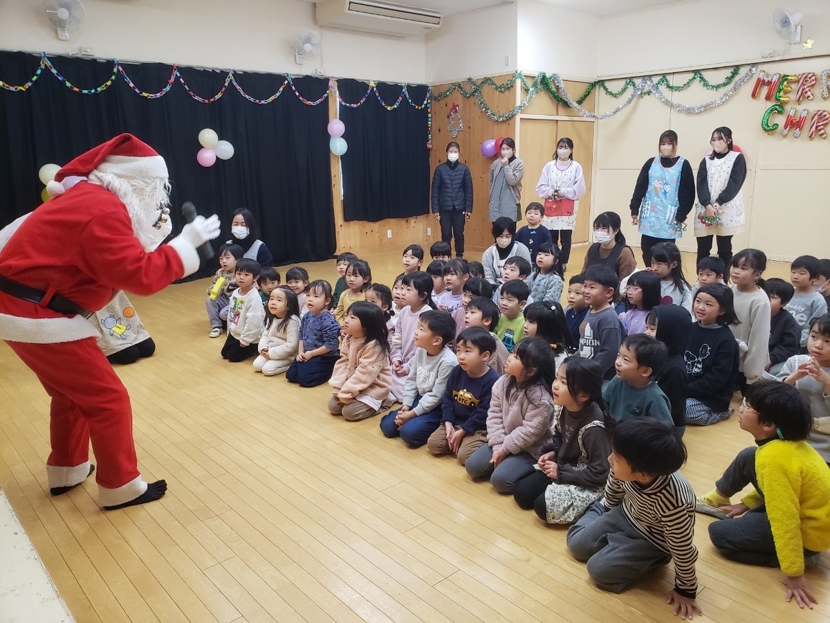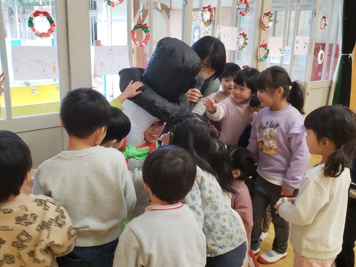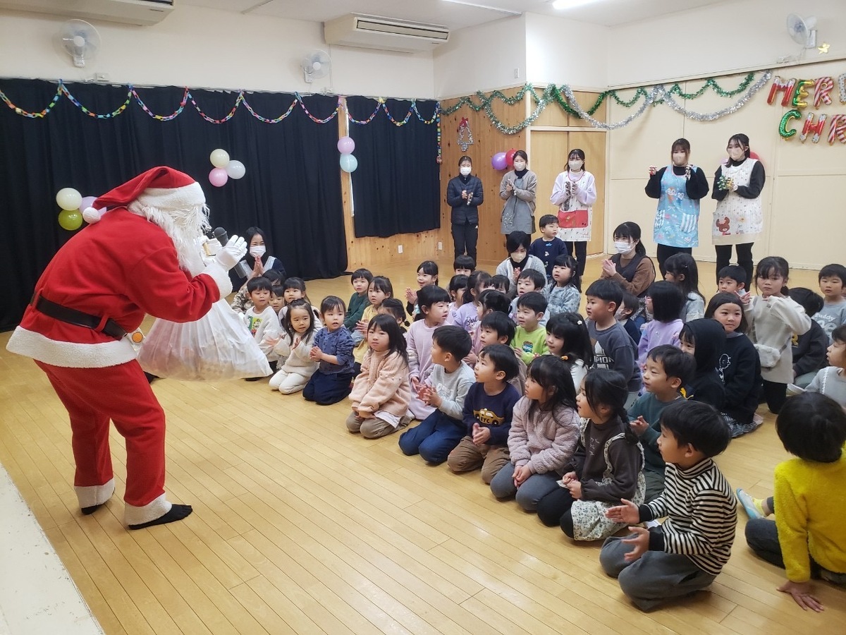 今日は、マリア幼稚園にサンタクロース(チャリティーサンタ)がやってきました。預かり保育のみんなでクリスマスの飾りを作ったり飾り付けをして楽しみにしていたクリスマスパーティー!サンタさんの登場に子どもたちも大喜びでした。