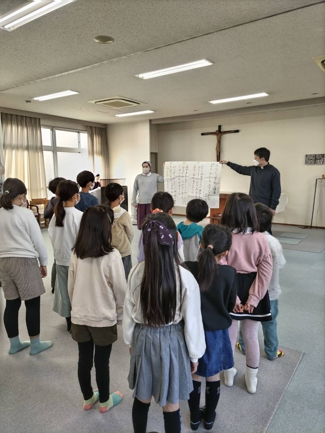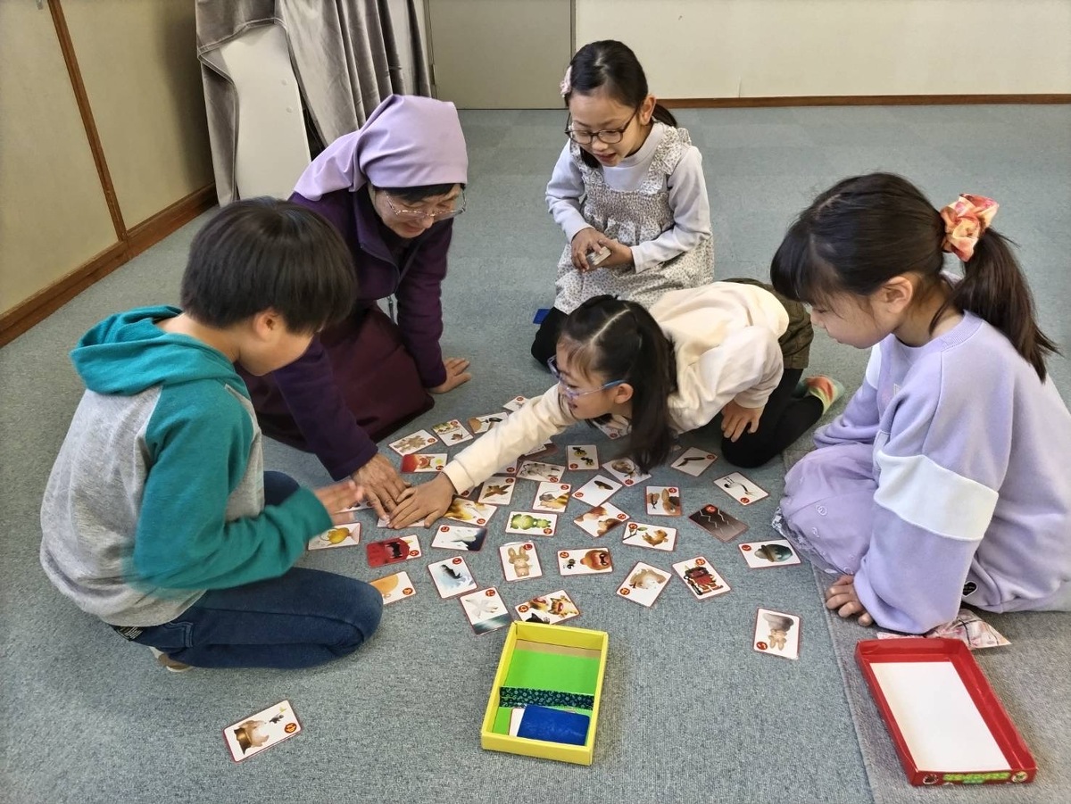 マリアの子ども会がありました。 2024年01月18日(木) 新年初めてのマリアの子ども会がありました。今回は1月ということで、お正月遊びを行いました。みんなでかるたやジャンボかるたを楽しみました!さすが、小学生。みんなとっても速かったです。その後は神父様のお話を聞き、外でみんなで元気いっぱい身体を動かしたり、ドッジボールを楽しみました。 そして、お楽しみのおやつタイム。園長先生が美味しい差し入れを持ってきてくださりました。お友だちも冬休みに旅行に行ったお土産を持ってきてくれみんなで少し豪華なおやつを楽しみました。 今年もたくさん遊びましょうね!