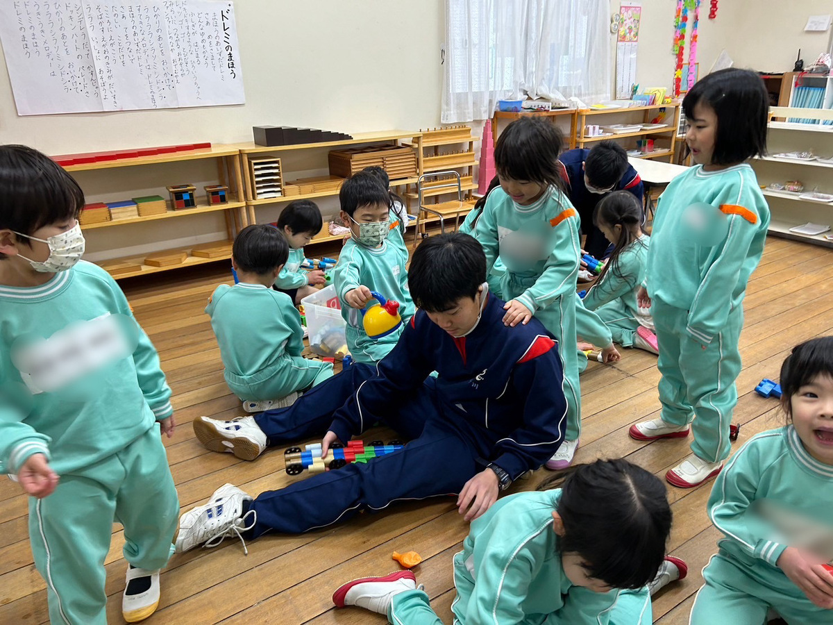 協和中学校の学生さんが12名職場体験に来られました。子どもたちと一緒に元気いっぱい遊んだり、給食を食べたり、一緒に体操やドッジボールをしたり楽しく過ごしました。毎日「今日もお兄さんたちきてるかな?」と嬉しそうに登園する子どもたちの姿も見られました。お兄さん、お姉さんが大好きになった子どもたちです。