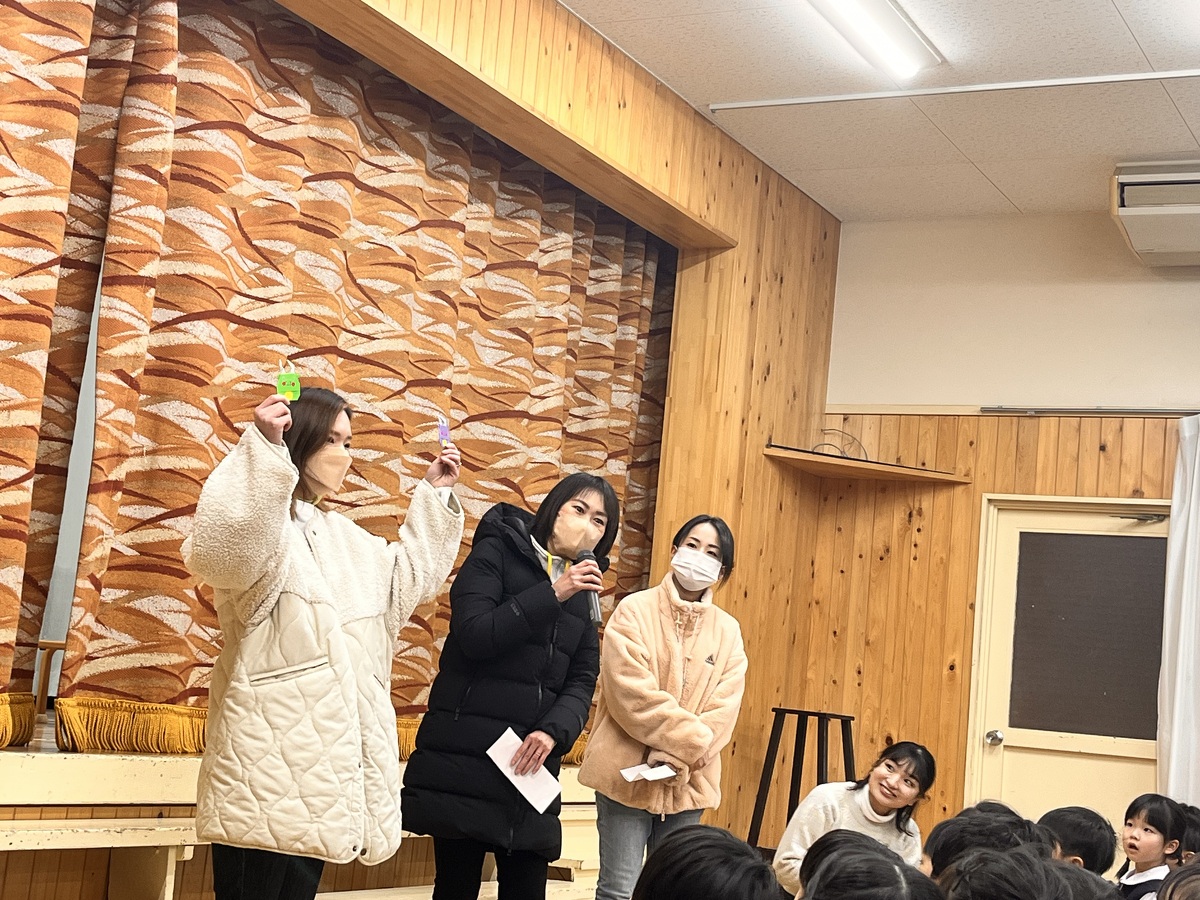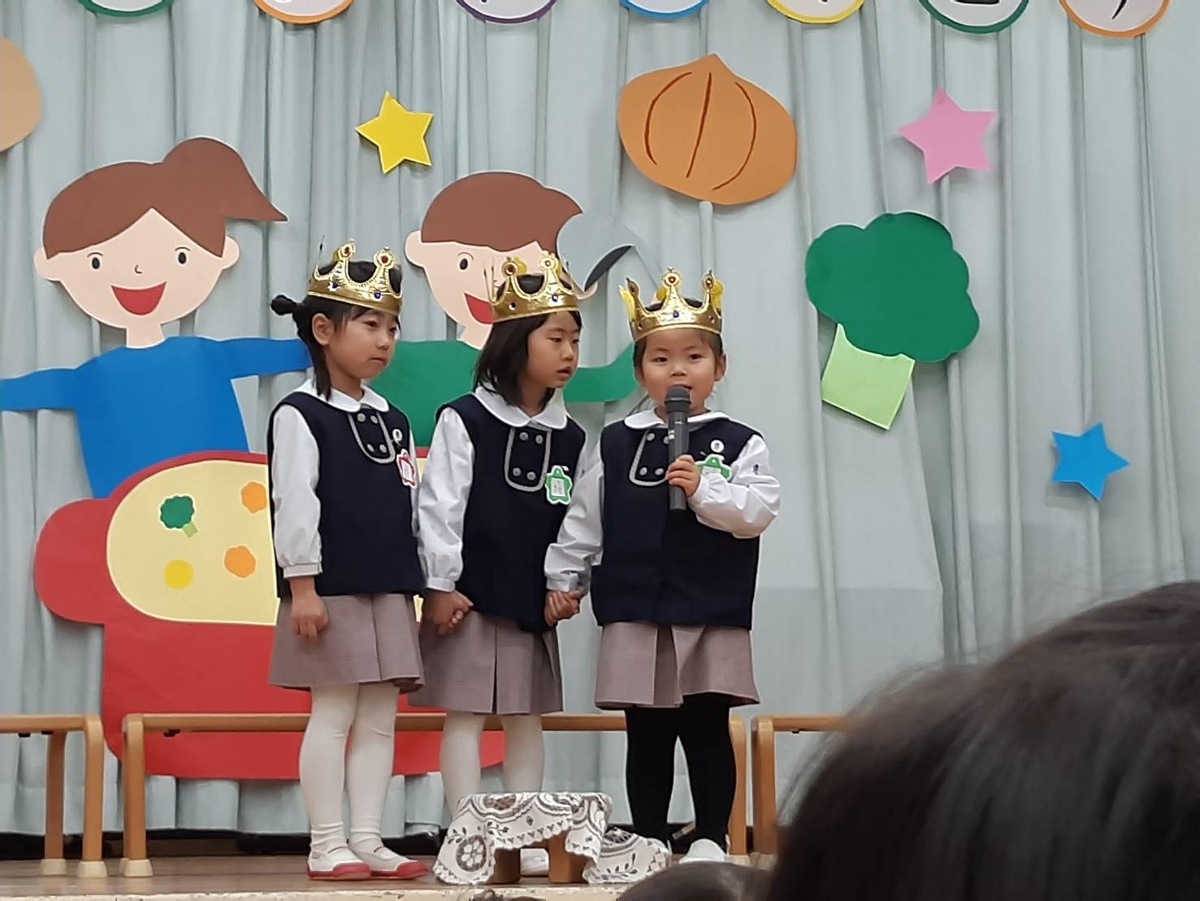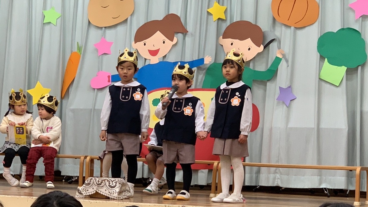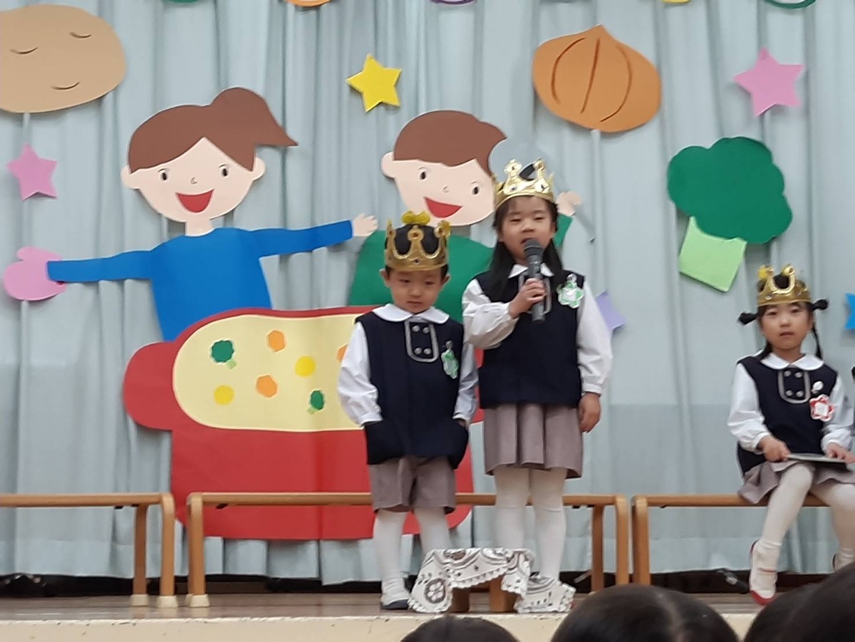 今月は、ステージにシチューを食べる男の子と女の子の飾りがありました。寒い冬にあったかいシチュー、野菜も美味しそうでしたね!