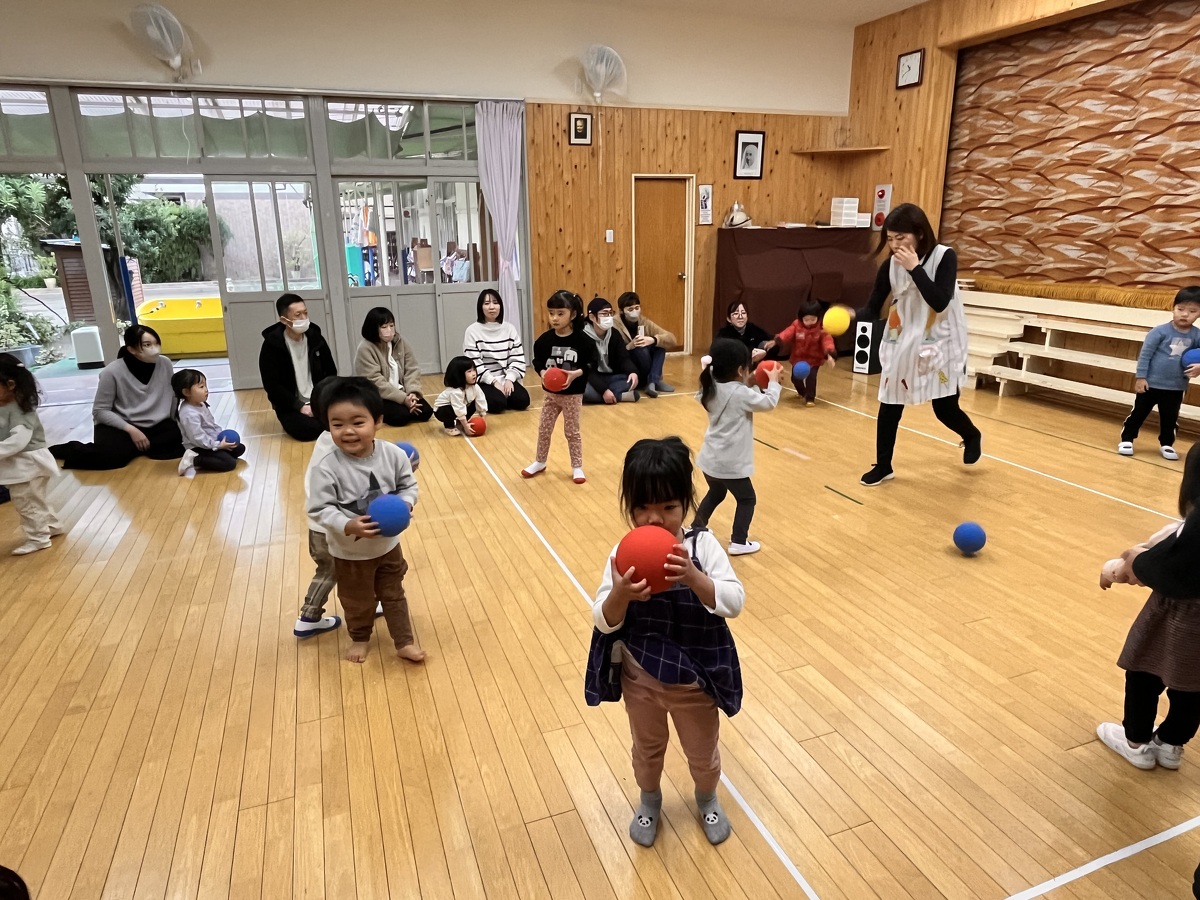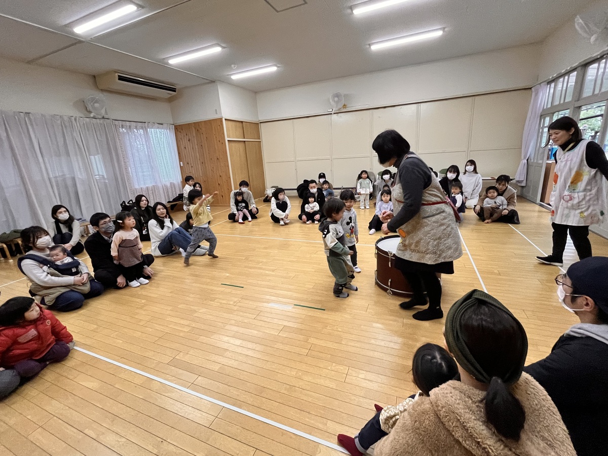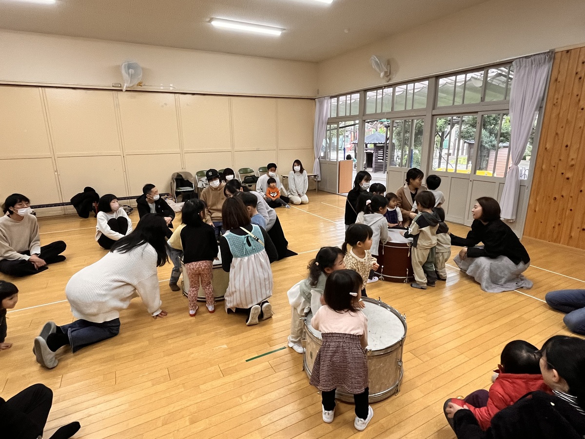導入保育2回目を行いました。 2024年02月26日(月) 導入保育2回目を行いました。今回は、まず始めにみんなでリトミックをしました。スカーフを持ったり飛ばしてみたり遊んだ後は、初めて見る大太鼓を触ってみたり、音を鳴らしてみたり、楽しみました。みんなも太鼓を作って持って帰ろうということで、親子で協力して素敵な太鼓を作り、みんなで演奏して遊びました。 その後は、体操でボール遊びをしました。ボールを使って体をたくさん動かして楽しく過ごしました。 また幼稚園で一緒に楽しく遊びましょうね!