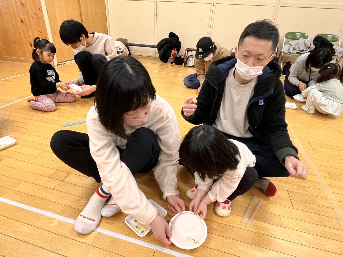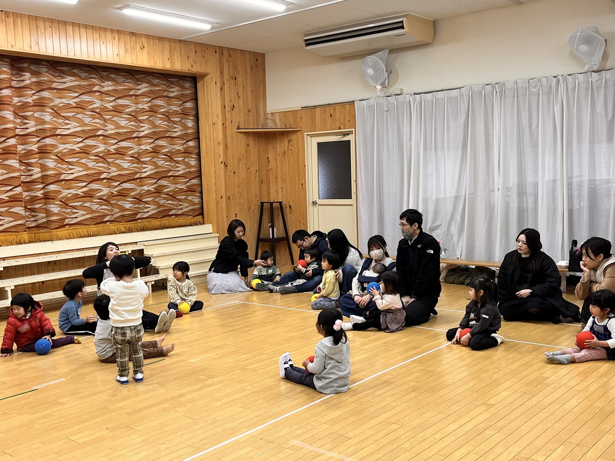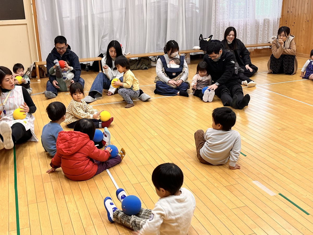 導入保育2回目を行いました。 2024年02月26日(月) 導入保育2回目を行いました。今回は、まず始めにみんなでリトミックをしました。スカーフを持ったり飛ばしてみたり遊んだ後は、初めて見る大太鼓を触ってみたり、音を鳴らしてみたり、楽しみました。みんなも太鼓を作って持って帰ろうということで、親子で協力して素敵な太鼓を作り、みんなで演奏して遊びました。 その後は、体操でボール遊びをしました。ボールを使って体をたくさん動かして楽しく過ごしました。 また幼稚園で一緒に楽しく遊びましょうね!