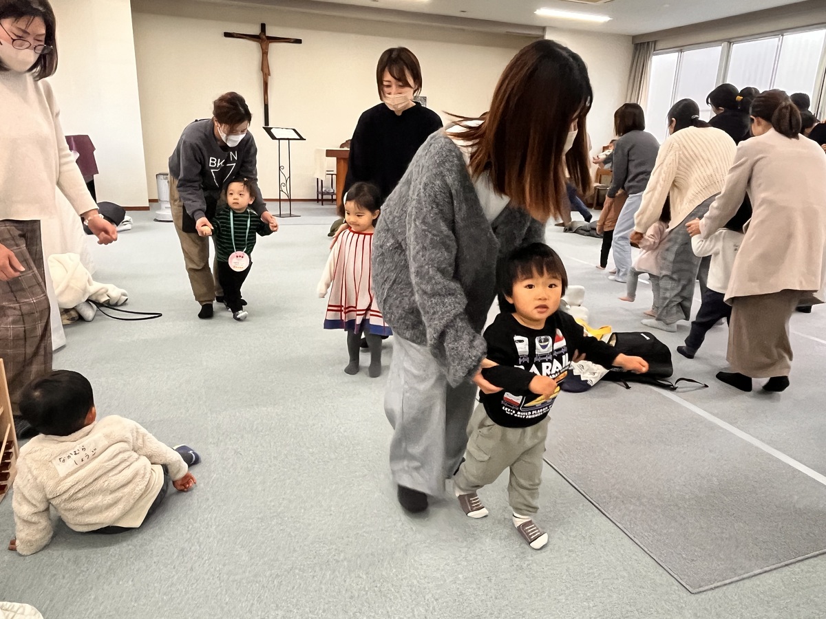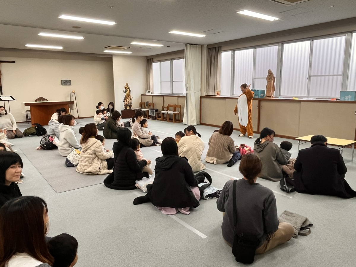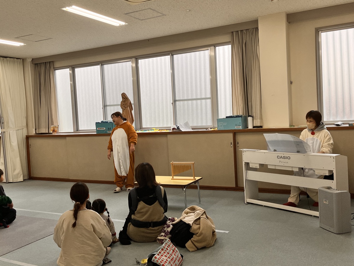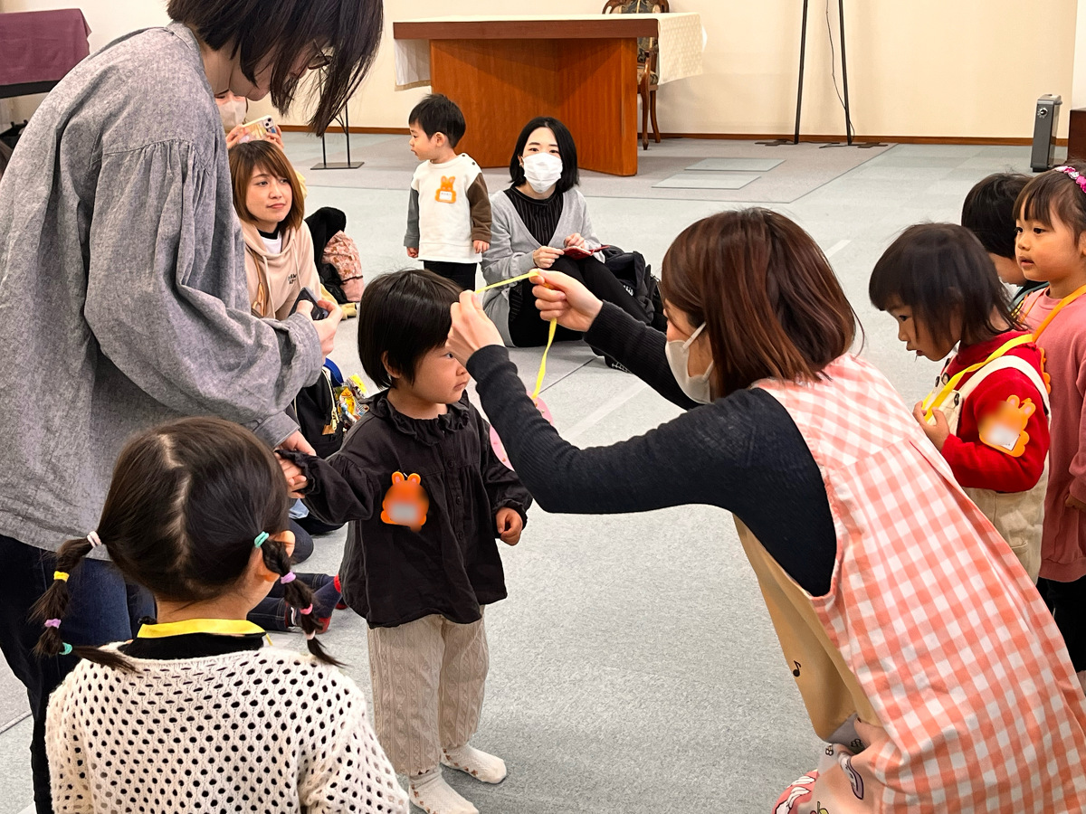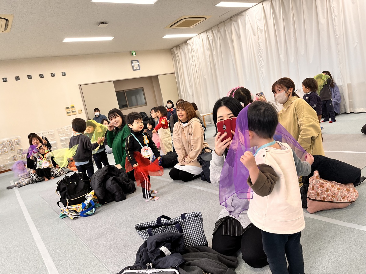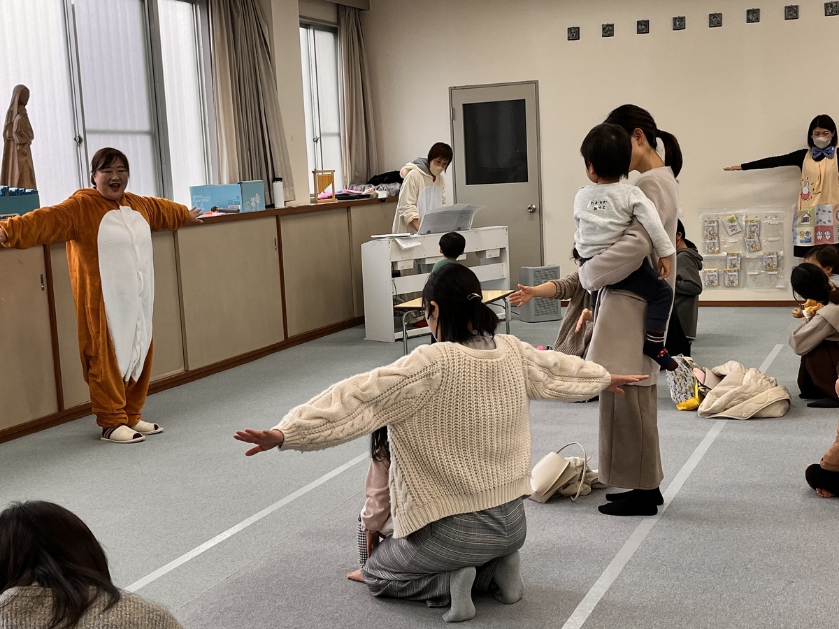 つぼみクラス、プチつぼみクラスの修了式(お楽しみ会)を行いました。まず始めに1月、2月、3月生まれのお友だちのお祝いをしました。みんなでハッピーバースデーの歌を歌って子どもたちも嬉しそうでした。その後は、お楽しみ!ゆうこお姉さんとゆりこお姉さんが遊びに来てくれ、みんなで身体を動かしながら親子でのふれあい遊びを楽しんだり、スカーフて遊んだり、素敵なピアノに合わせての歌はとても感動的でした。楽しい時間をありがとうございました。