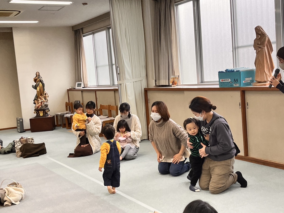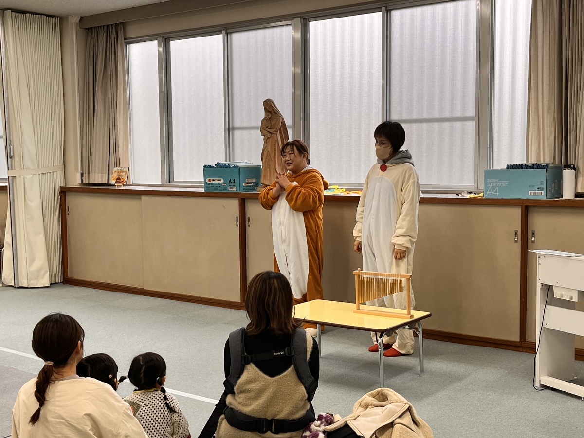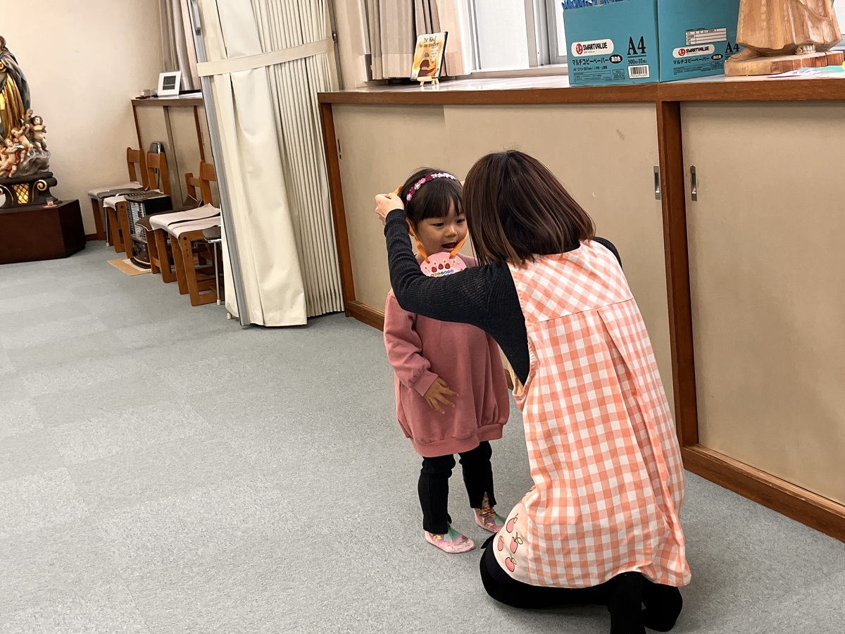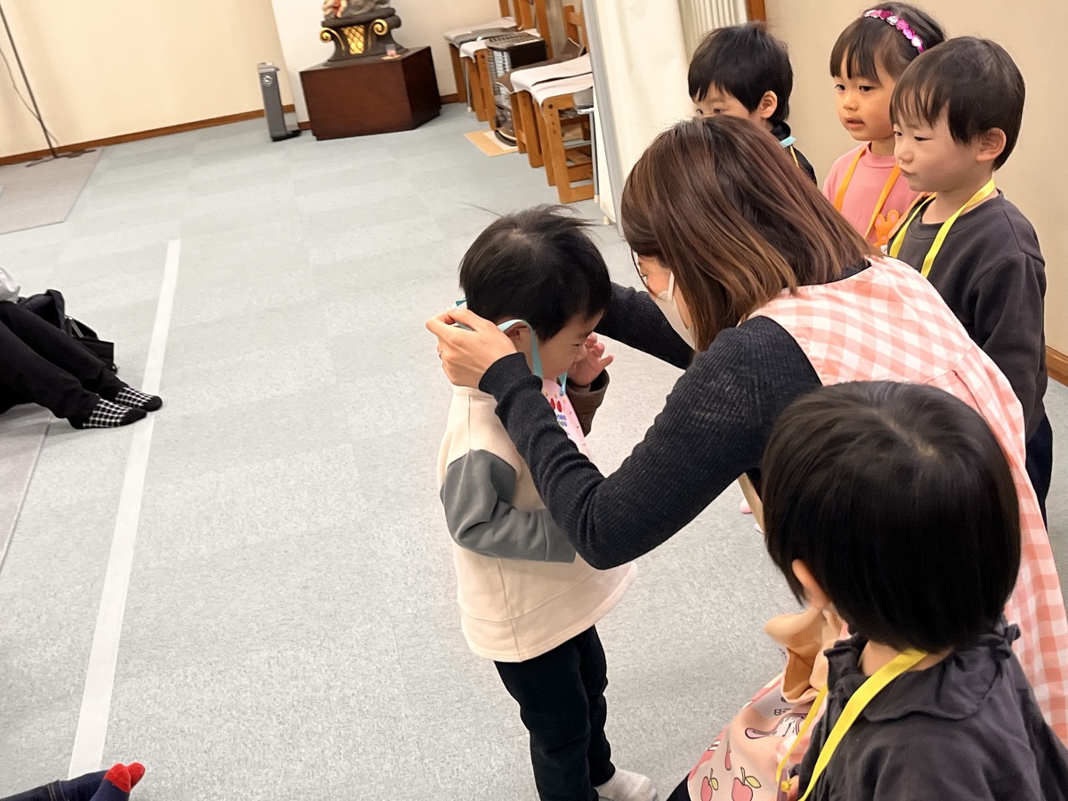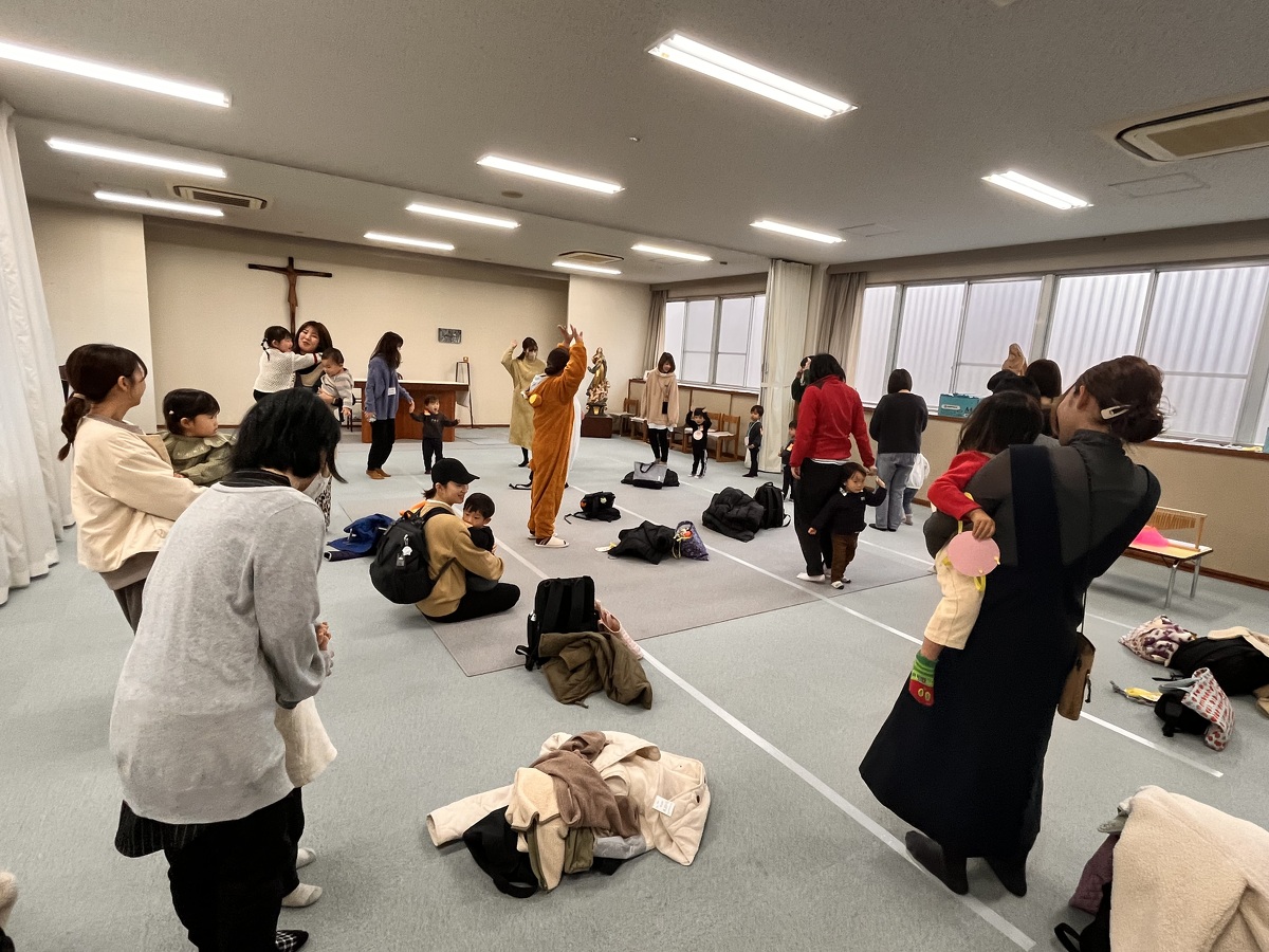 つぼみクラス、プチつぼみクラスの修了式(お楽しみ会)を行いました。まず始めに1月、2月、3月生まれのお友だちのお祝いをしました。みんなでハッピーバースデーの歌を歌って子どもたちも嬉しそうでした。その後は、お楽しみ!ゆうこお姉さんとゆりこお姉さんが遊びに来てくれ、みんなで身体を動かしながら親子でのふれあい遊びを楽しんだり、スカーフて遊んだり、素敵なピアノに合わせての歌はとても感動的でした。楽しい時間をありがとうございました。