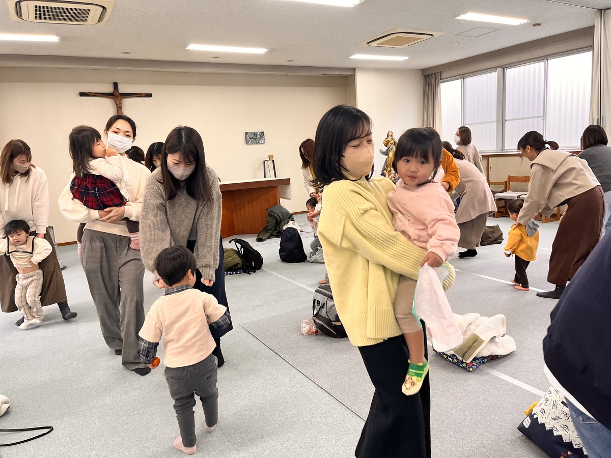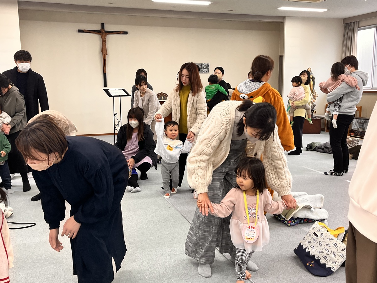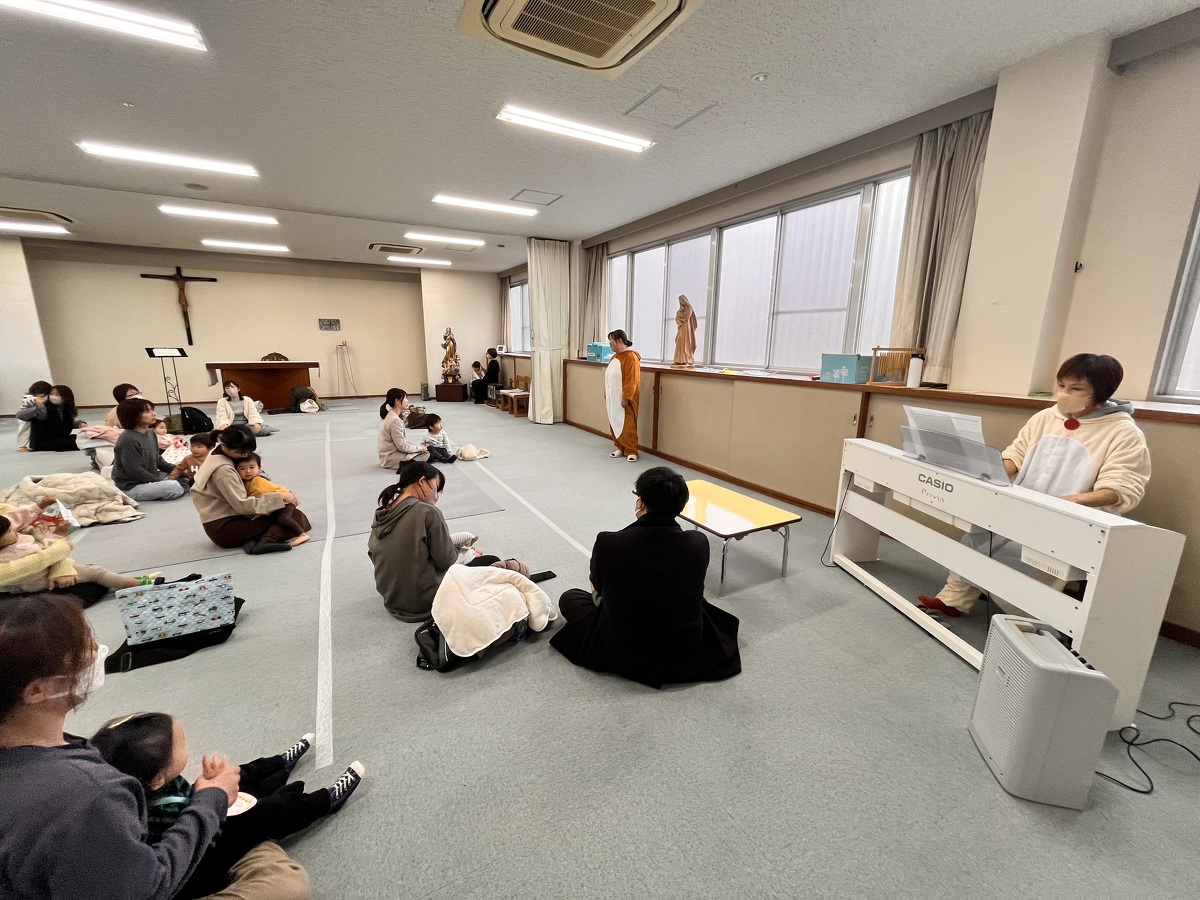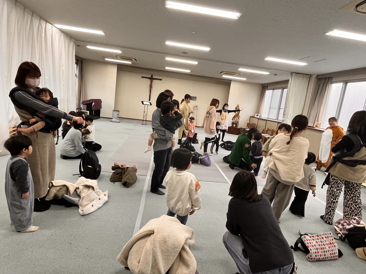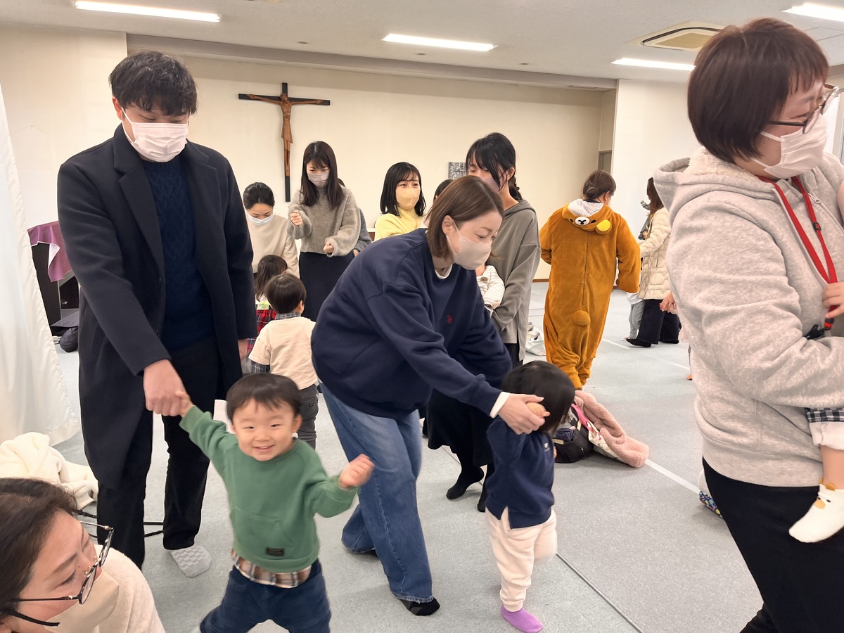 つぼみクラス、プチつぼみクラスの修了式(お楽しみ会)を行いました。まず始めに1月、2月、3月生まれのお友だちのお祝いをしました。みんなでハッピーバースデーの歌を歌って子どもたちも嬉しそうでした。その後は、お楽しみ!ゆうこお姉さんとゆりこお姉さんが遊びに来てくれ、みんなで身体を動かしながら親子でのふれあい遊びを楽しんだり、スカーフて遊んだり、素敵なピアノに合わせての歌はとても感動的でした。楽しい時間をありがとうございました。