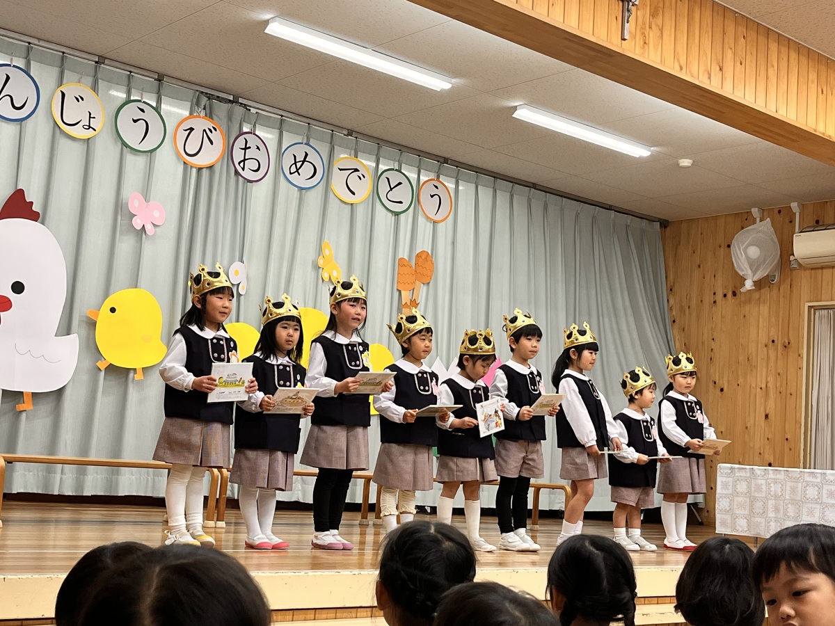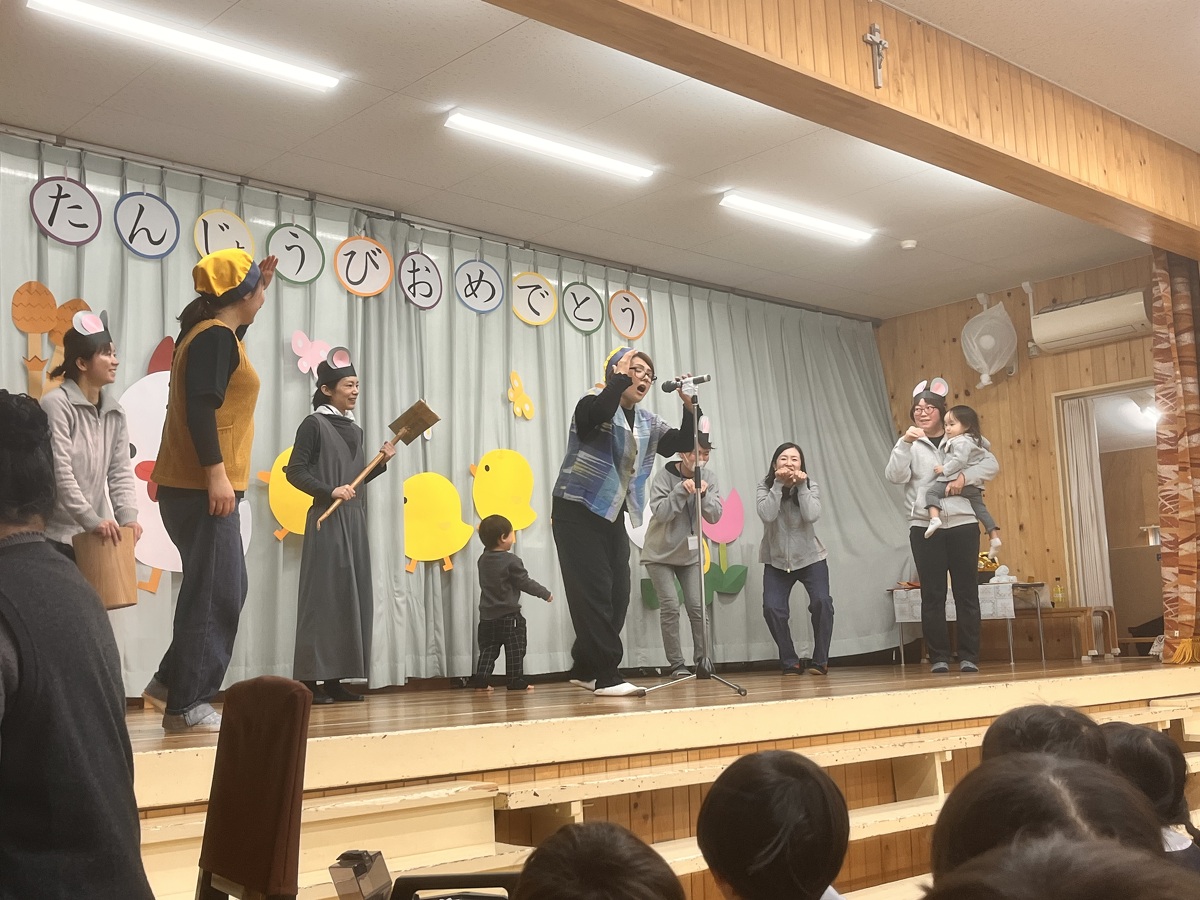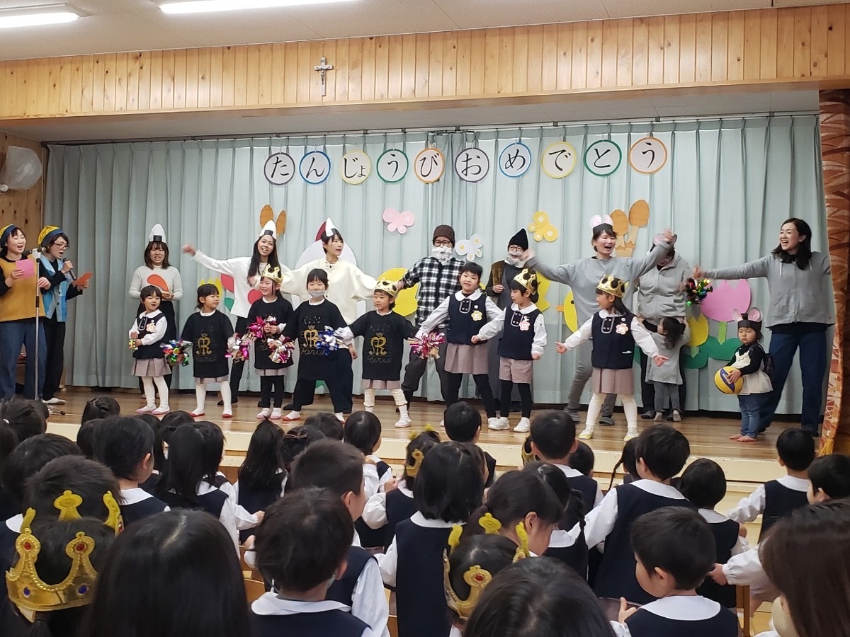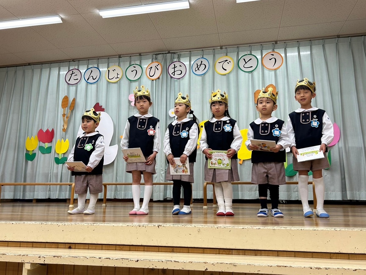 3月生まれの誕生日会がありました。ステージの上で発表するのは緊張するけれど、みんな一生懸命頑張って、誕生日絵本はとても嬉しそうでした。