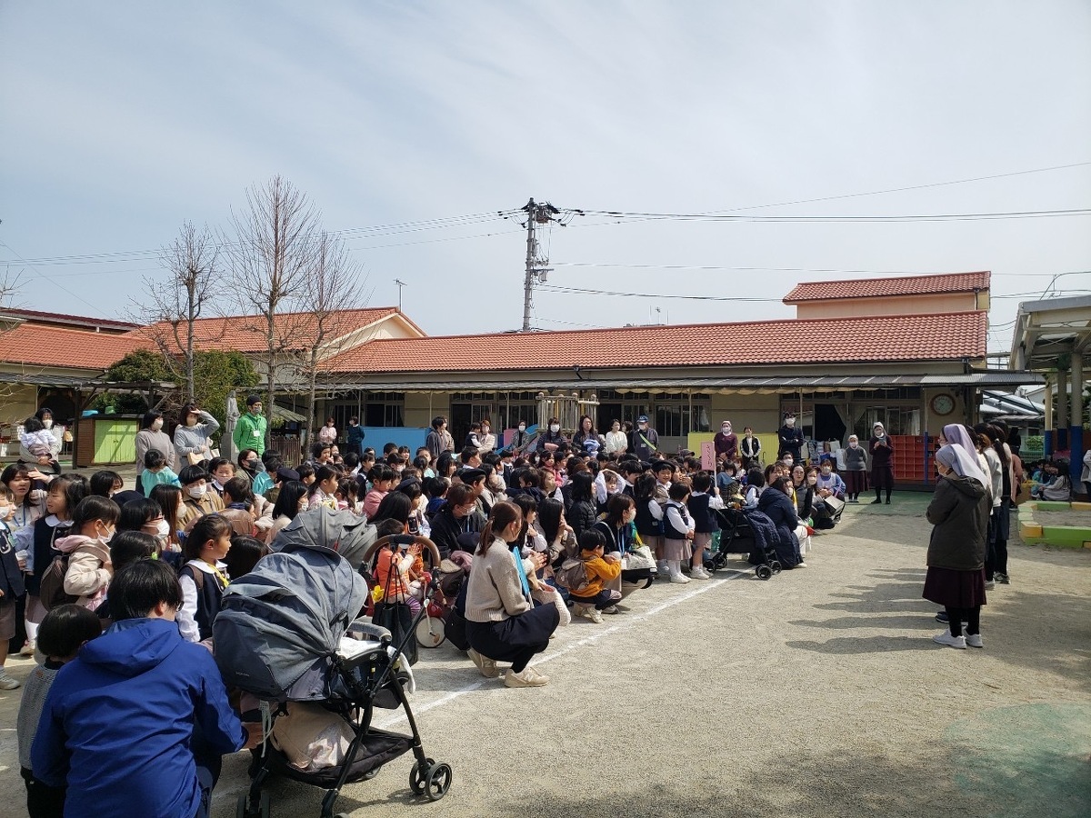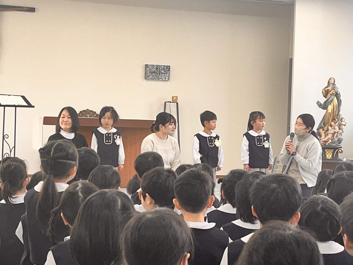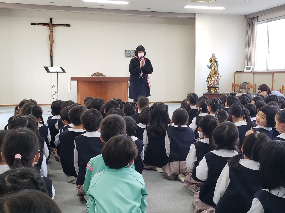 3学期の終業式、離任式を行いました。 2024年03月26日(火) 3学期の終業式、離任式を行いました。1年間、お友だちや先生とたくさんの思い出ができましたね! マリア幼稚園を離れることになったお友だち、先生もそれぞれの場所でいつも神様が見守ってくださるようお祈りしています。 また4月にひとつ大きくなったみなさんに会えるのを楽しみにしています。保護者の皆様、1年間本当にありがとうございました。