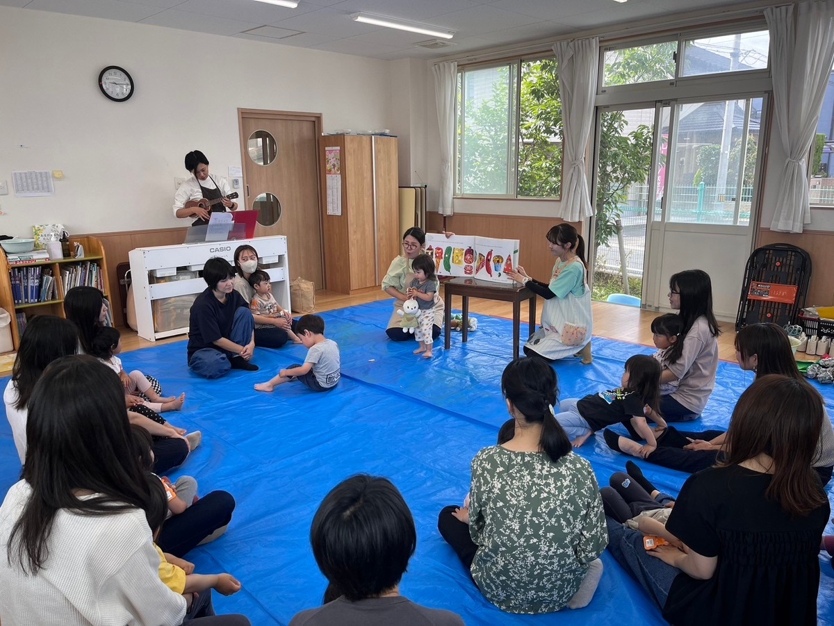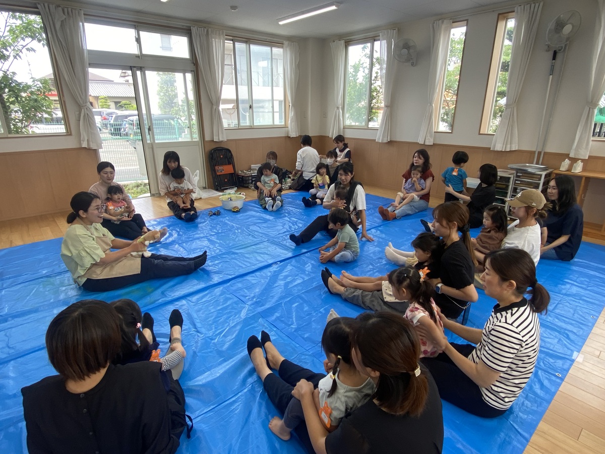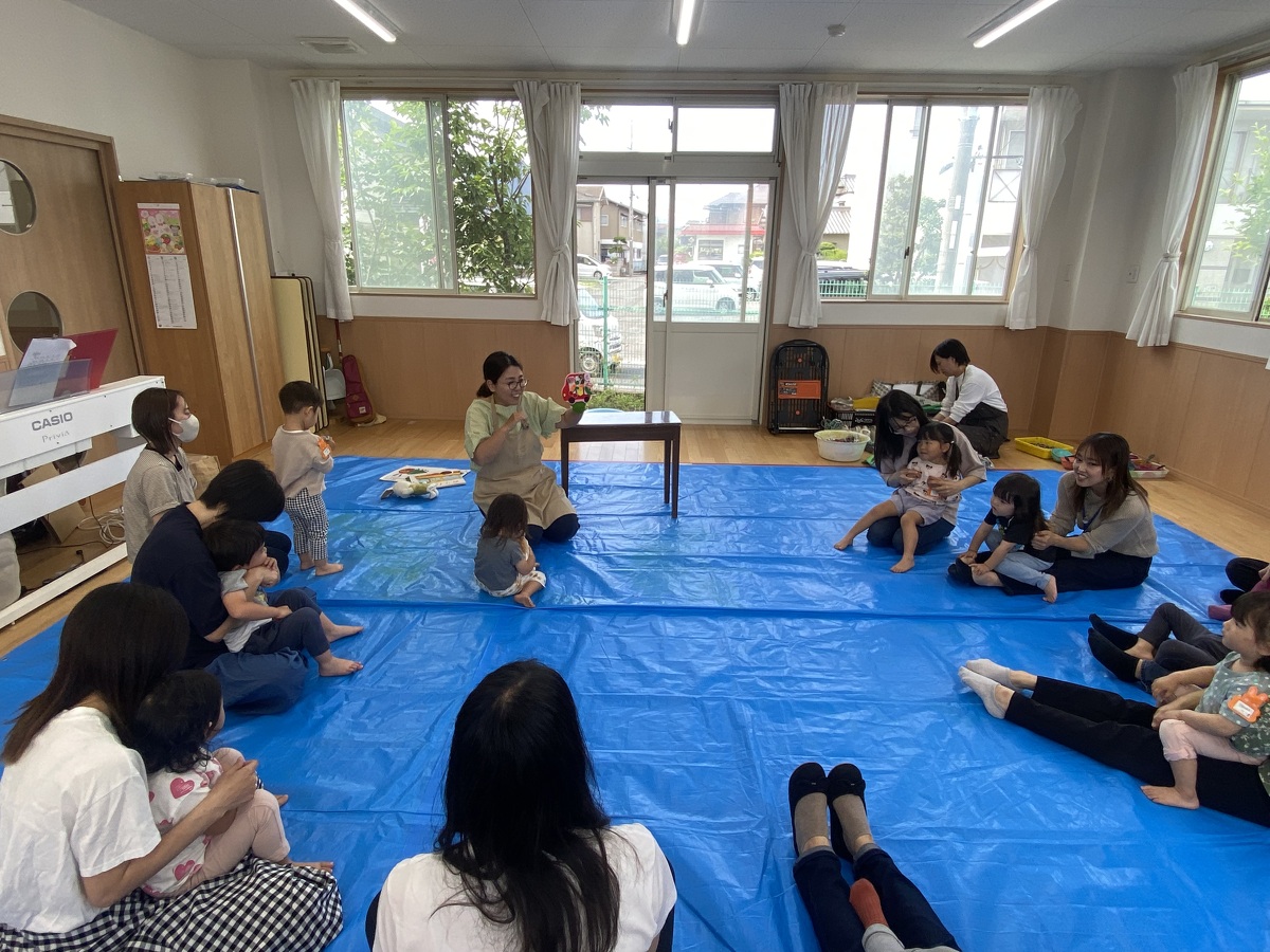 初めに、宮地先生の童歌や手遊び歌で楽しく遊びました♪そして、読み聞かせではみんな大好き「はらぺこあおむし」を読んでくださいました!