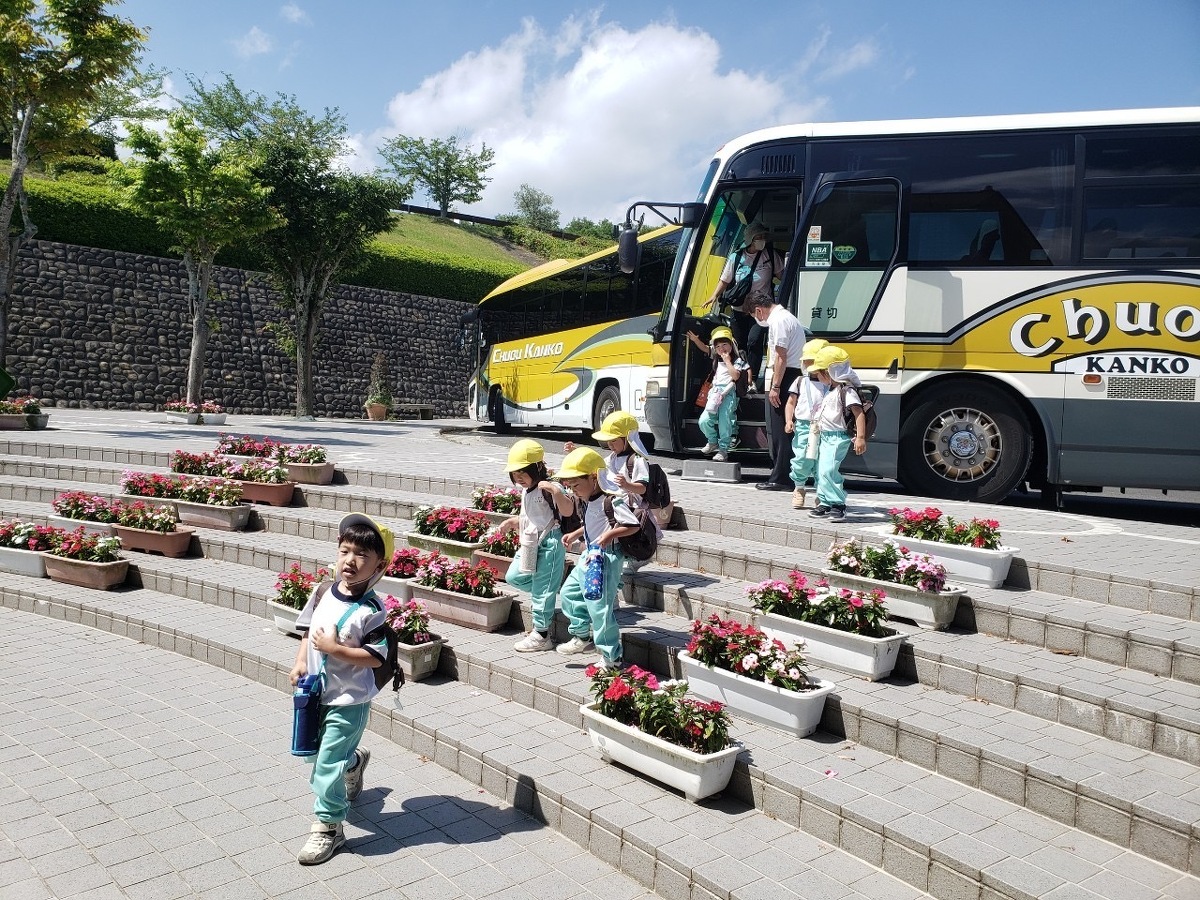 Bグループ(4歳児)が園外保育でさぬきこどもの国にお出掛けしました。Bグループになって初めての園外保育に、子どもたちはワクワク!良いお天気の中、バスに乗って出発しました。