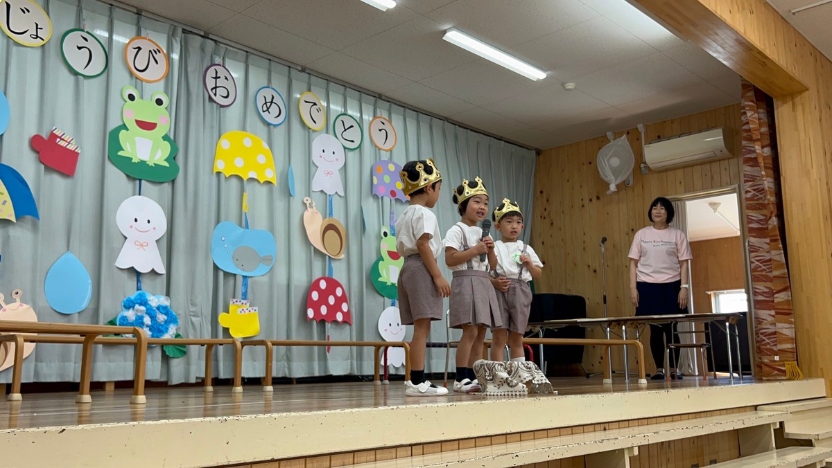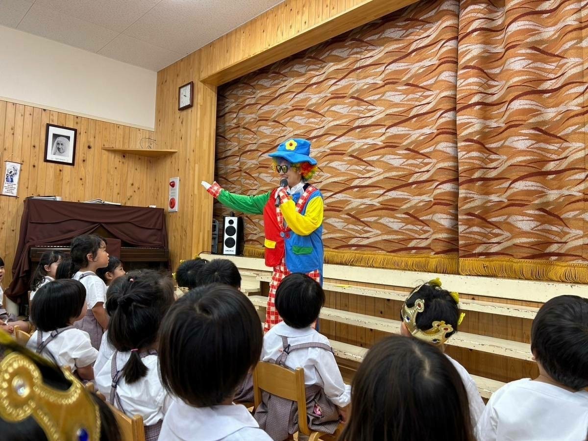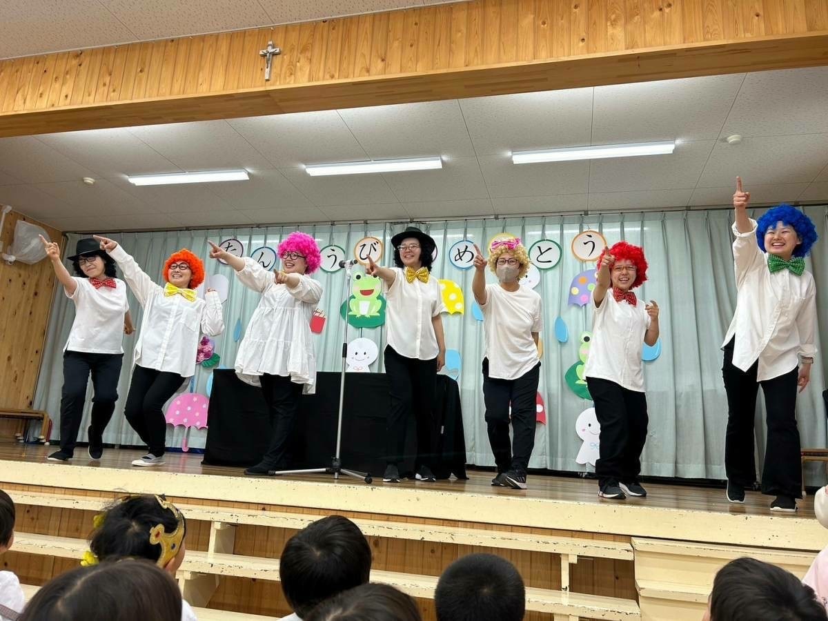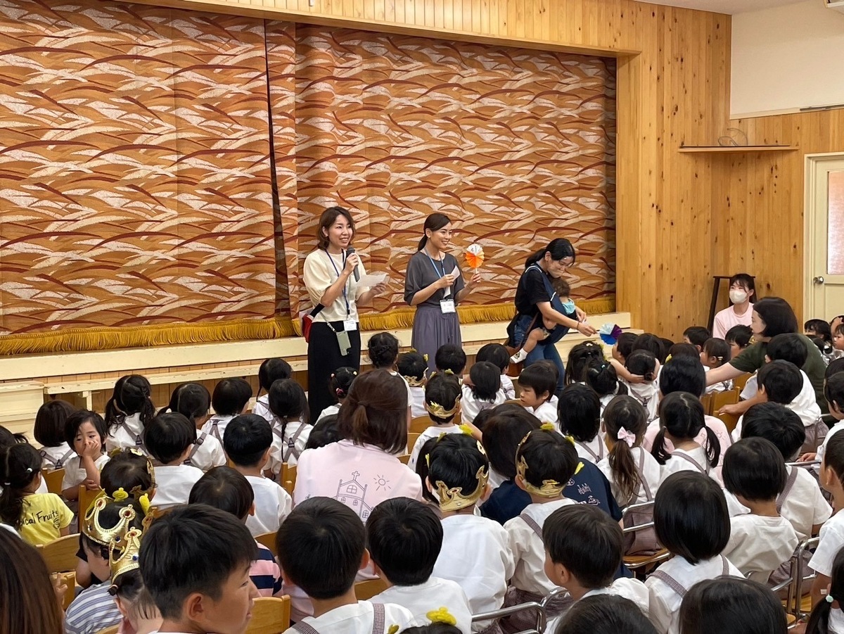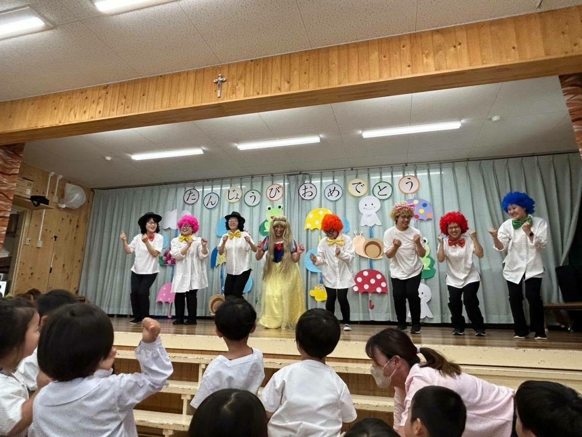 6月生まれの誕生日会がありました。 2024年06月21日(金) 6月生まれの誕生日会がありました。今月はたくさんのお友だちがいましたが、みんなそれぞれ頑張って発表することができました。 今月の折り紙は、うちわをいただきました。暑くなってきたこの時期にぴったりですね!お誕生日係の保護者の皆様、ありがとうございました。 お楽しみは、マジックショーでした!物が浮いたり、ティッシュが本物のうどんになったり、白雪姫が飛び出てきたり・・・!たくさん不思議なことが起こってびっくりでしたね!最後には、みんな大好きあの曲を一緒に踊って楽しかったですね♪