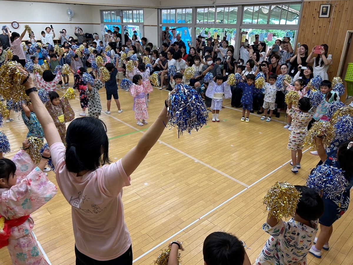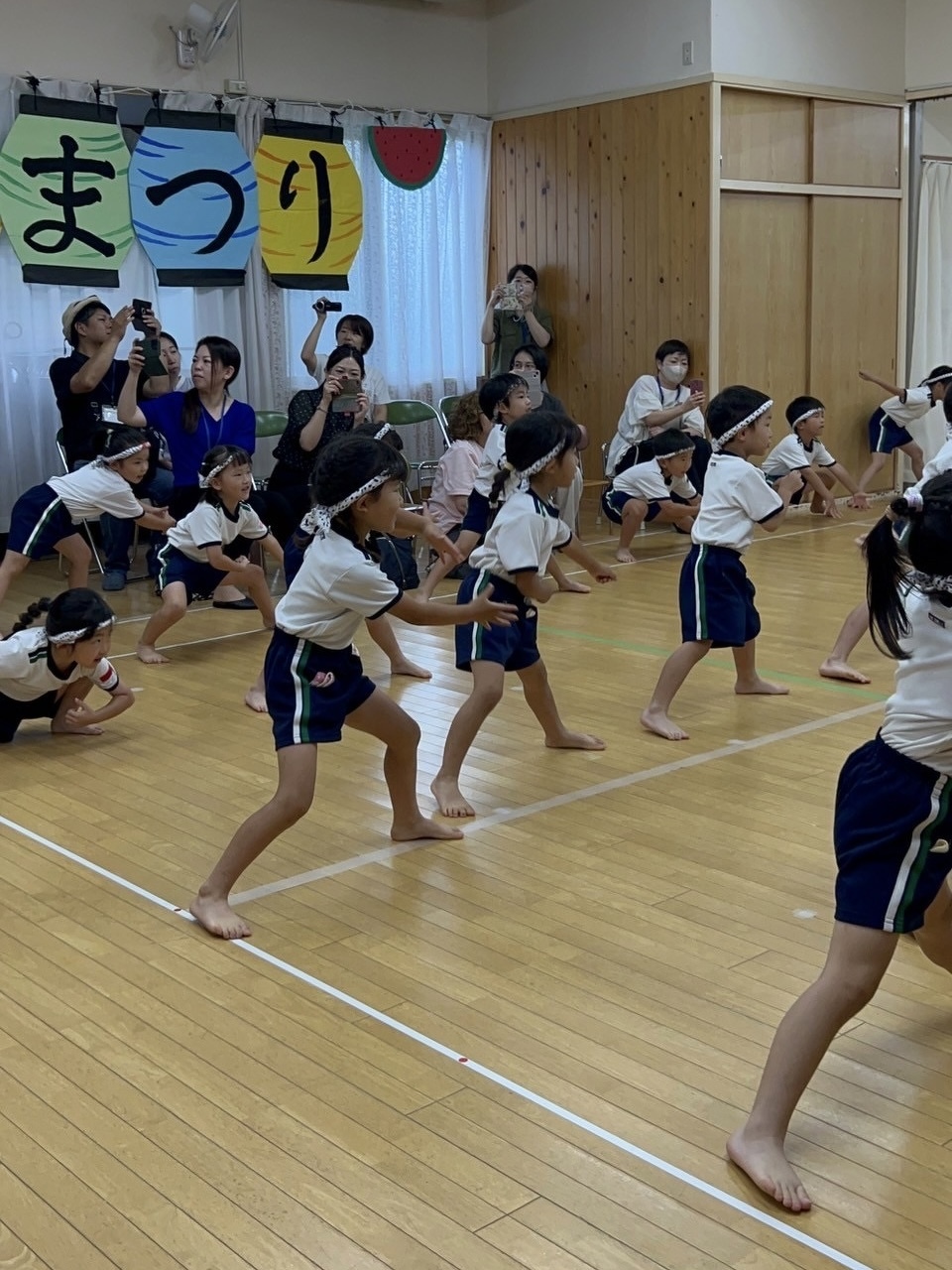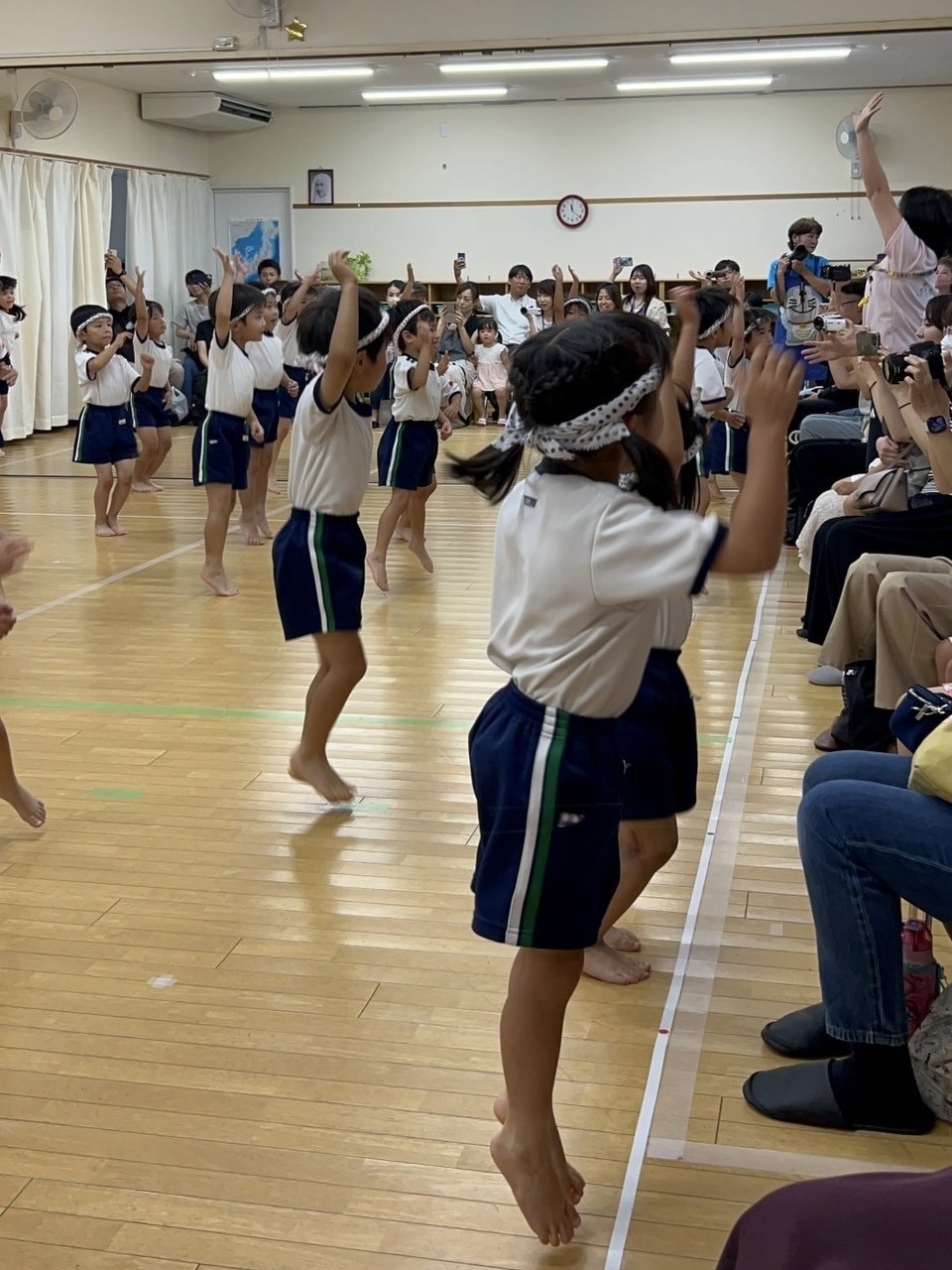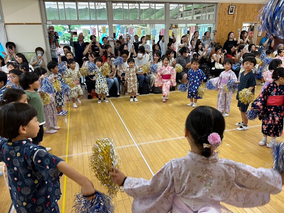 夏まつりを行いました。 2024年07月12日(金) 夏まつりを行いました。子どもたちは、マツケンサンバや盆踊り、親子ダンス、ソーラン節など今まで練習してきた演技を、おうちの人に笑顔いっぱいで披露することができました! 演技の後は、お楽しみの「ぷかぷかすくい」♪自分ですくった景品とポン菓子のお土産をもらって、楽しい時間を過ごしました! 保護者の皆様、暑い中ご参観いただき、ありがとうございました。