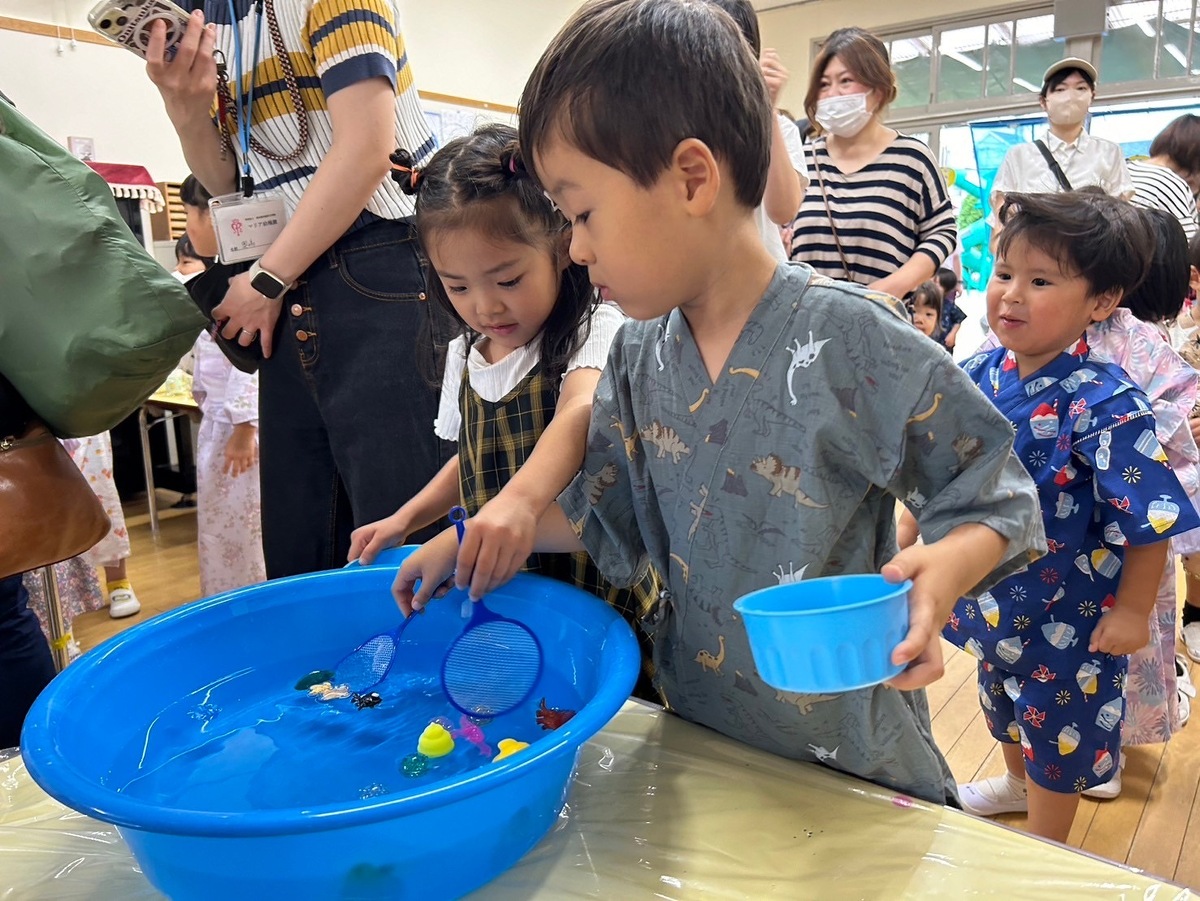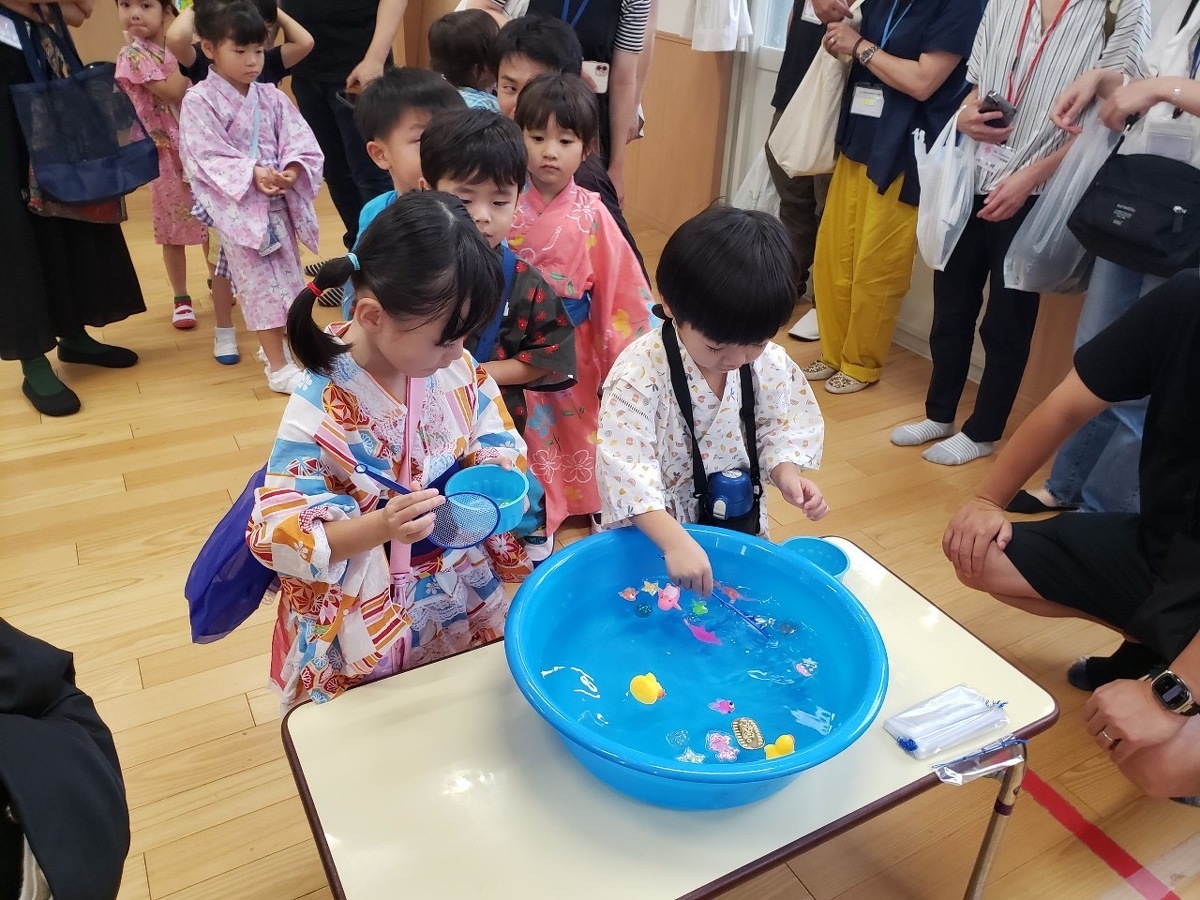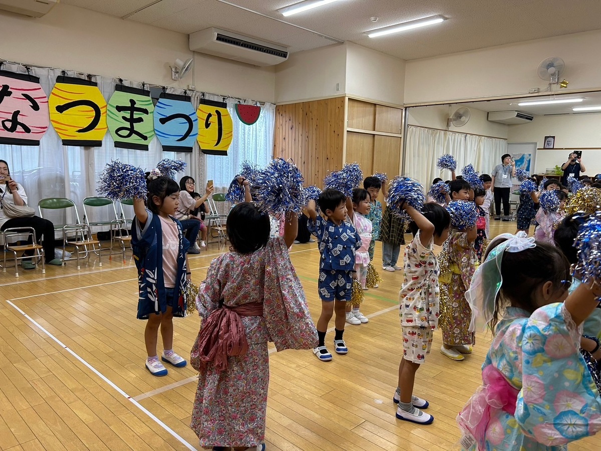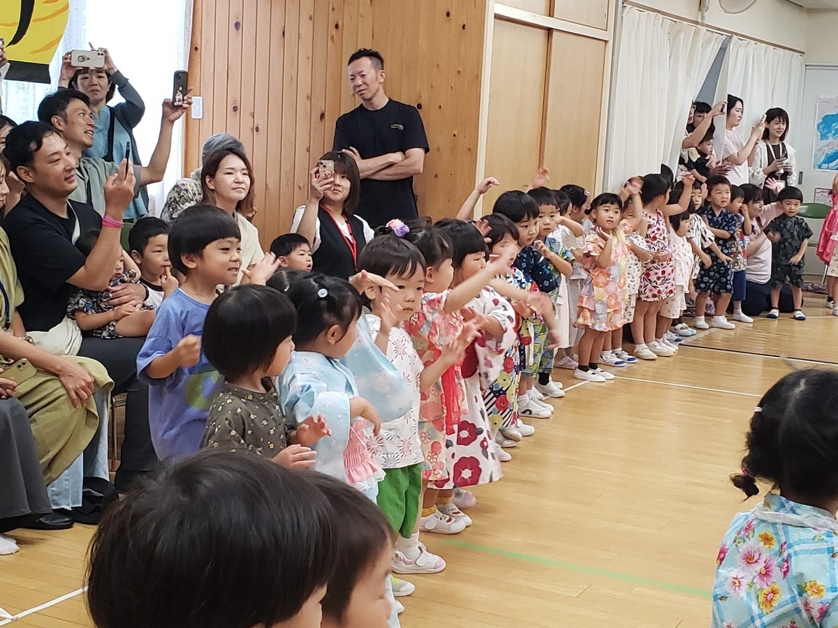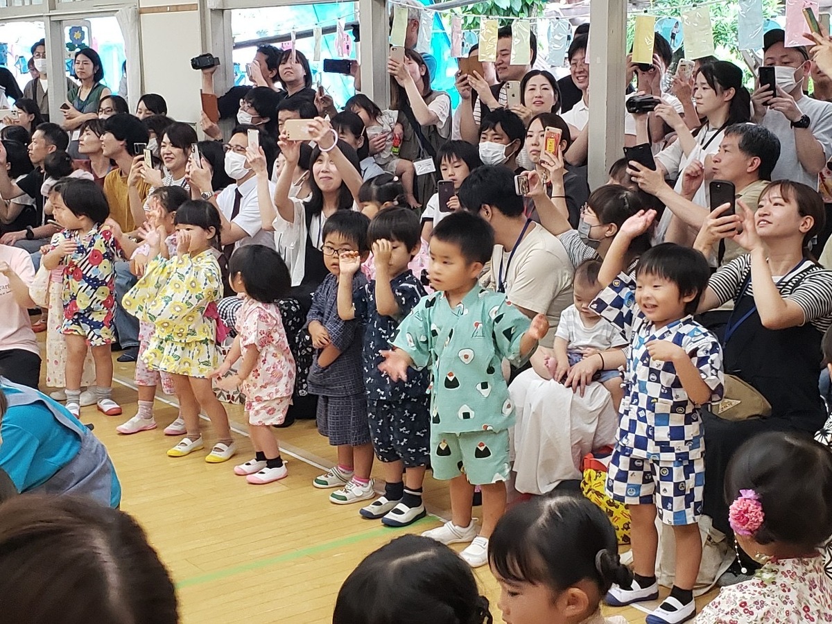 夏まつりを行いました。 2024年07月12日(金) 夏まつりを行いました。子どもたちは、マツケンサンバや盆踊り、親子ダンス、ソーラン節など今まで練習してきた演技を、おうちの人に笑顔いっぱいで披露することができました! 演技の後は、お楽しみの「ぷかぷかすくい」♪自分ですくった景品とポン菓子のお土産をもらって、楽しい時間を過ごしました! 保護者の皆様、暑い中ご参観いただき、ありがとうございました。