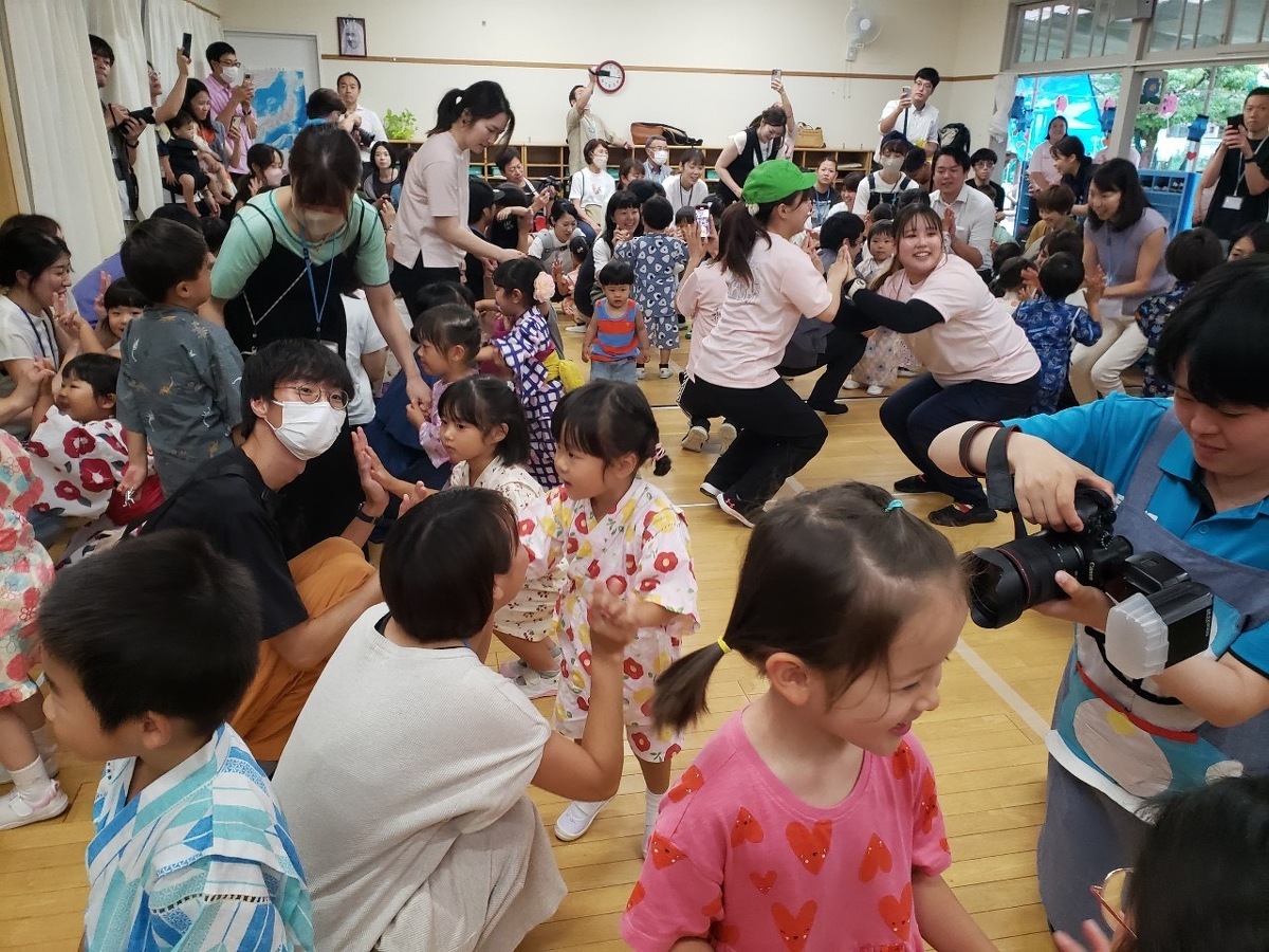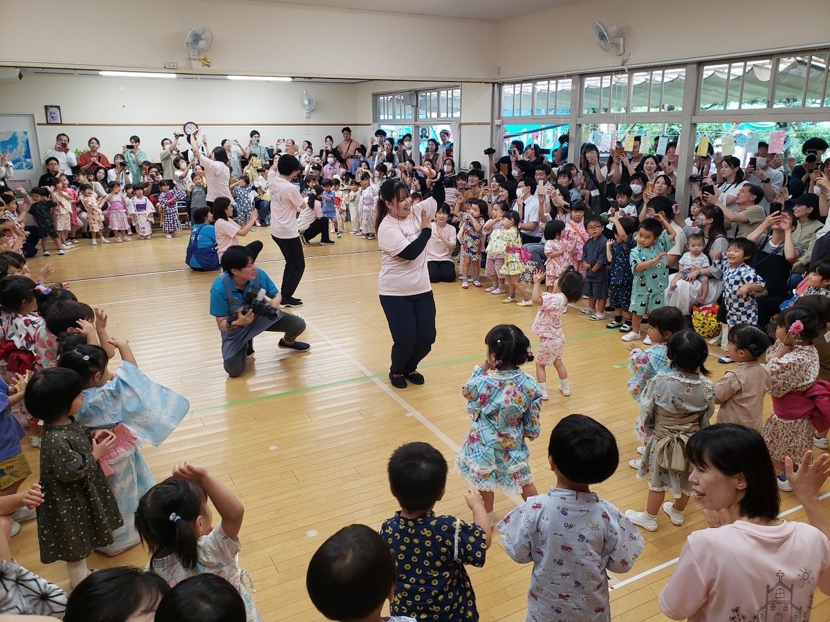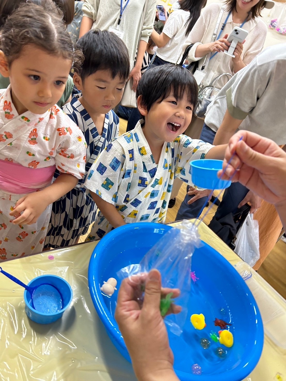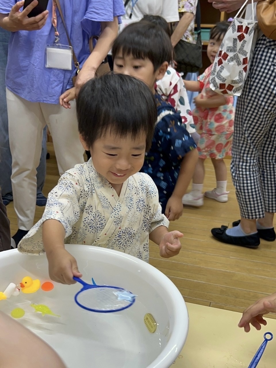 夏まつりを行いました。 2024年07月12日(金) 夏まつりを行いました。子どもたちは、マツケンサンバや盆踊り、親子ダンス、ソーラン節など今まで練習してきた演技を、おうちの人に笑顔いっぱいで披露することができました! 演技の後は、お楽しみの「ぷかぷかすくい」♪自分ですくった景品とポン菓子のお土産をもらって、楽しい時間を過ごしました! 保護者の皆様、暑い中ご参観いただき、ありがとうございました。