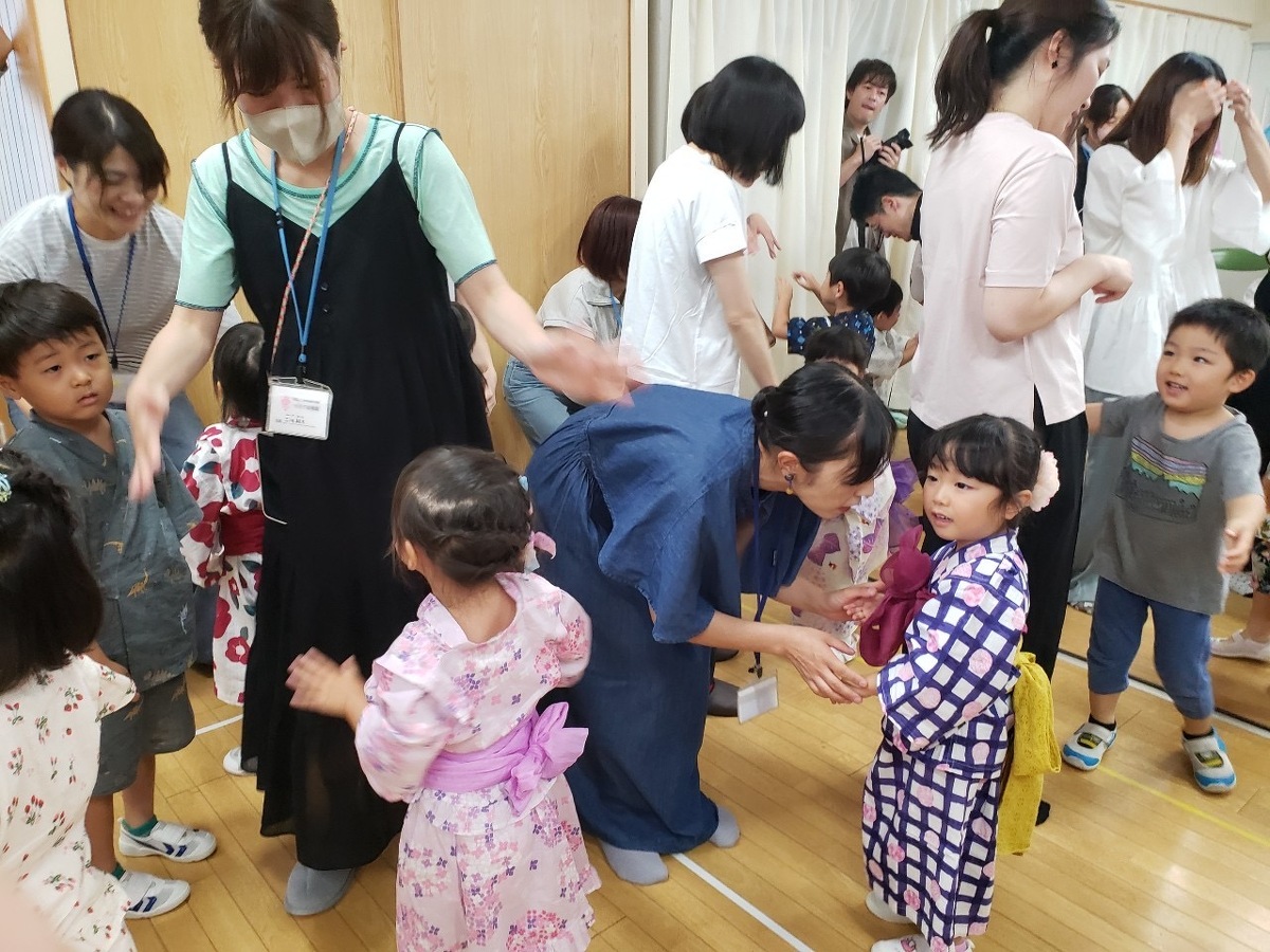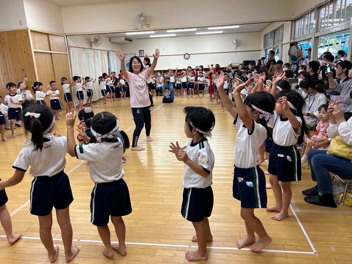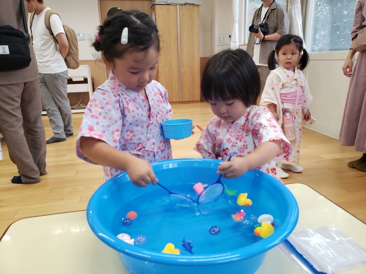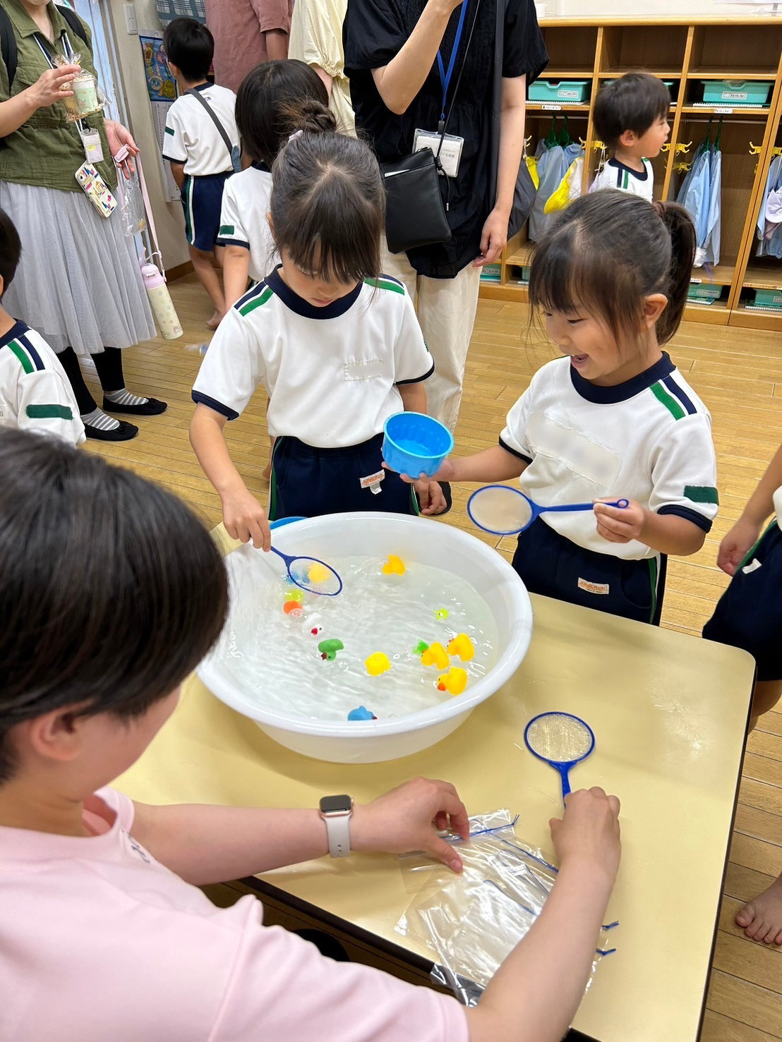 夏まつりを行いました。 2024年07月12日(金) 夏まつりを行いました。子どもたちは、マツケンサンバや盆踊り、親子ダンス、ソーラン節など今まで練習してきた演技を、おうちの人に笑顔いっぱいで披露することができました! 演技の後は、お楽しみの「ぷかぷかすくい」♪自分ですくった景品とポン菓子のお土産をもらって、楽しい時間を過ごしました! 保護者の皆様、暑い中ご参観いただき、ありがとうございました。