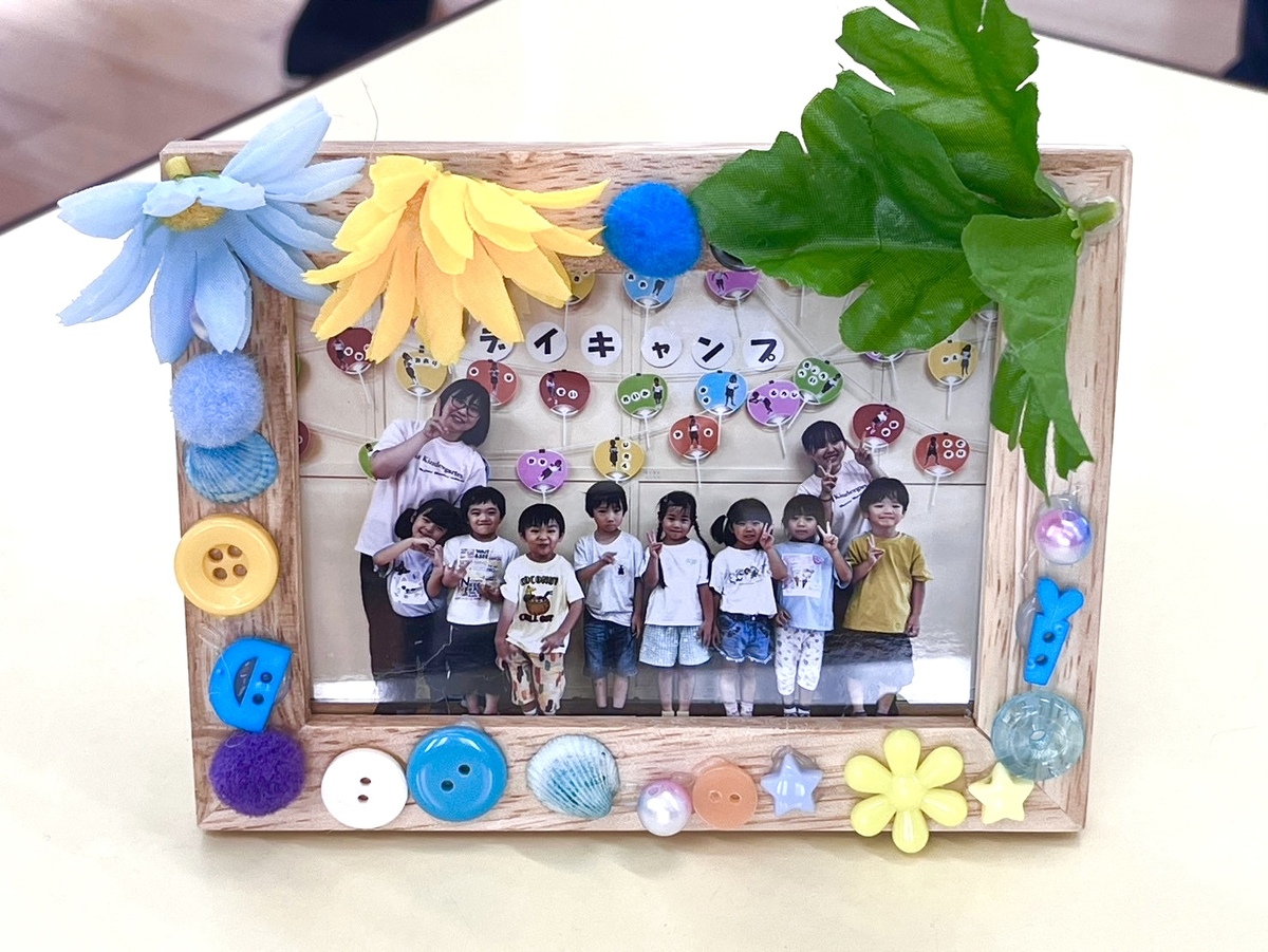その後は、水遊びとフォトフレーム作りをしました。フォトフレームは、自分で飾り付けをし、それぞれ個性溢れる素敵な作品ができました!