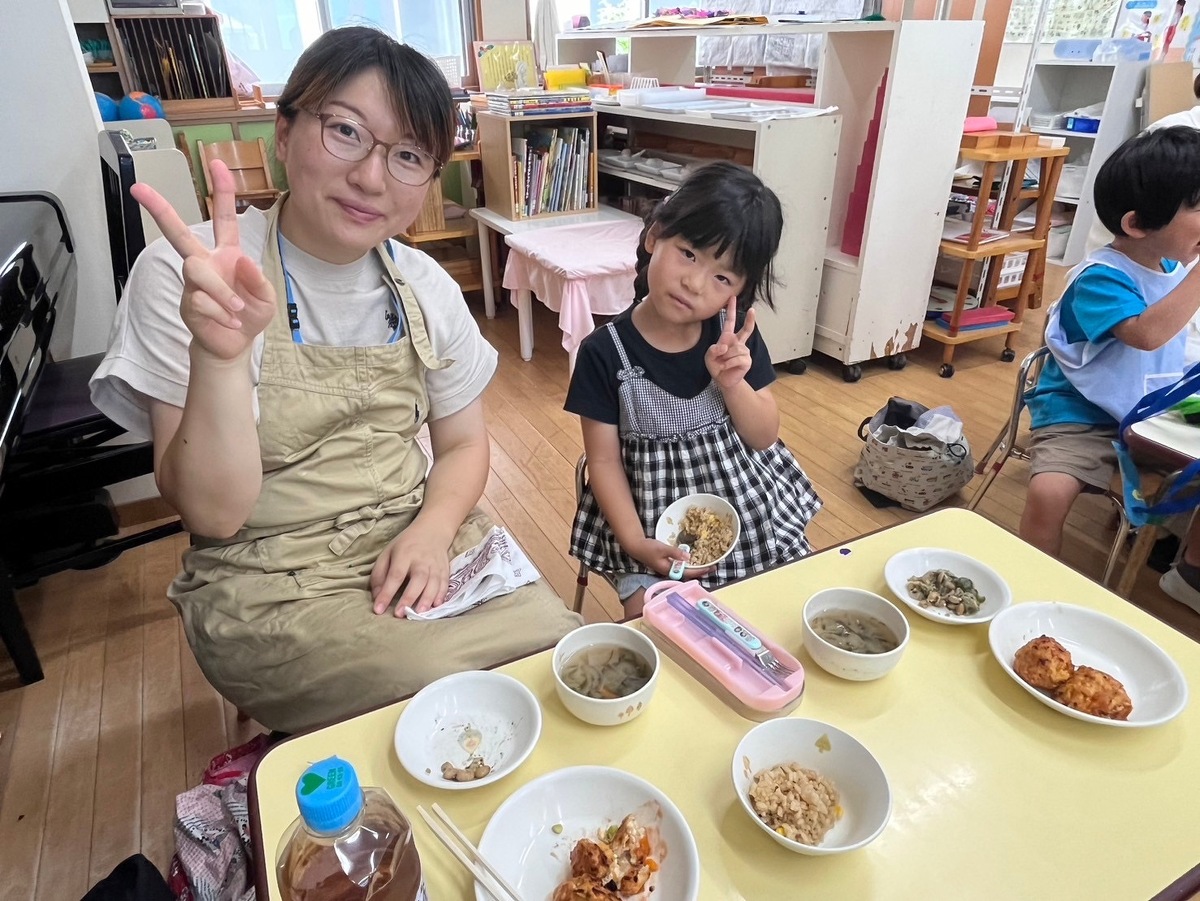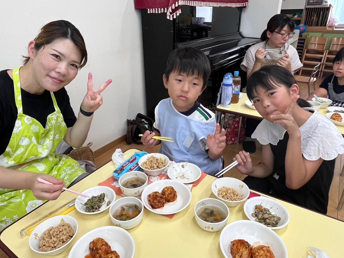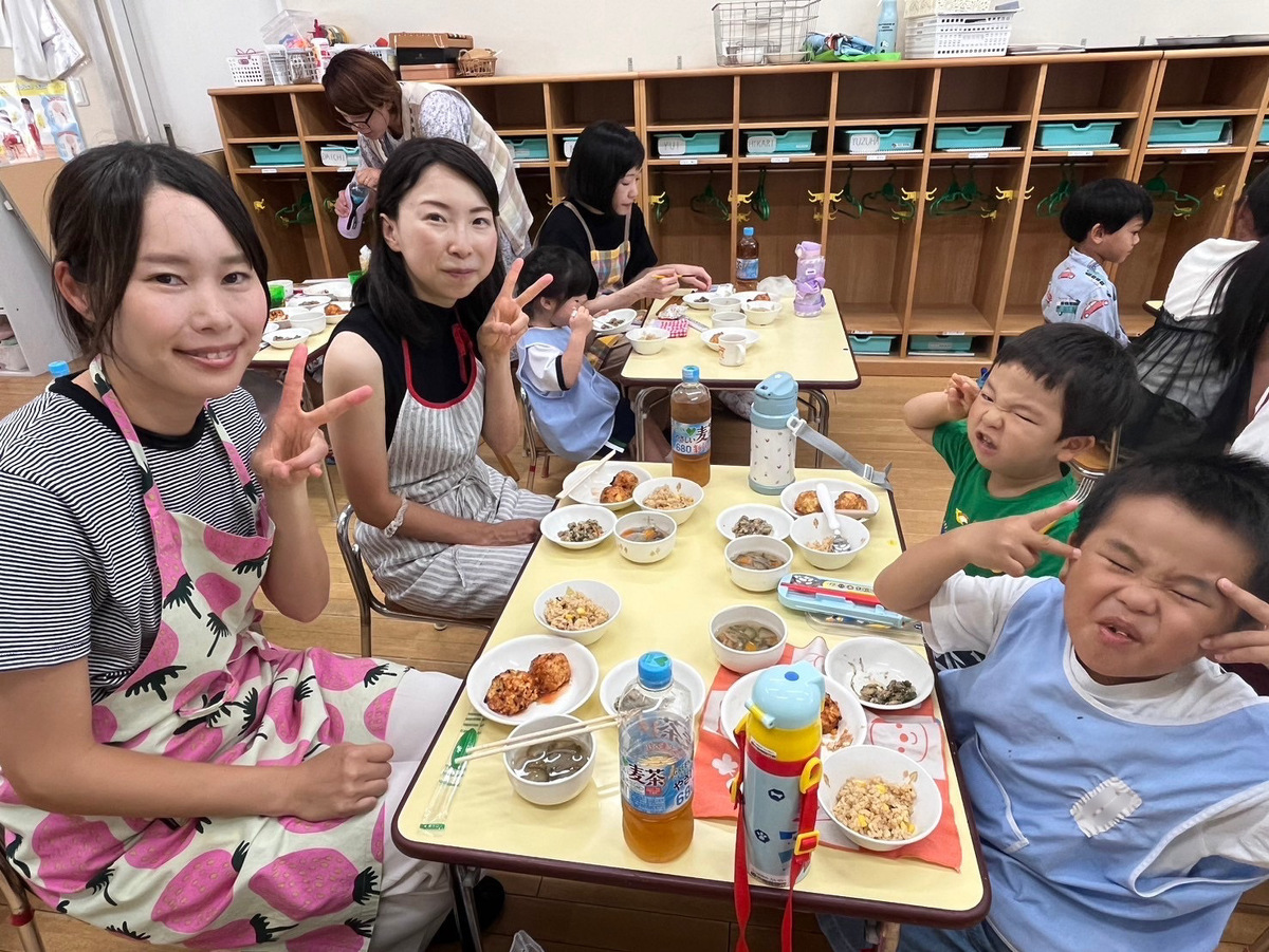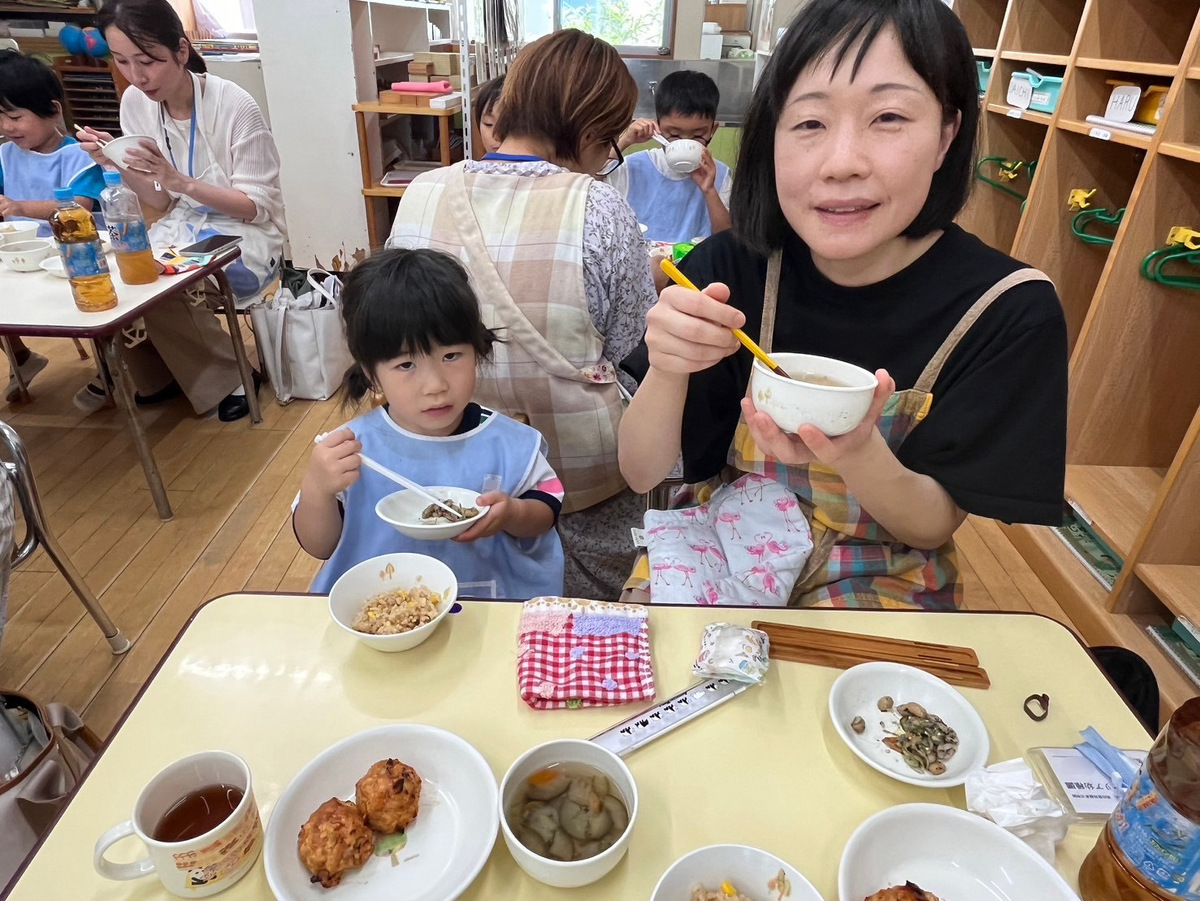 最後はみなさんで給食をいただきました。子どもたちも、おうちの人が作ってくれた給食を嬉しそうに食べていました♪