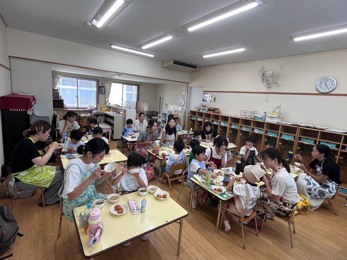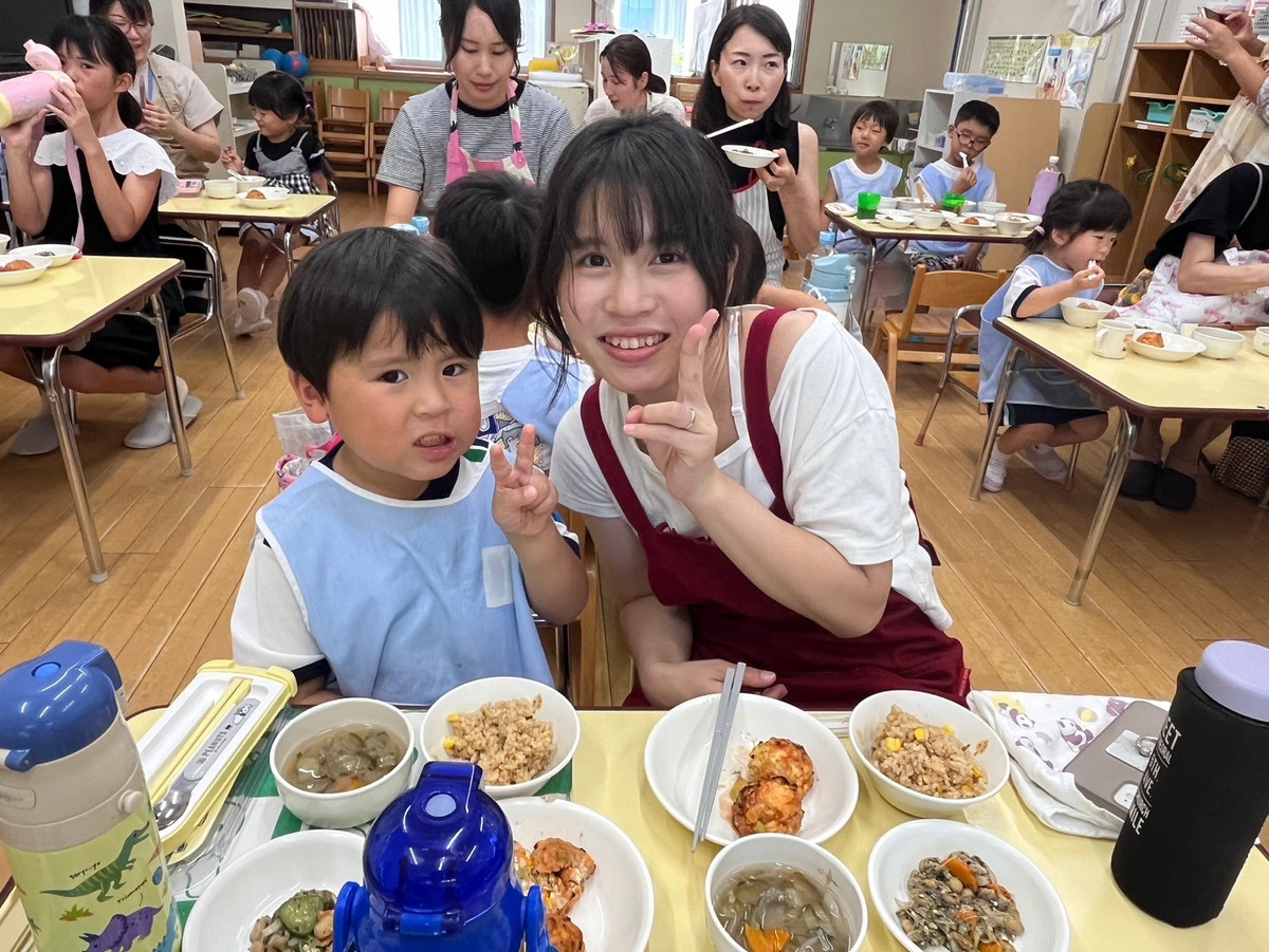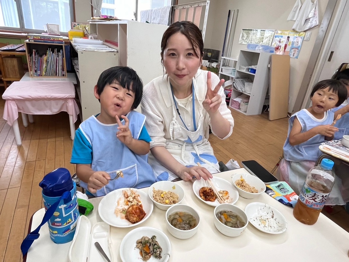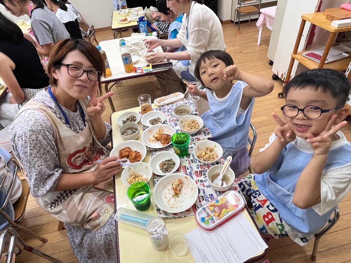 最後はみなさんで給食をいただきました。子どもたちも、おうちの人が作ってくれた給食を嬉しそうに食べていました♪