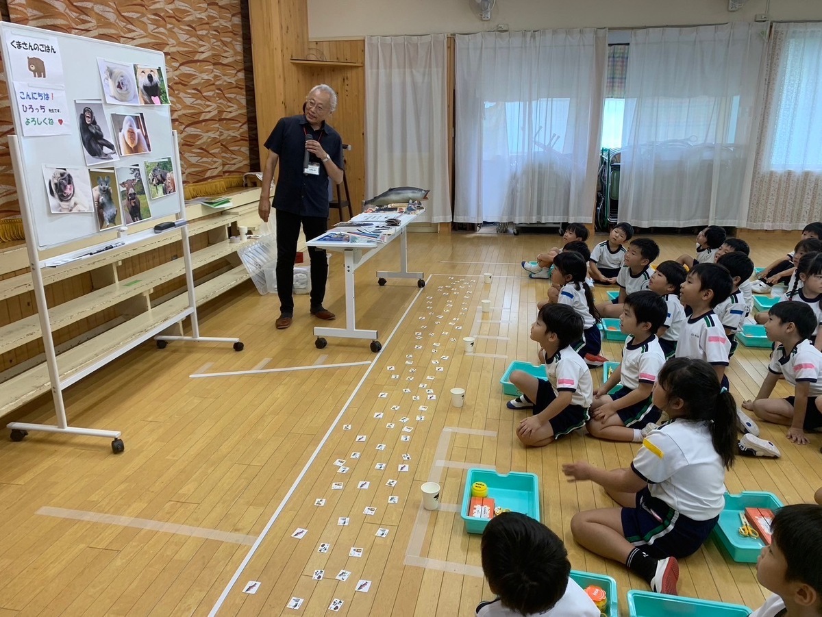 クマは、四季によって食べ物の種類が変わることや、冬眠の時は、父親は子どもを食べてしまうため、母親と子どもだけで巣に入ることなど、子どもたちも先生も初めて知ることがたくさんでした!