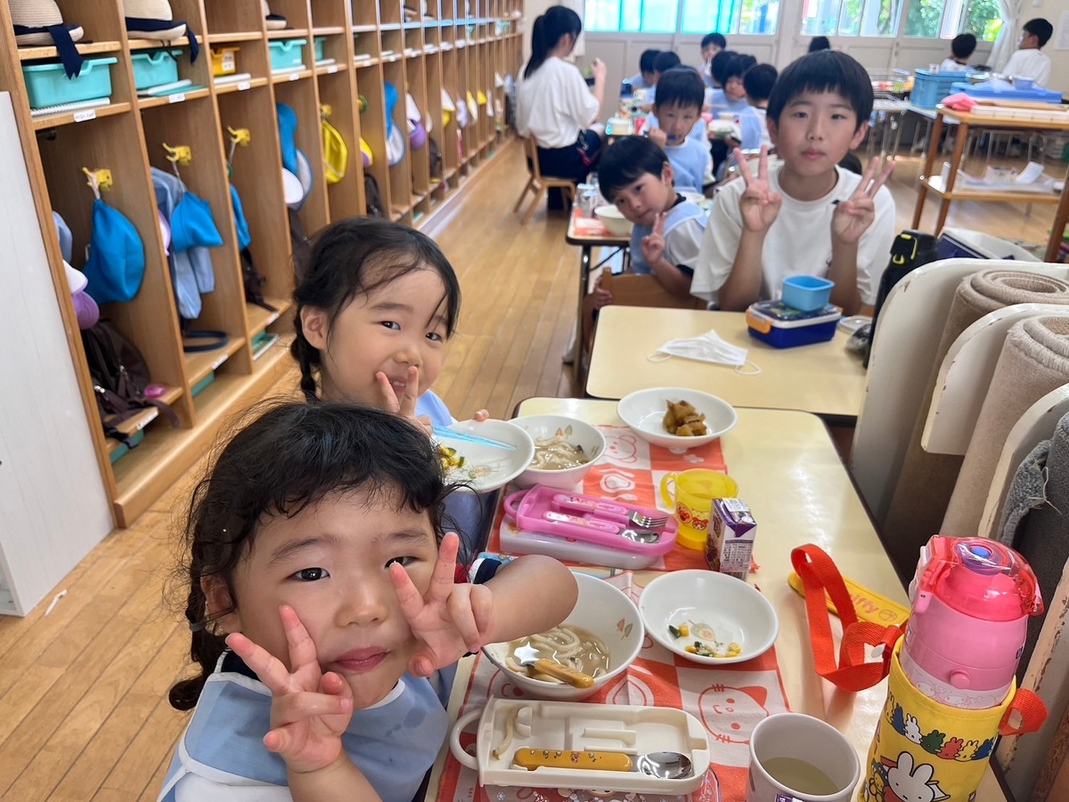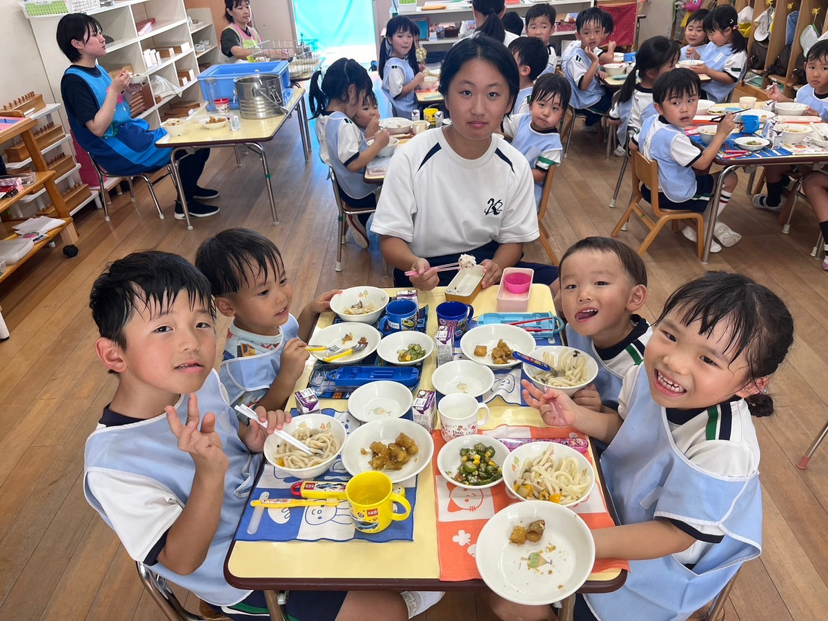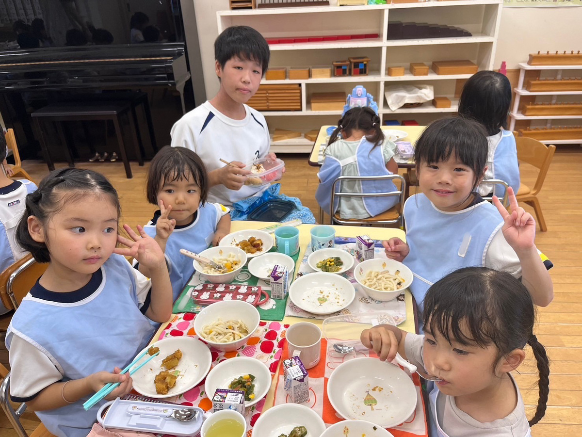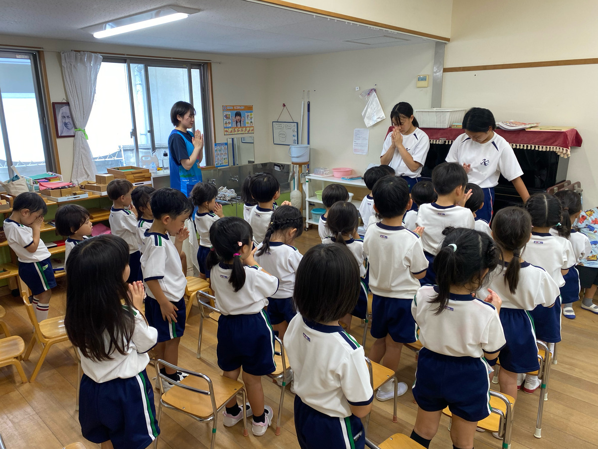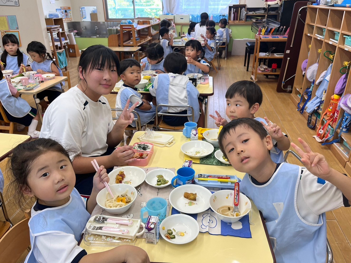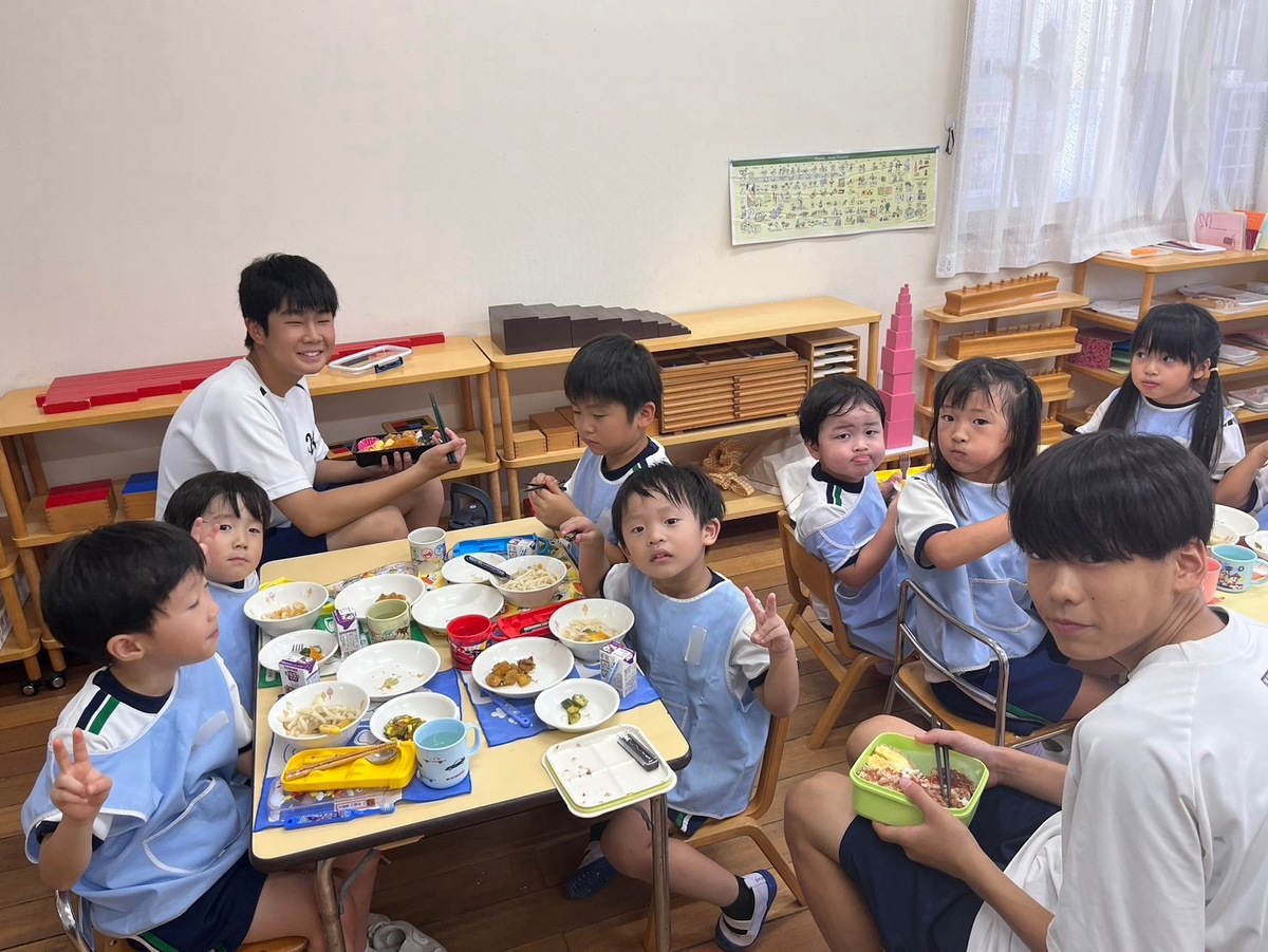 協和中学校から、15名のお兄さんお姉さんが職場体験に来てくれました。幼稚園のお友だちと一緒に、園庭で鬼ごっこをしたり、給食を食べたり、体操をしたりいろいろな活動をしました!また、敬老の日のハガキの投函も一緒に行き、子どもたちの安全を守ってくれました!