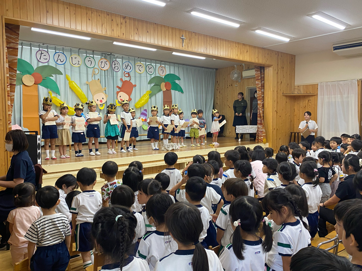 8月9月生まれの誕生日会がありました。みんなドキドキしながらも、頑張って発表することができました。
