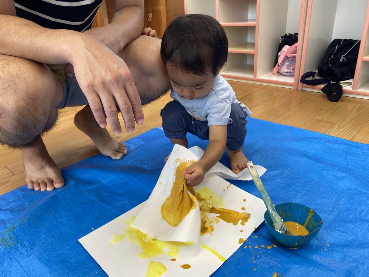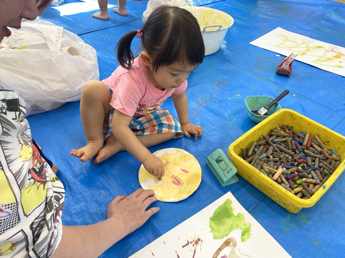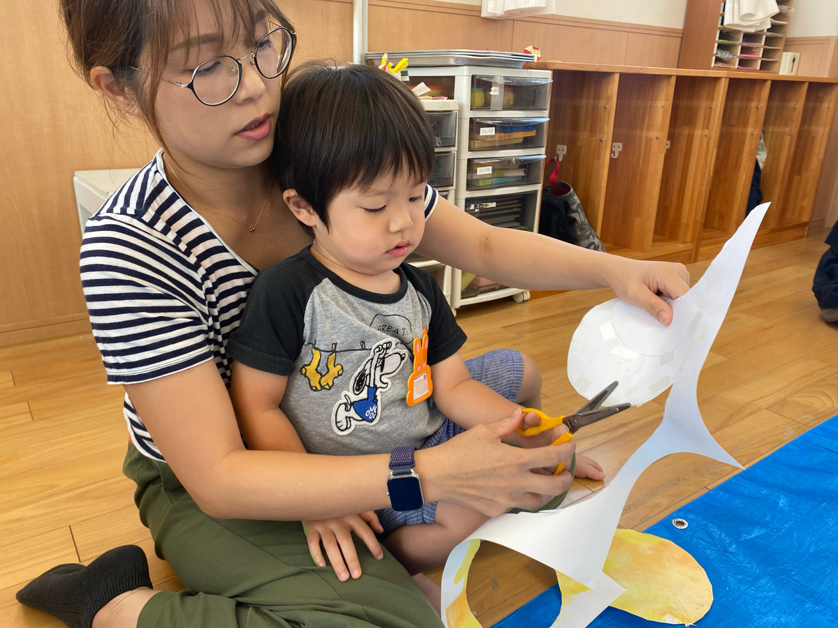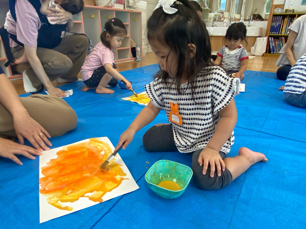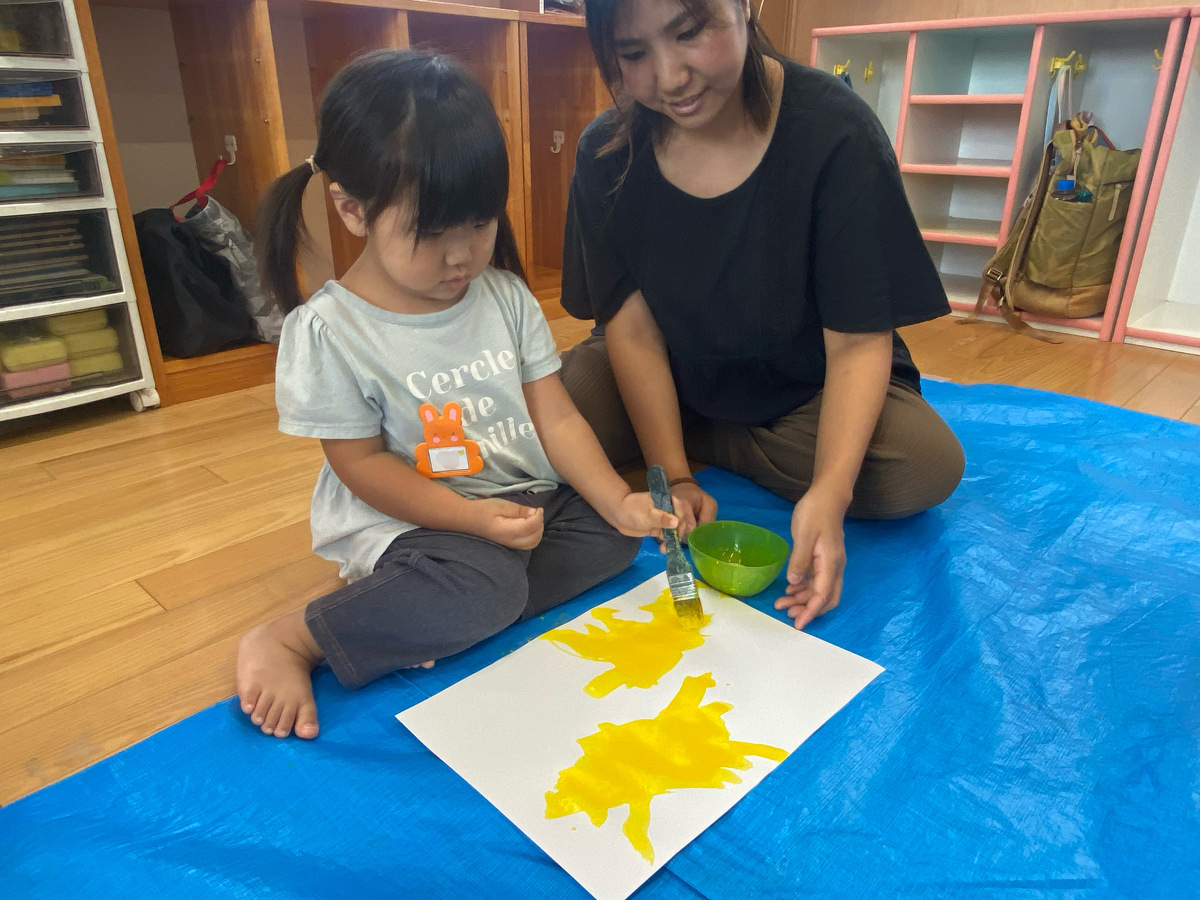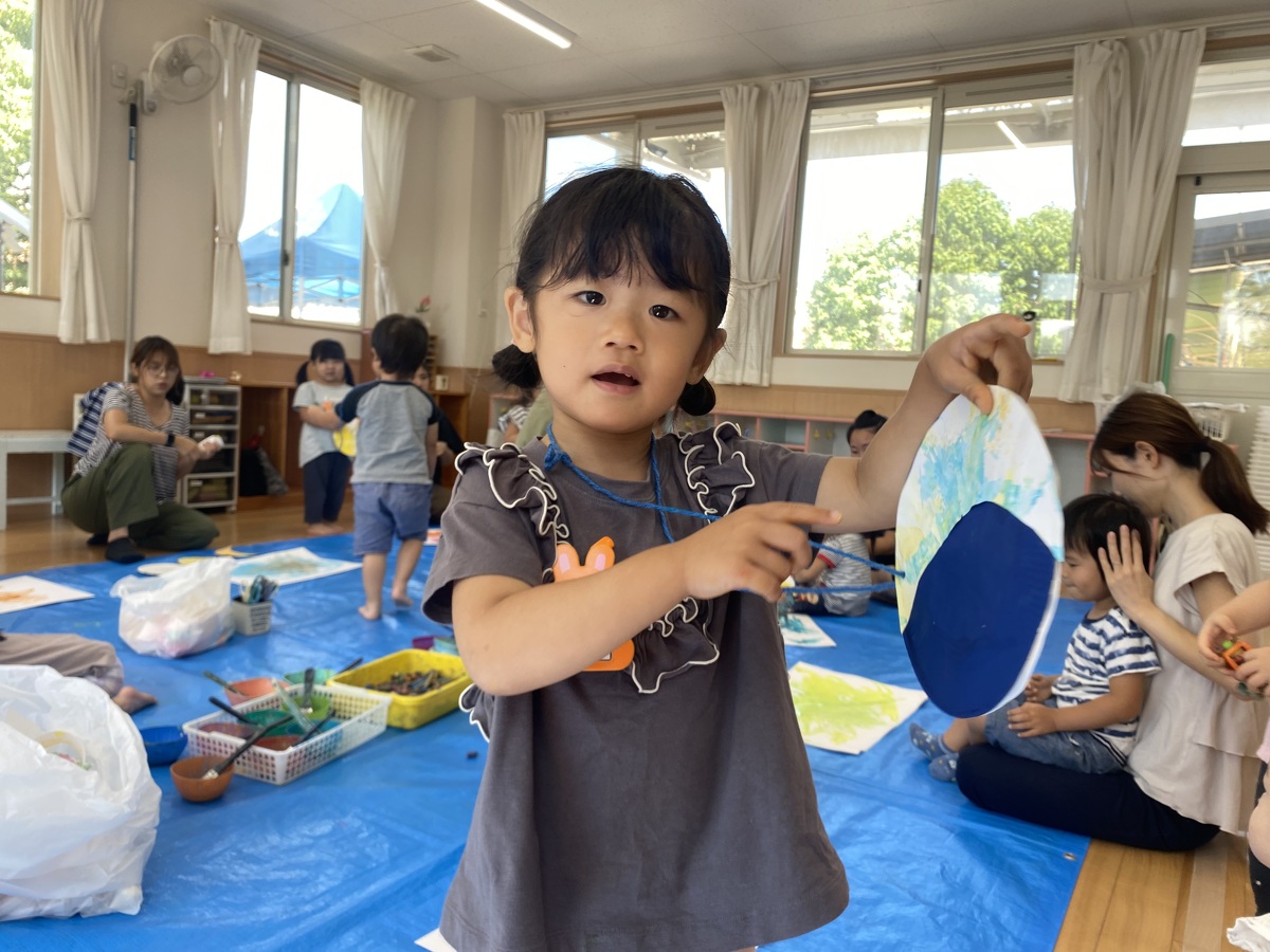 つぼみ・プチつぼみクラスのおえかきあそびがありました。 2024年10月07日(月) つぼみ・プチつぼみクラスのおえかきあそびがありました。まずはじめは、宮地先生の読み聞かせや手袋シアター。「パパ、お月さまとって!」の大きな絵本に、子どもたちは大喜び! 次は、後藤先生と一緒にお月さま作り。画用紙に、黄色やオレンジの絵の具を塗りました。乾かした後は、おうちの人にお月さまの形に切ってもらいます。 紙皿にお月さまを貼って、お顔を描いて、裏と表で満月と三日月のかわいいお月さまの完成!!おうちでもお月見ができますね♪ 宮地先生、後藤先生、素敵な時間をありがとうございました!