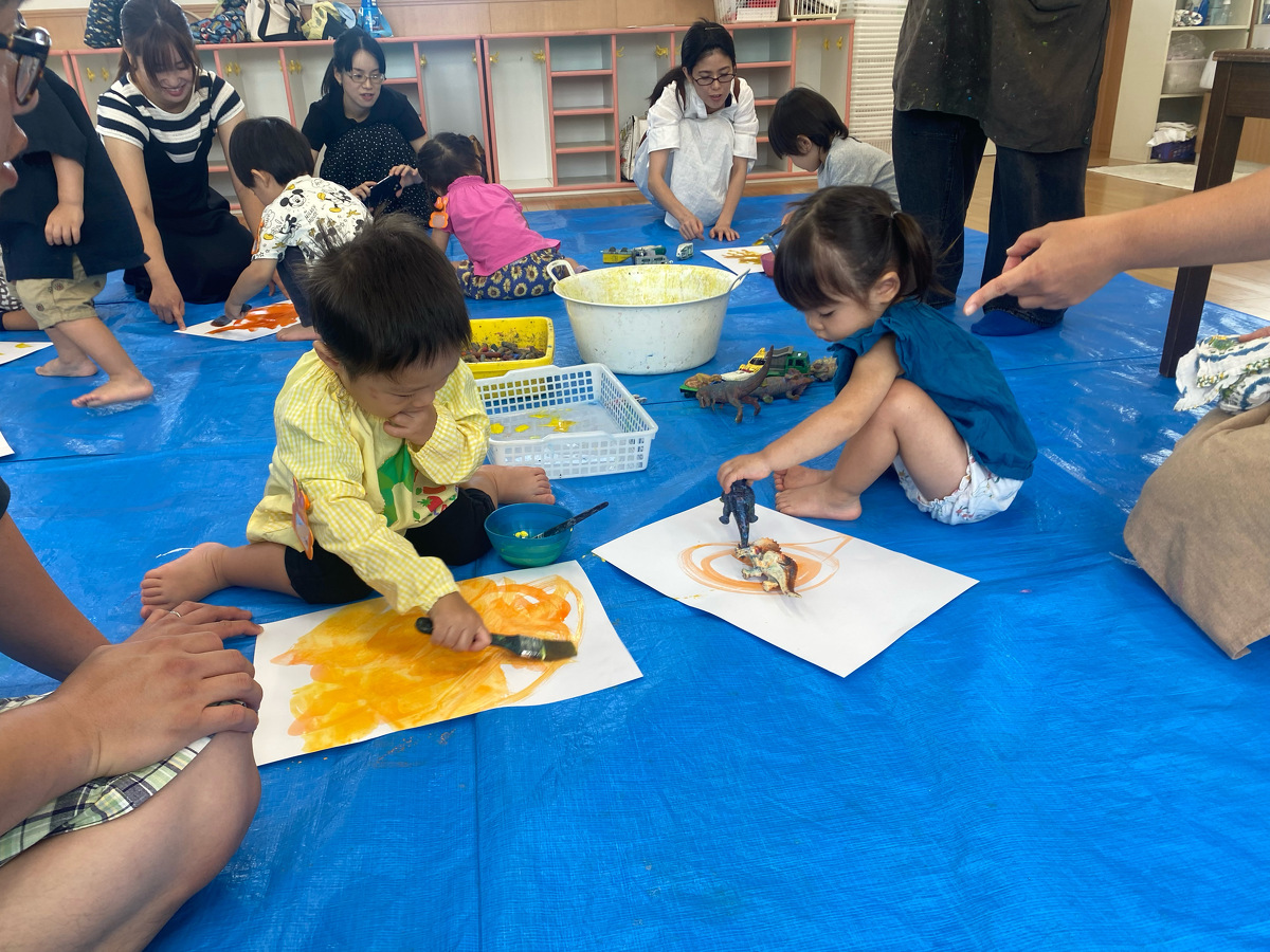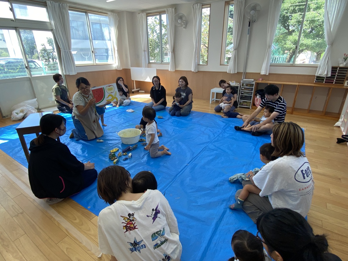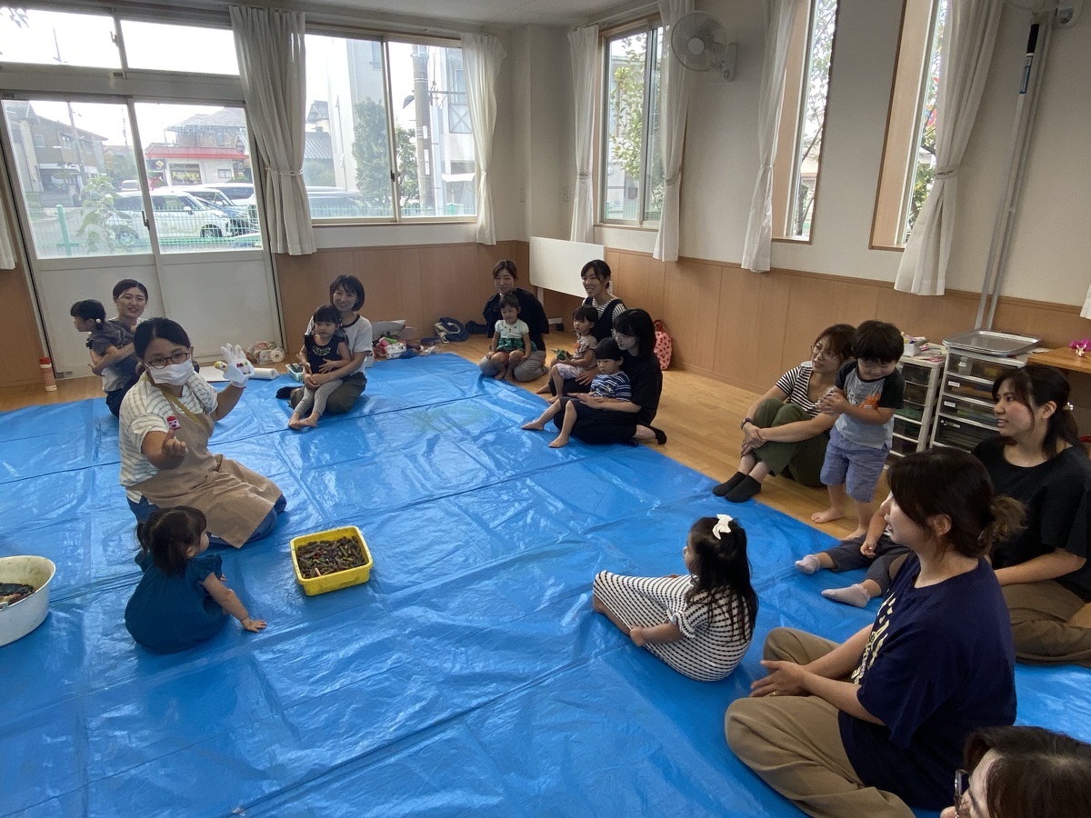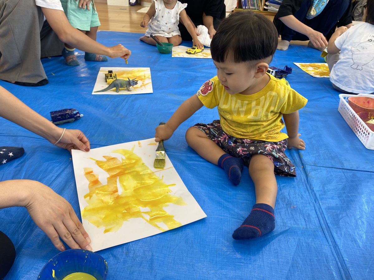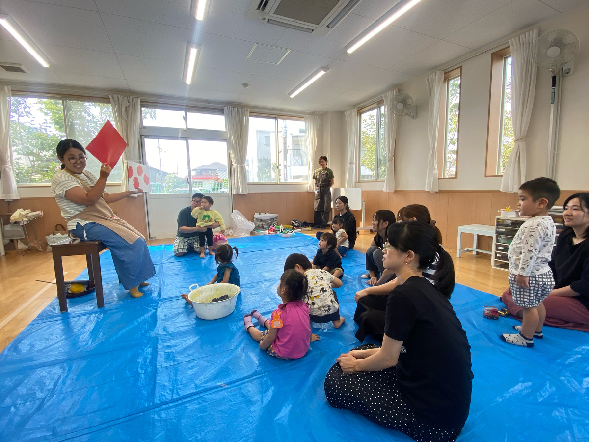 つぼみ・プチつぼみクラスのおえかきあそびがありました。 2024年10月07日(月) つぼみ・プチつぼみクラスのおえかきあそびがありました。まずはじめは、宮地先生の読み聞かせや手袋シアター。「パパ、お月さまとって!」の大きな絵本に、子どもたちは大喜び! 次は、後藤先生と一緒にお月さま作り。画用紙に、黄色やオレンジの絵の具を塗りました。乾かした後は、おうちの人にお月さまの形に切ってもらいます。 紙皿にお月さまを貼って、お顔を描いて、裏と表で満月と三日月のかわいいお月さまの完成!!おうちでもお月見ができますね♪ 宮地先生、後藤先生、素敵な時間をありがとうございました!
