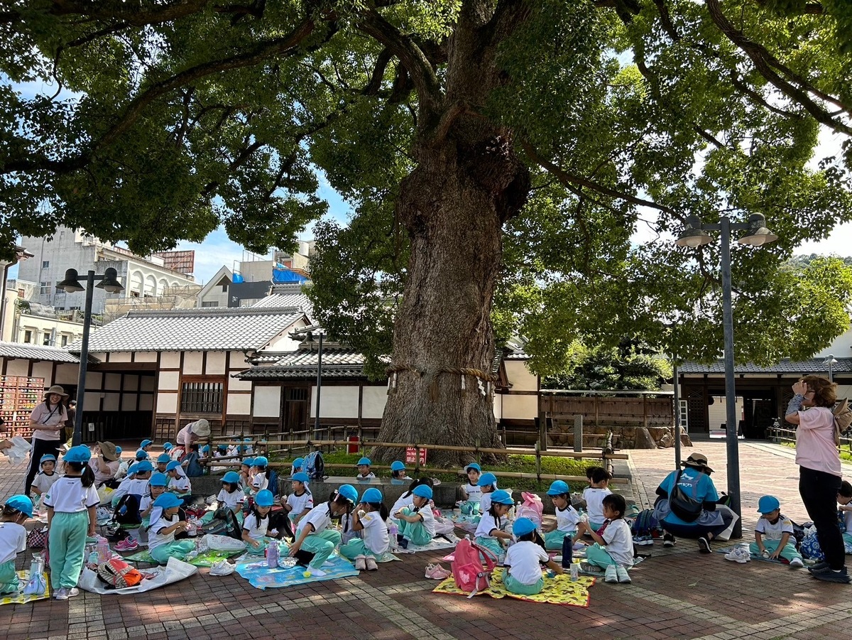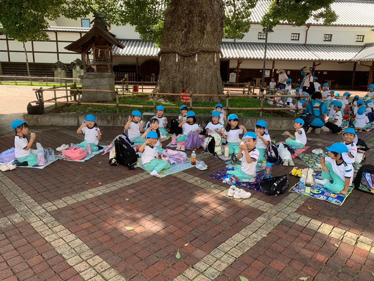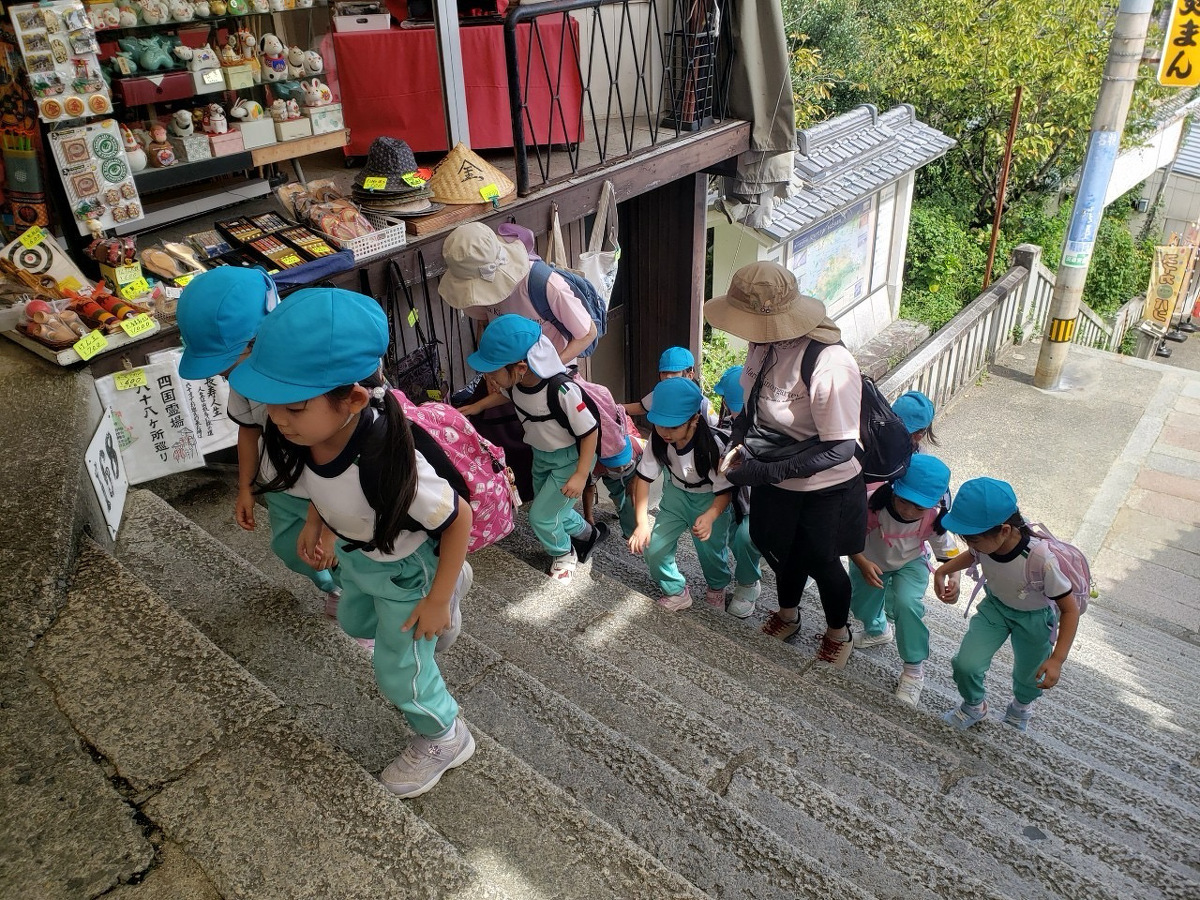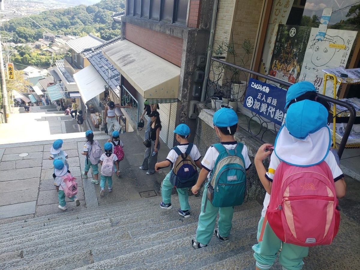 Aグループ(5歳児)が、電車に乗って出掛けました。しばらく電車に揺られて着いたのは、琴平駅。こんぴらさんまで歩きます。