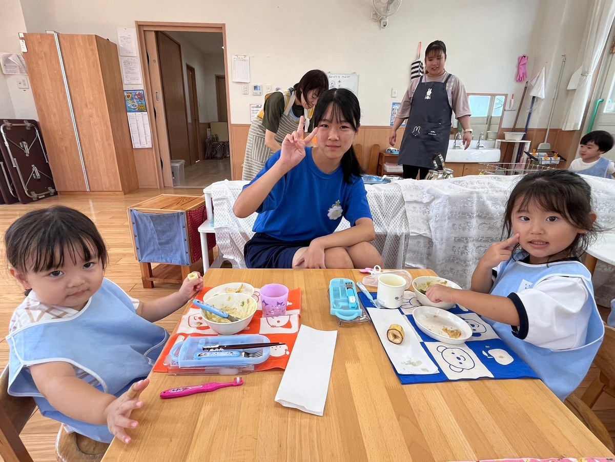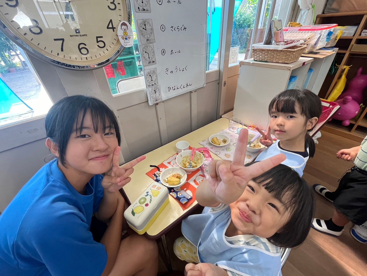 遊んでくれたり、絵本を読んでくれたり、お帰りの会でピアノを弾いてくれたり・・・幼稚園のお友だちは、全力で遊んで、寄り添ってくれるお兄さんお姉さんのことがすぐに大好きになりました!
