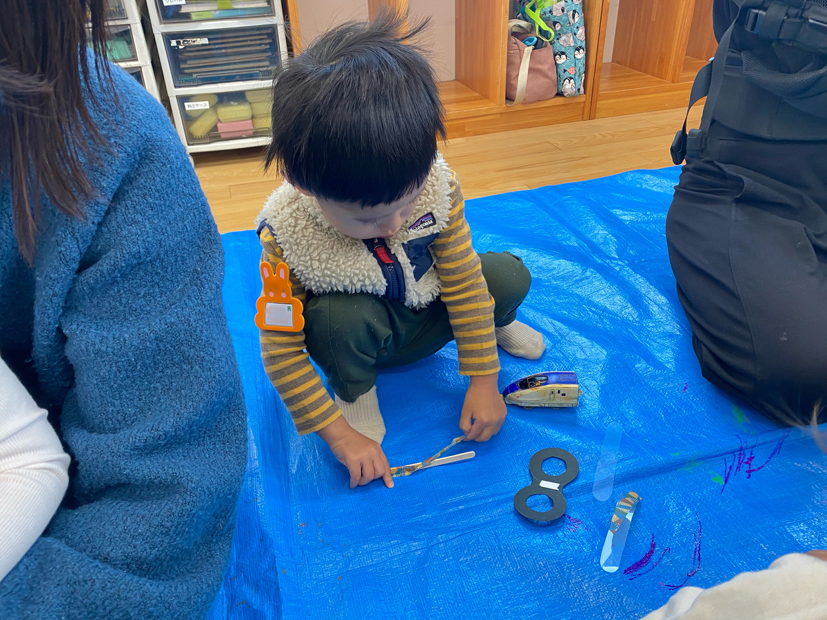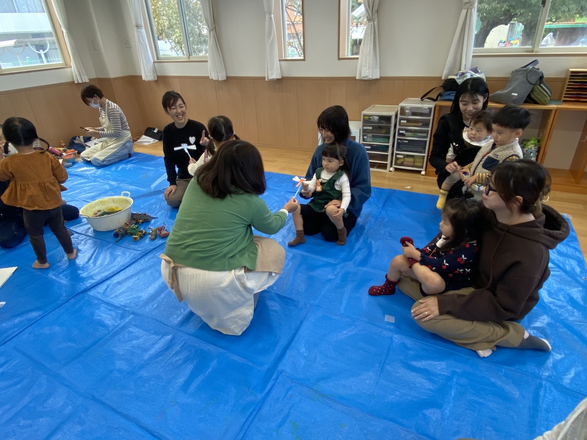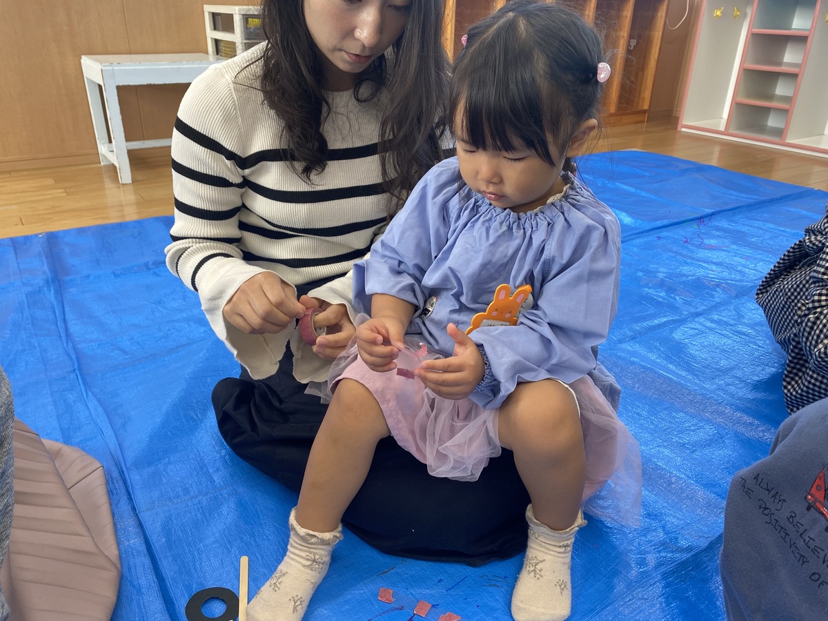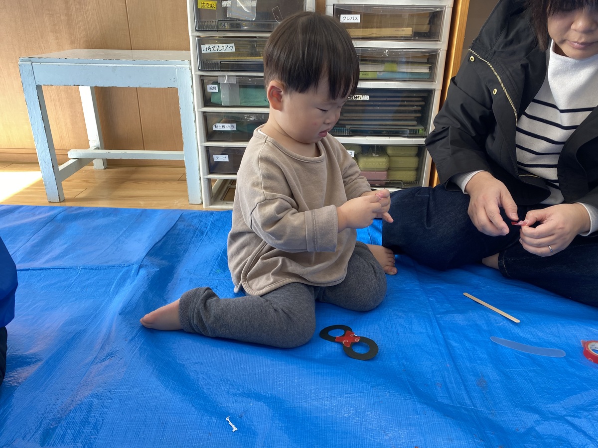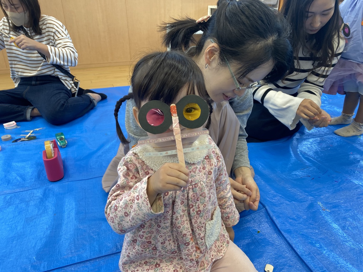 つぼみ・プチつぼみクラスのおえかきあそびがありました。 2024年12月10日(火) つぼみ・プチつぼみクラスのおえかきあそびがありました。はじめは、宮地先生のパネルシアターや読み聞かせ。秋の七草やどんぐりの童歌も教えていただきました♪ とんぼの絵本を読んで、みんなの指にとんぼさんが飛んできたところで、後藤先生と一緒にとんぼの製作です!秋の色のマスキングテープをちぎって貼って、可愛いとんぼさんのできあがり♪とんぼのメガネで見ると周りがどんな色に見えたかな? 宮地先生、後藤先生、今回も楽しい時間をありがとうございました!!