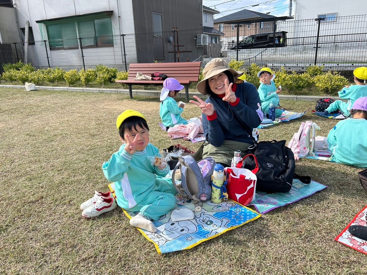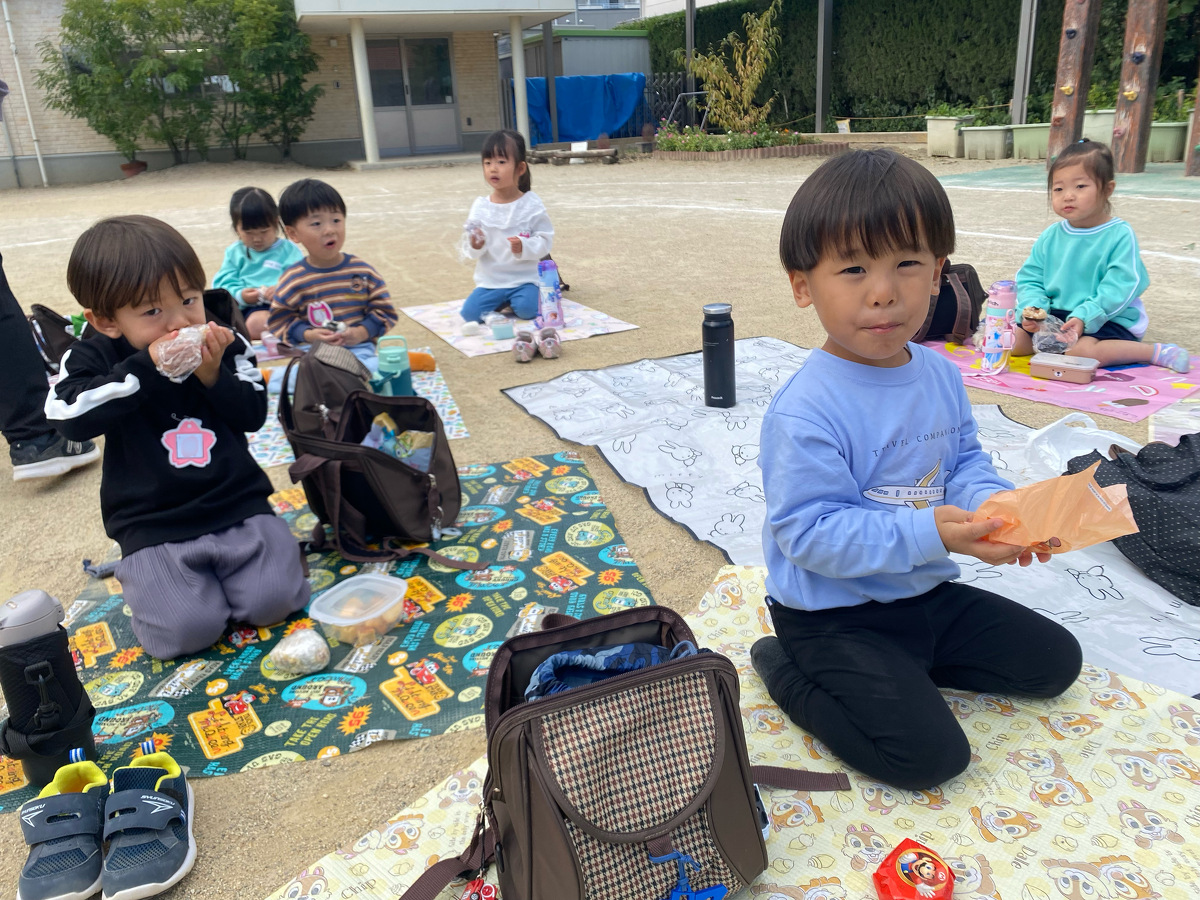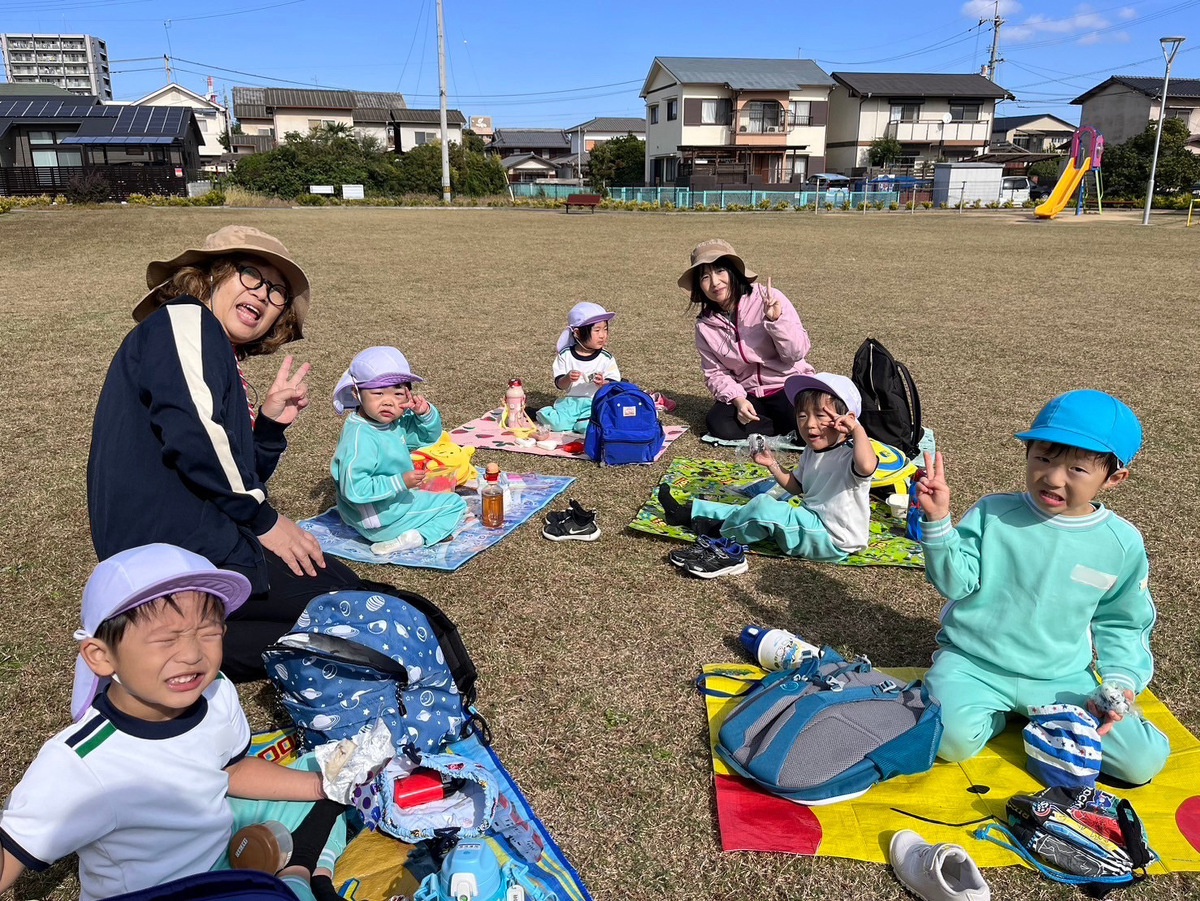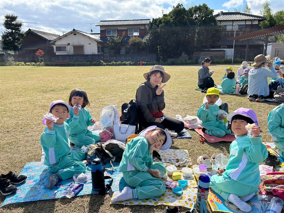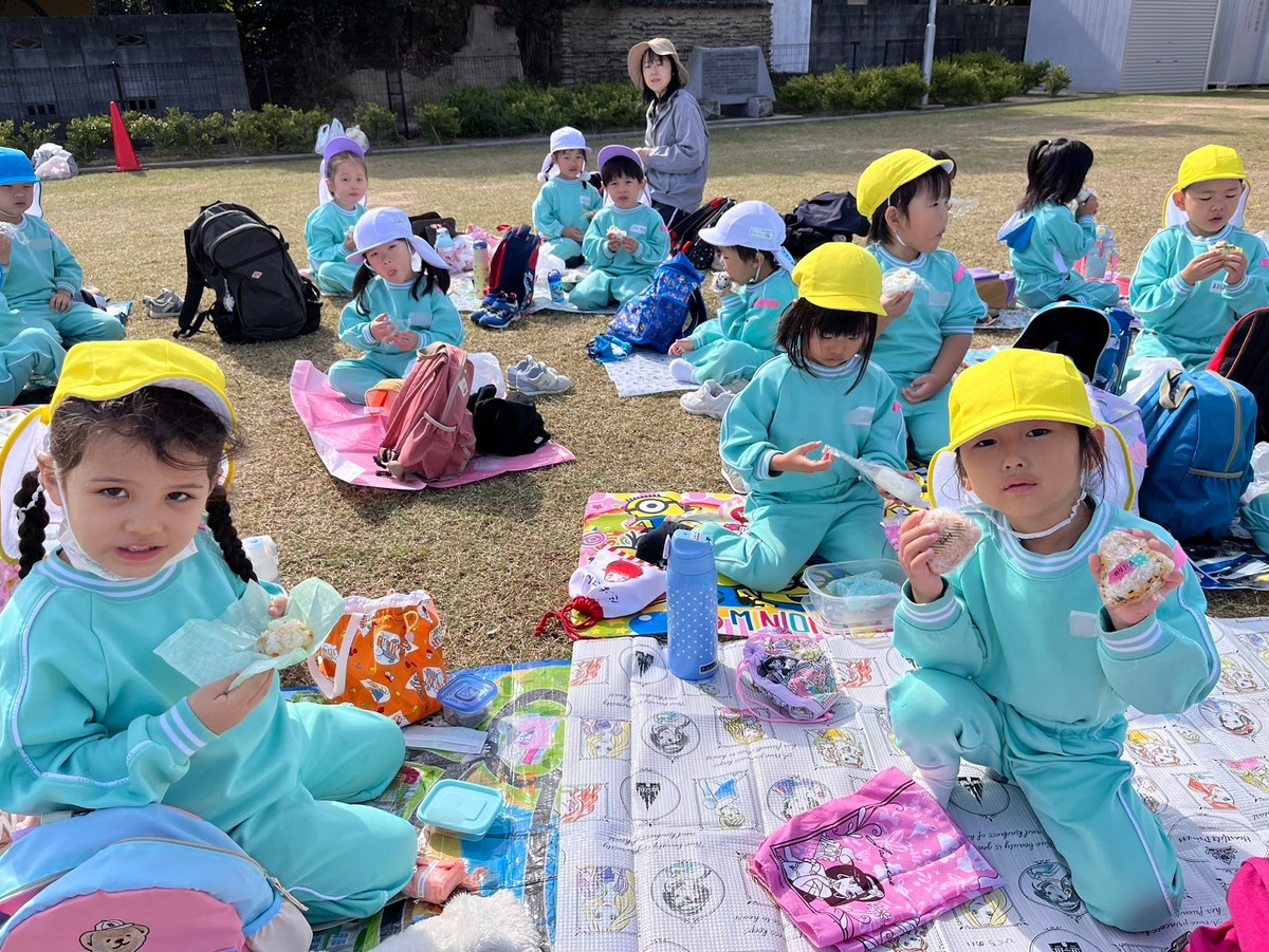 園外保育・遠足ごっこを行いました。 2024年12月10日(火) ABCグループ(3・4・5歳児)さんは太田南皿井公園までお出かけ、Dグループ(満3歳児)さんは、幼稚園の園庭で遠足ごっこをしました! 太田南皿井公園では、体操やかけっこをしたり縄跳びや遊具で遊んだり、たっぷり楽しみました♪ どのグループもみんな自分のレジャーシートを広げて、お友だちや先生と一緒に、おにぎりとおやつを食べました!みんなのお顔を見ながら食べられて嬉しかったですね♪ 秋の自然を感じたり、普段と少し違った体験をしたりして、とても楽しい1日になりました!
