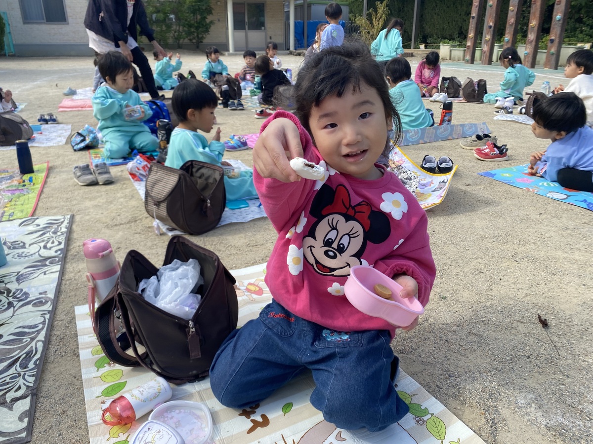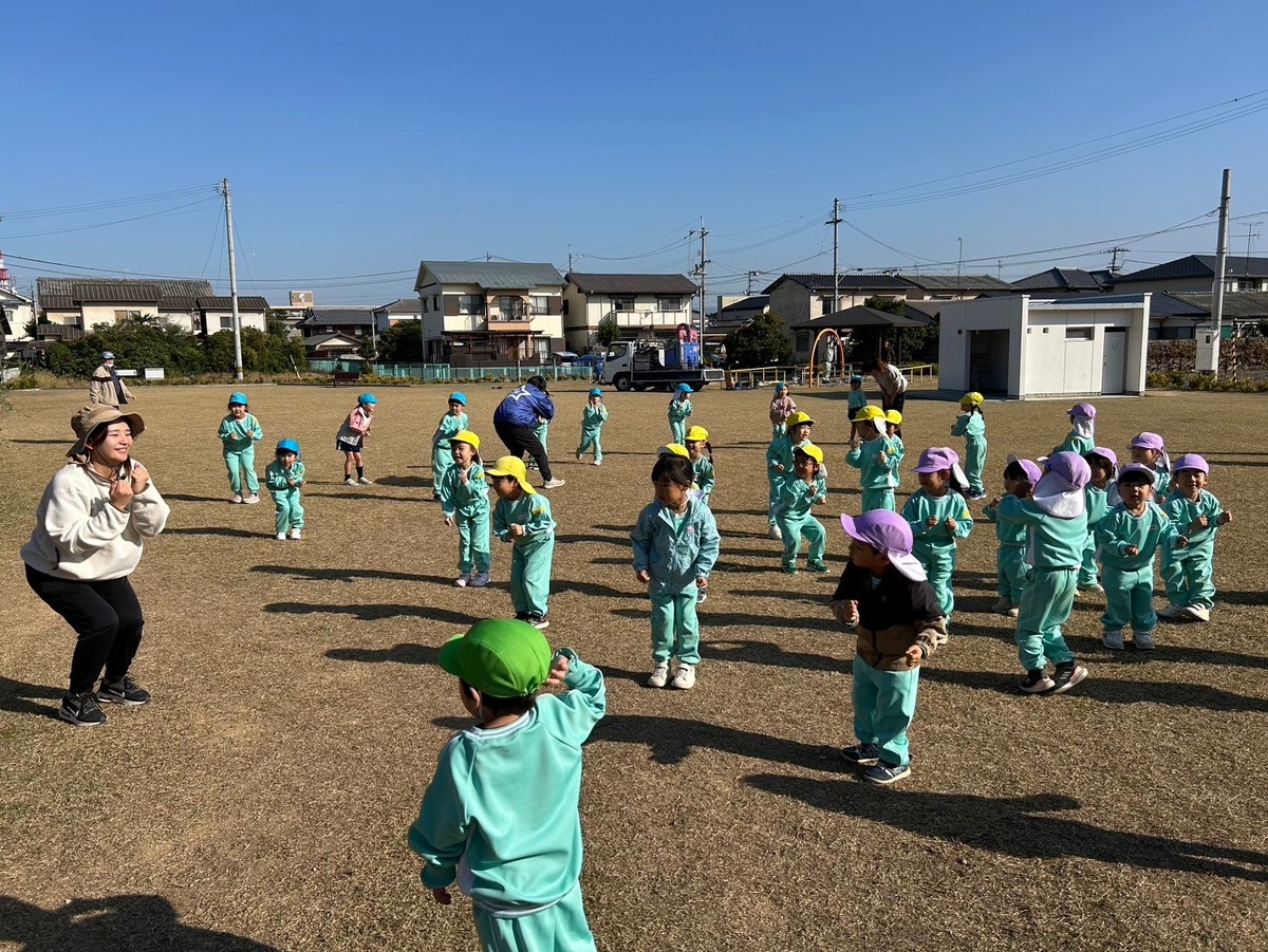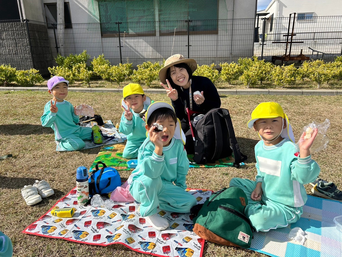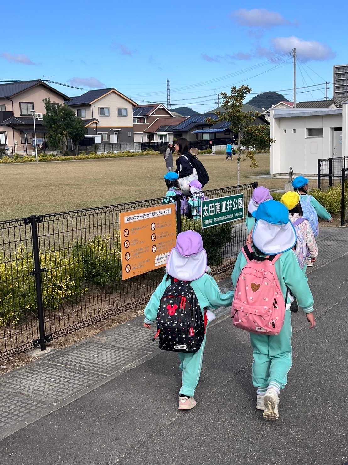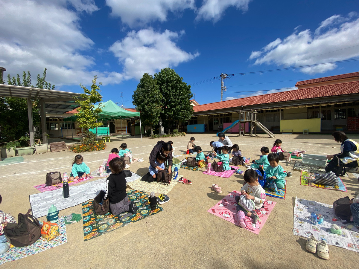 園外保育・遠足ごっこを行いました。 2024年12月10日(火) ABCグループ(3・4・5歳児)さんは太田南皿井公園までお出かけ、Dグループ(満3歳児)さんは、幼稚園の園庭で遠足ごっこをしました! 太田南皿井公園では、体操やかけっこをしたり縄跳びや遊具で遊んだり、たっぷり楽しみました♪ どのグループもみんな自分のレジャーシートを広げて、お友だちや先生と一緒に、おにぎりとおやつを食べました!みんなのお顔を見ながら食べられて嬉しかったですね♪ 秋の自然を感じたり、普段と少し違った体験をしたりして、とても楽しい1日になりました!